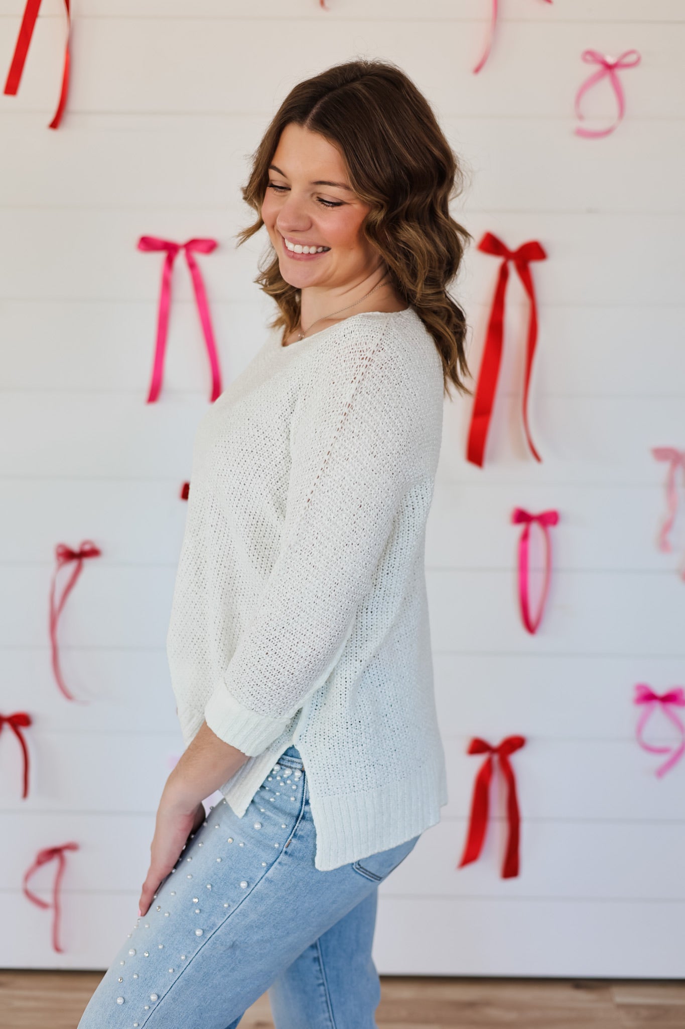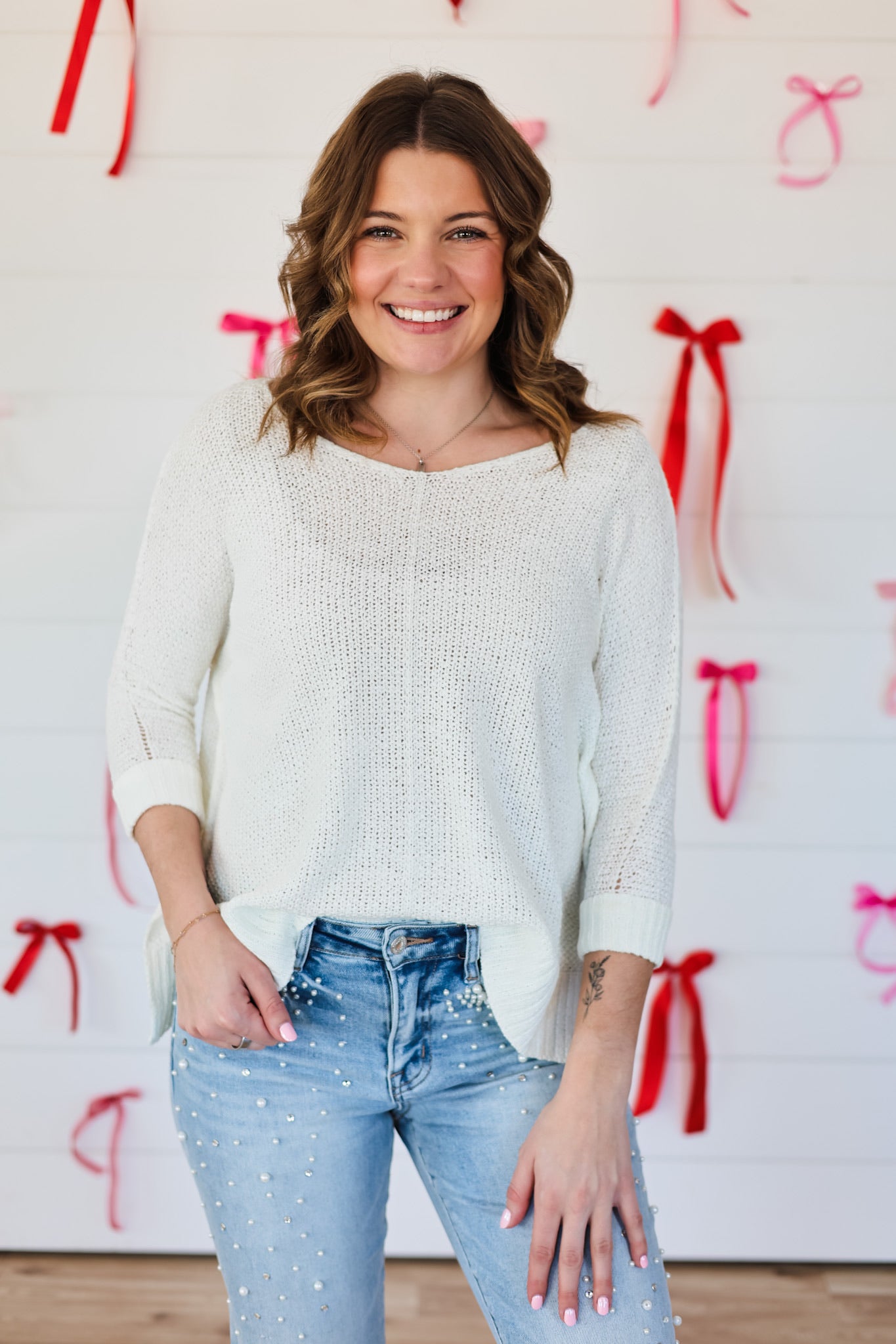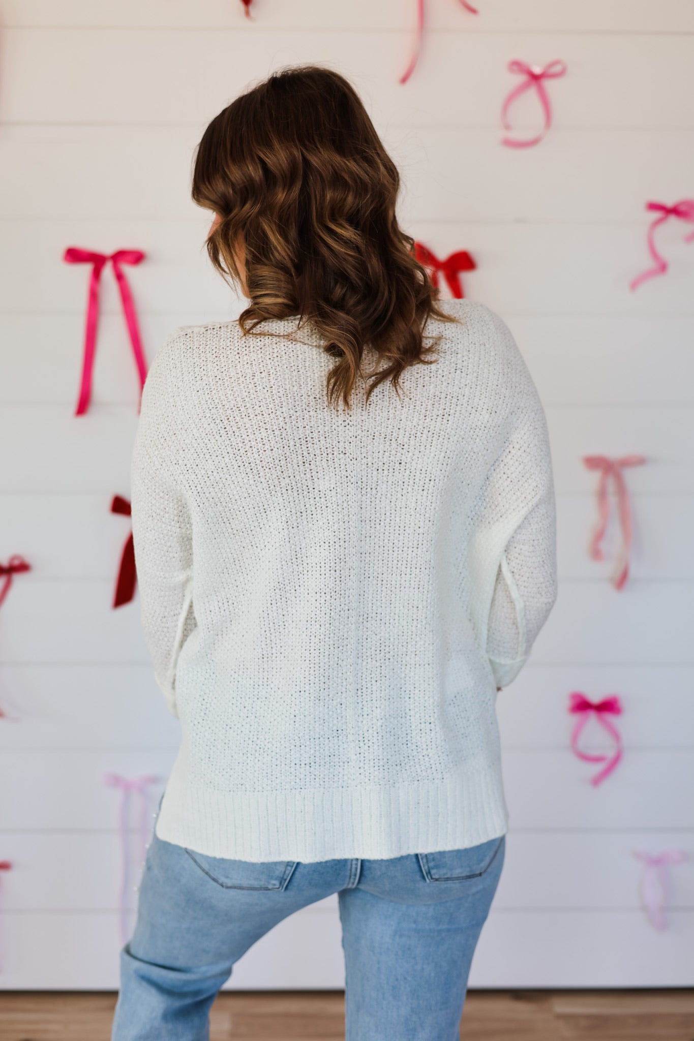 Wrap yourself in cozy charm with this oversized V-neck knit sweater that's equal parts comfort and style. The relaxed fit drapes beautifully while the three-quarter sleeves hit just right for effortless layering. Perfect for those days when you want to feel hugged by your wardrobe—because looking lovely should feel lovely too.