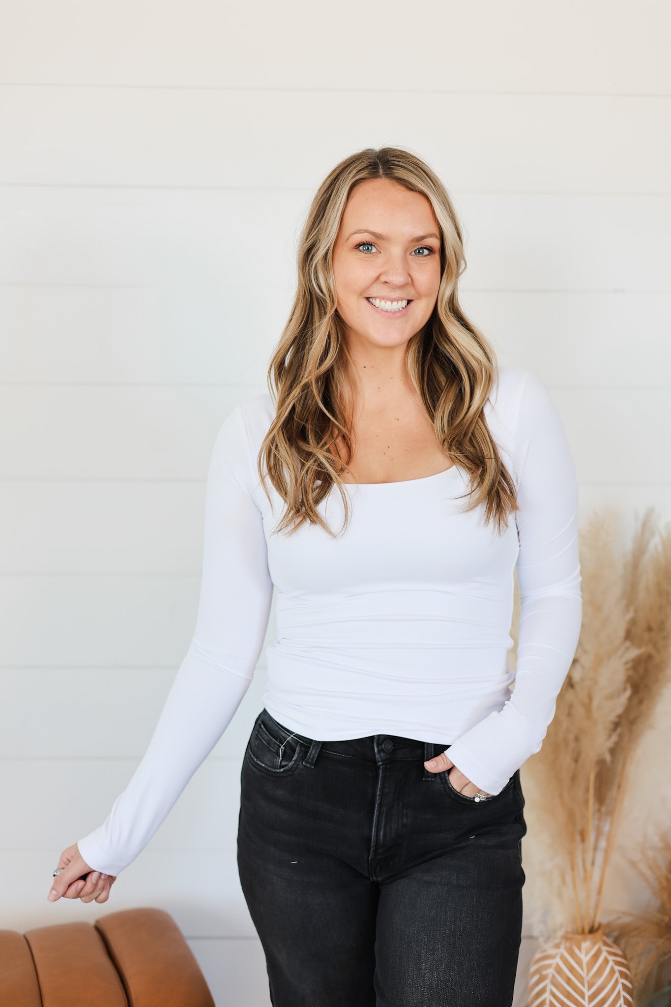 Effortless style meets sustainable fashion with the Just A Little Effort Top. This double-layered beauty features a chic square neckline and long sleeves that hug your curves just right. Crafted from recycled materials, it's the perfect layering piece that works as hard as you do—whether you're building an outfit or making an eco-conscious choice. Dress it up or down; this versatile top does the heavy lifting so you don't have to.