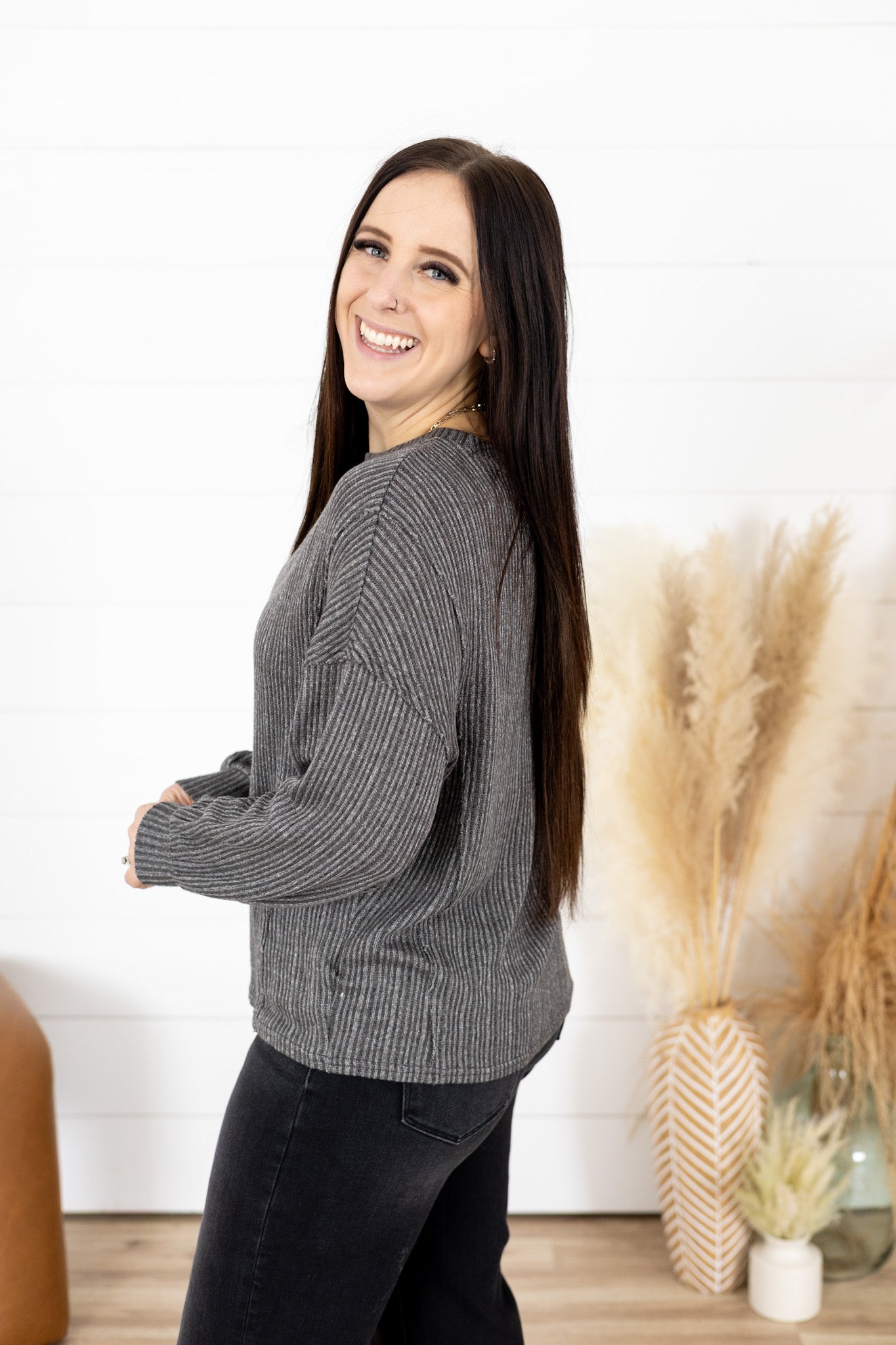 This marled long sleeve ribbed knit top is your new go-to for effortless style and comfort. Featuring a playful stretch that moves with you and a cozy round neck, it’s perfect for layering or wearing on its own. Soft, snug, and endlessly cute—keep your look fresh and fun with this versatile piece!