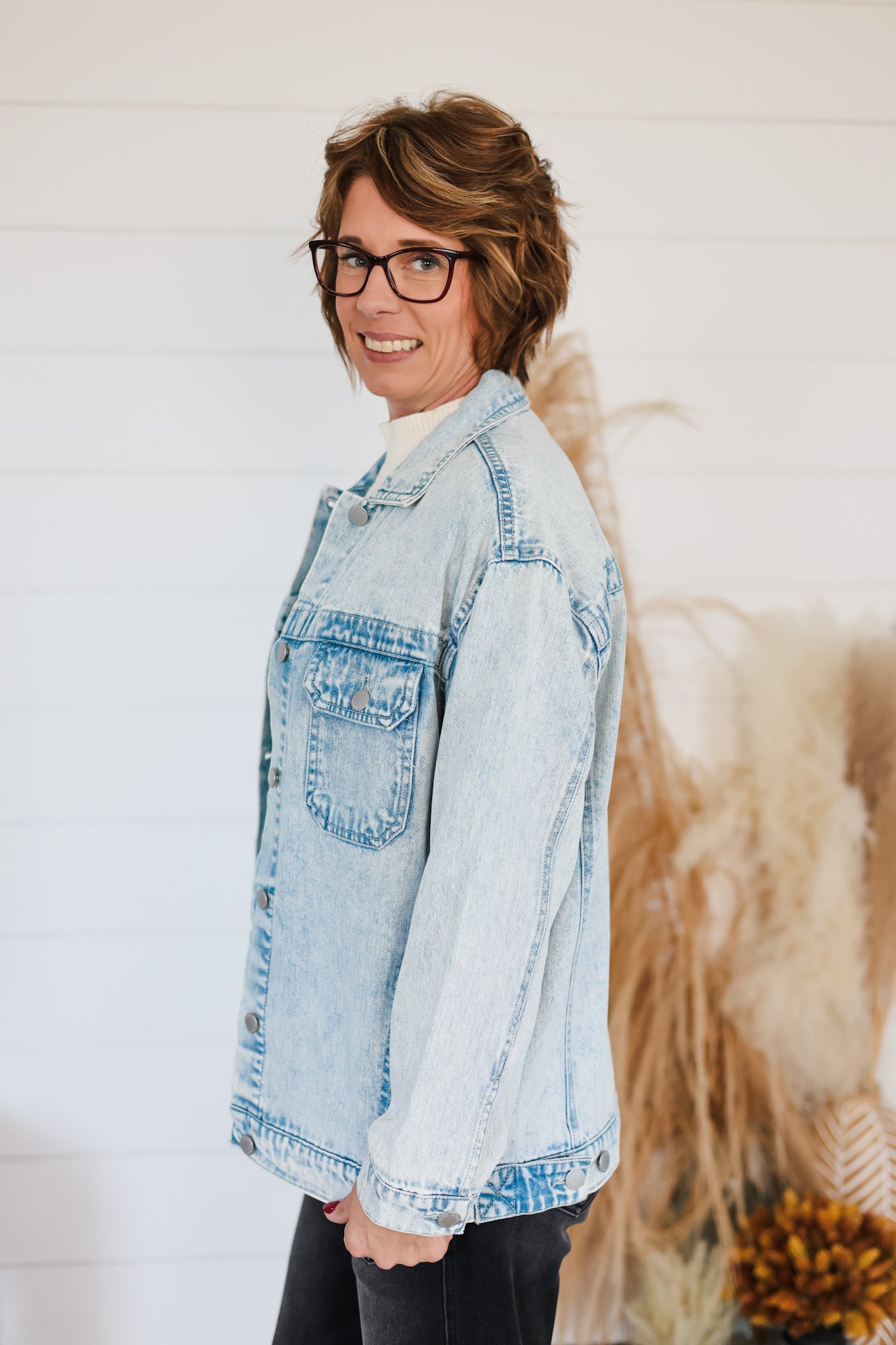 Step into effortless cool with the Learn The Technique Jacket. This oversized acid wash denim jacket brings a laid-back vibe to any outfit while keeping you cozy and comfortable. Its vintage-inspired wash adds character, making it perfect for layering over your favorite tees or dresses. Embrace playful style with a jacket that’s as bold and unique as you are.