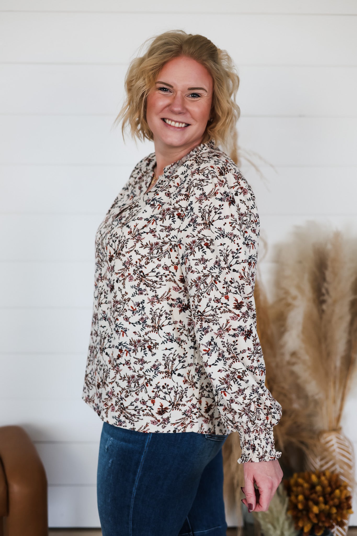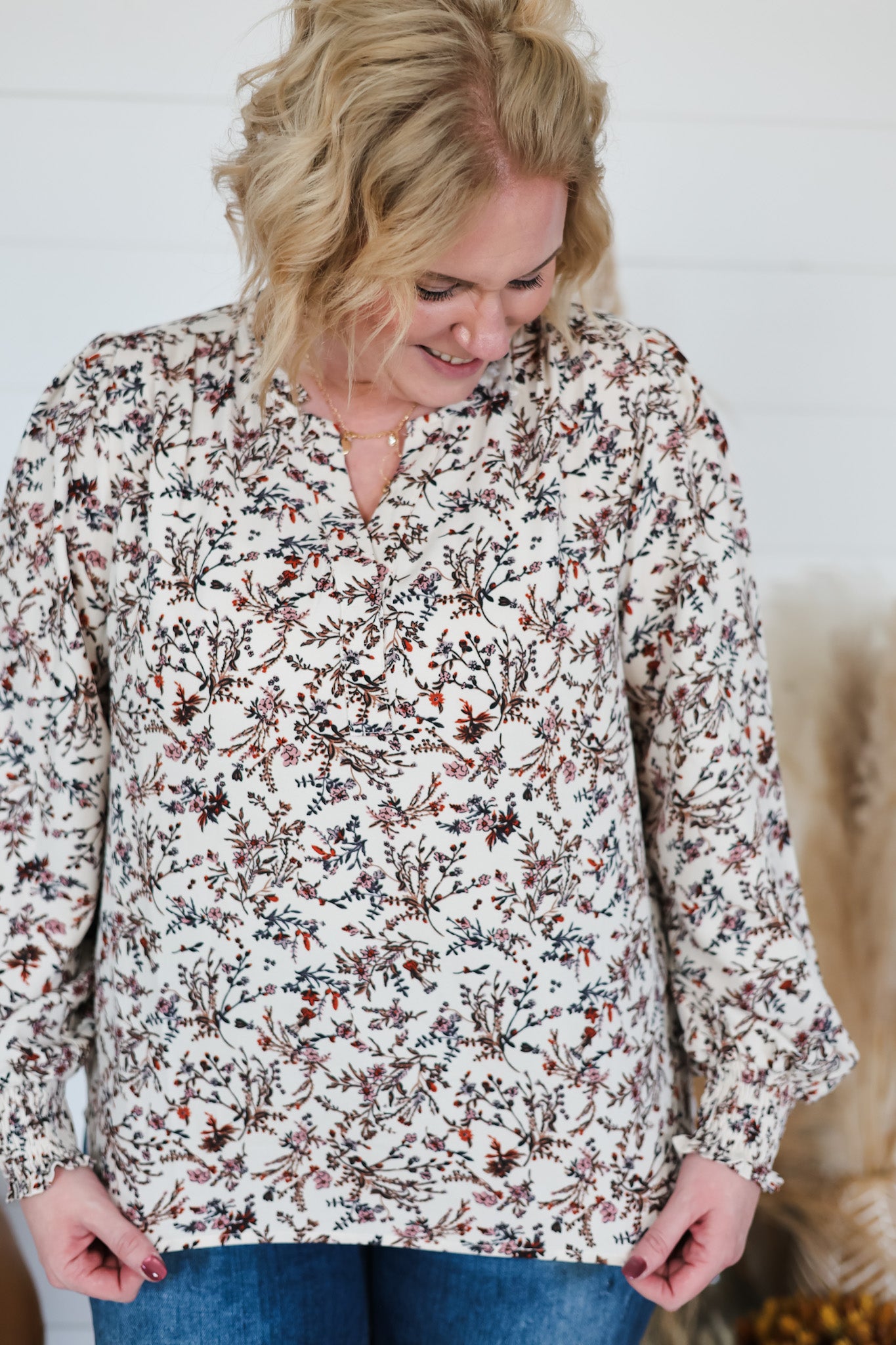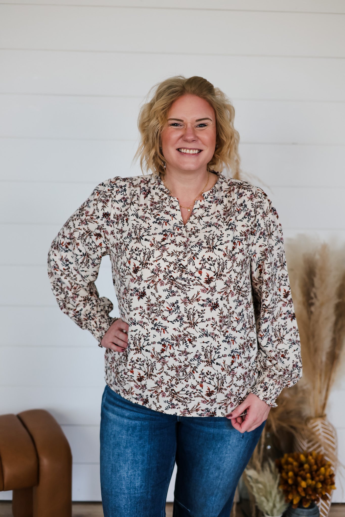 Embrace effortless elegance with the Let It Be Top, a charming split V-neck blouse that brings together timeless style and modern comfort. Featuring long sleeves with smocked cuffs that add a delicate, gathered detail, this top showcases a beautiful floral print that feels fresh and feminine. The split neckline creates a flattering silhouette perfect for dressing up or down. Whether you're heading to brunch or a casual day out, this versatile piece is your go-to for looking put-together without trying too hard.