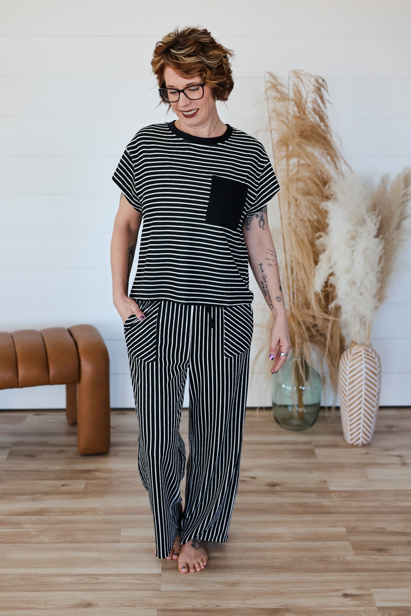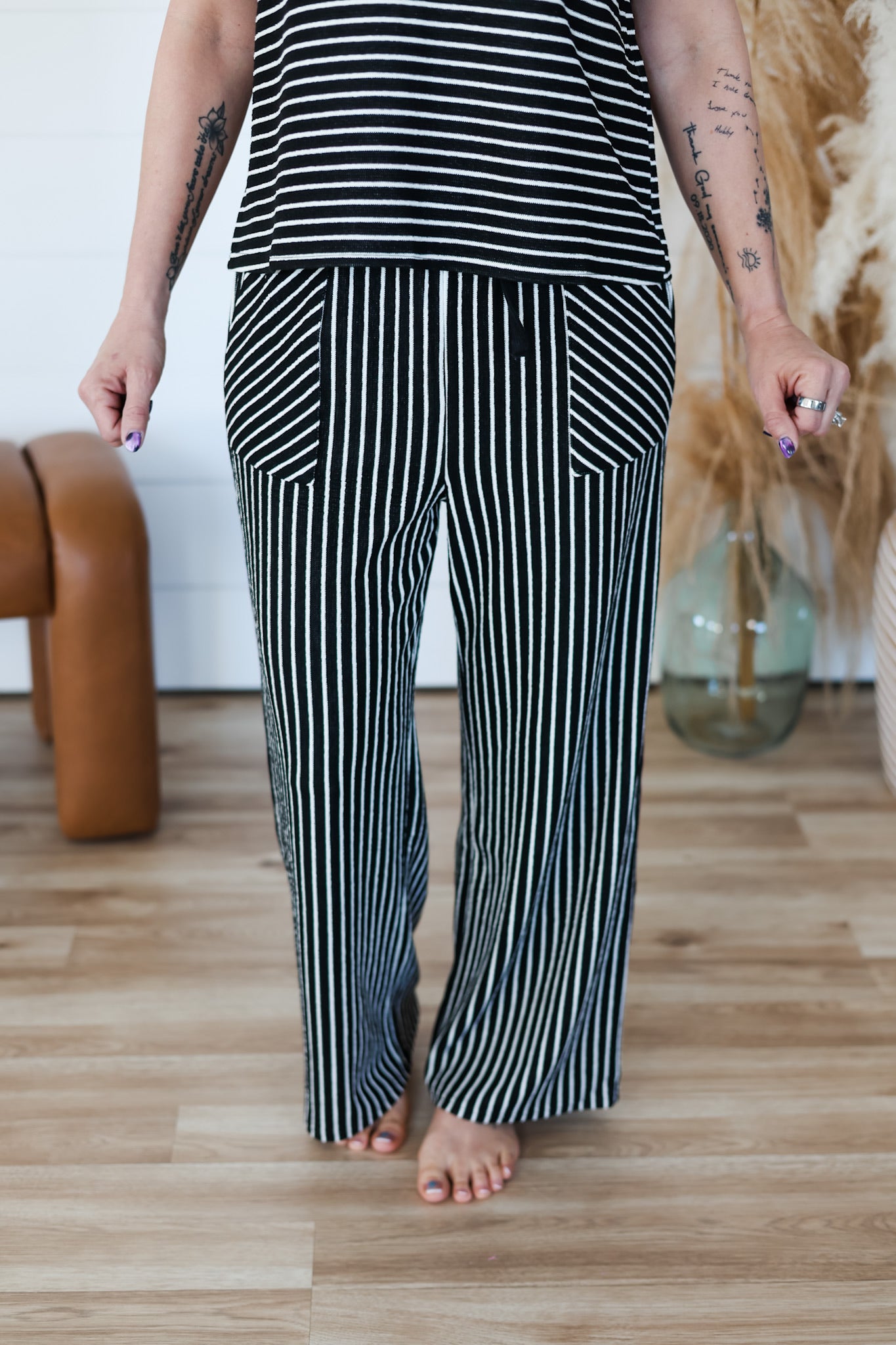 Step into comfort with the Life Goes On Pant—striped straight-leg pants crafted in a cozy textured knit. Featuring handy pockets and a functional drawstring, they’re perfect for relaxed days when you want to look effortlessly cool while staying comfy.
