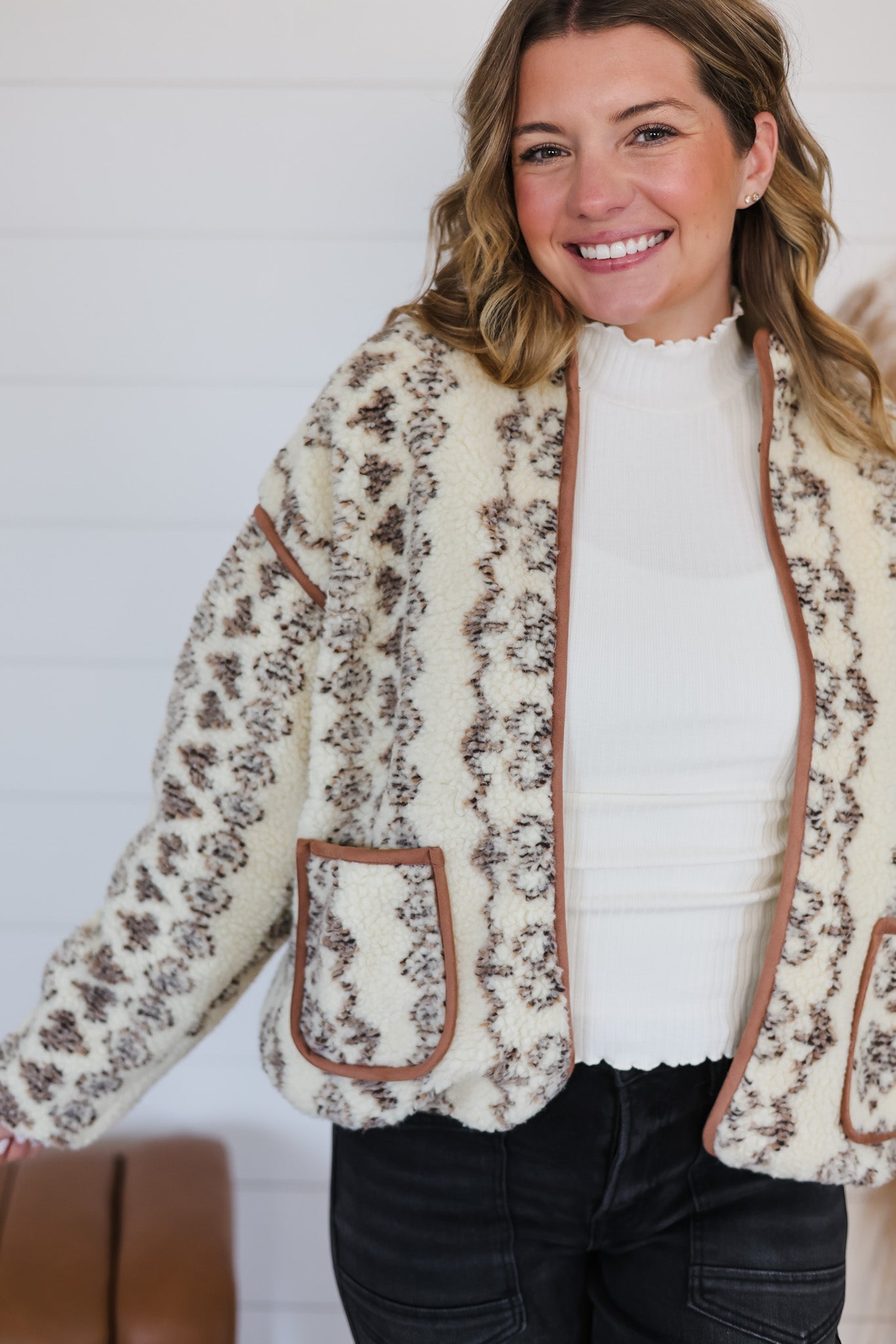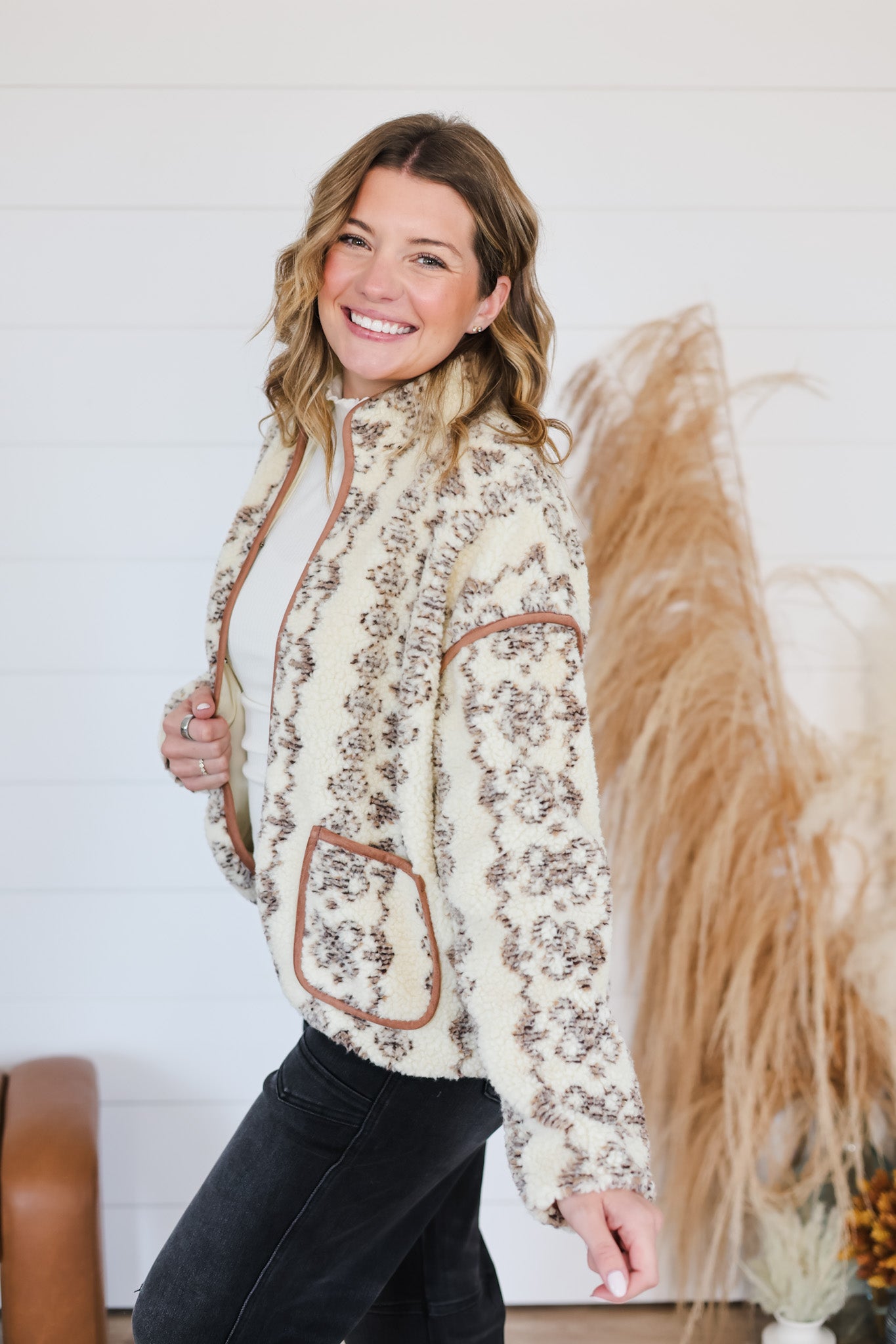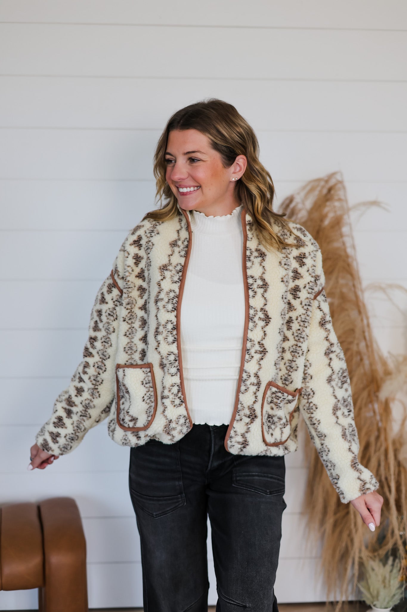 Wrap yourself in cozy charm with the Life With You Jacket. Featuring a soft faux shearling fabric and a snug funnel neck, this jacket keeps the chill at bay while adding playful flair. The easy clasp front ensures a quick, stylish close for days when comfort meets cool. Perfect for layering up your adventures with warmth and personality.