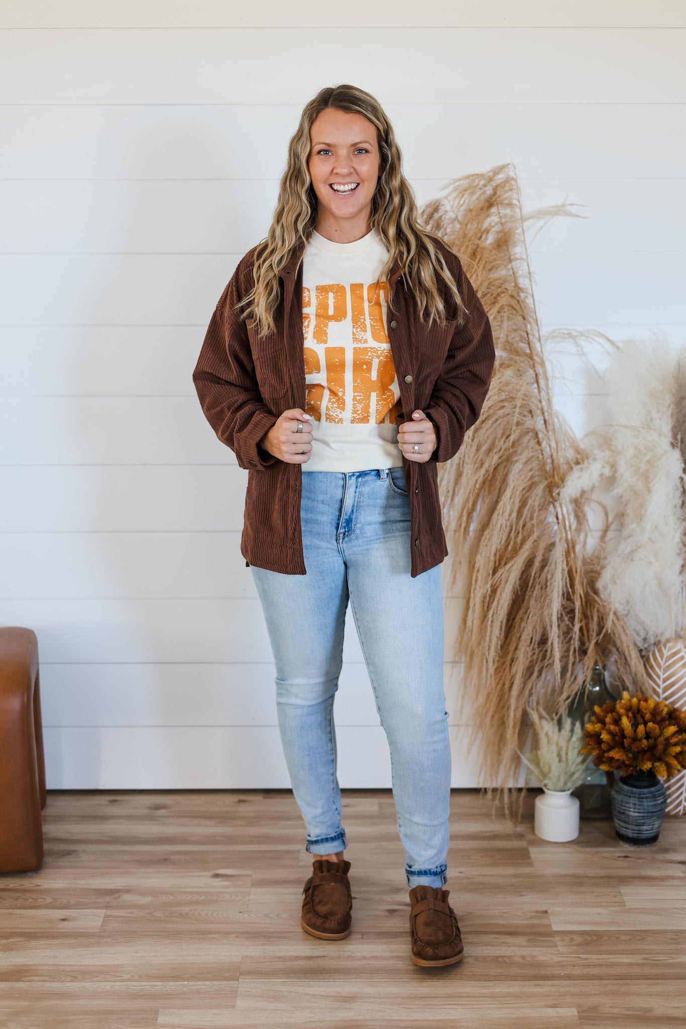 Meet the Life With You Top — a cozy, oversized corduroy jacket that’s as fun as your favorite weekend plans. With a cheerful front button-down design, it’s perfect for layering up with a playful twist. Whether you’re out exploring or lounging in style, this jacket adds a comfy, cool vibe to every moment.