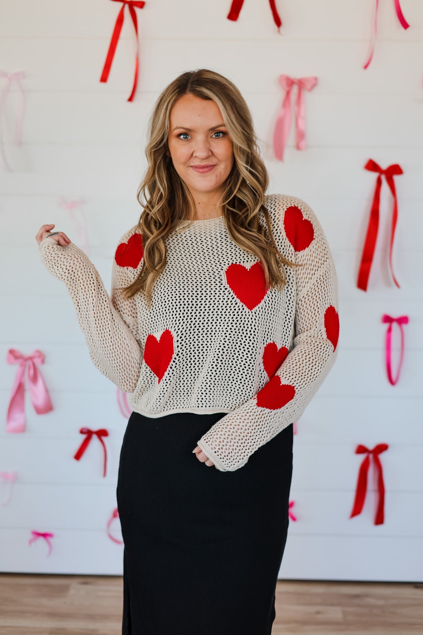 Wrap yourself in cozy charm with the Life With You Top, a delightful knit pullover sweater featuring an adorable heart pattern throughout. Perfect for layering or wearing solo, this playful piece brings warmth and whimsy to your everyday wardrobe. The soft knit fabric hugs comfortably while the charming heart design adds a touch of sweetness to any outfit. Whether you're heading out for a casual day or snuggling up at home, this pullover is your new go-to for effortless style with a smile.