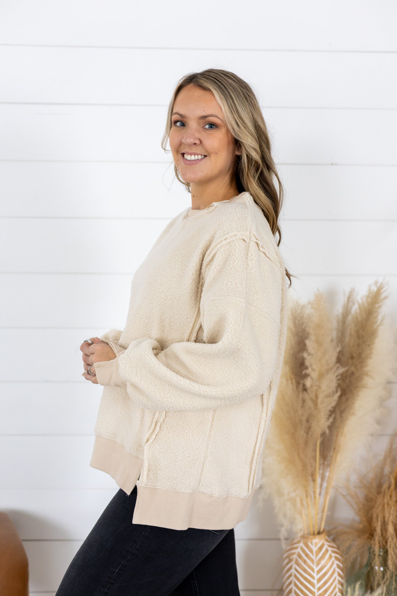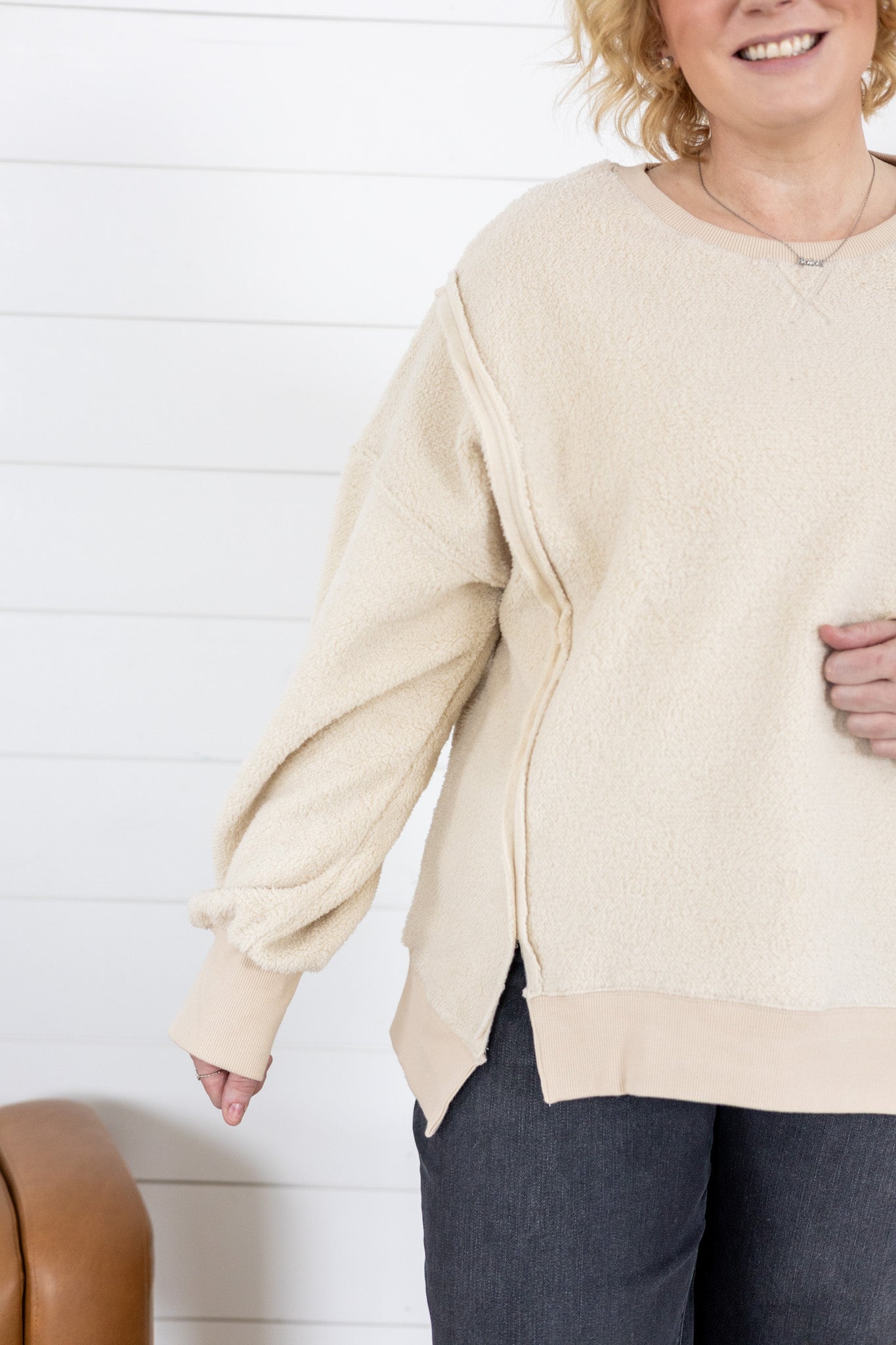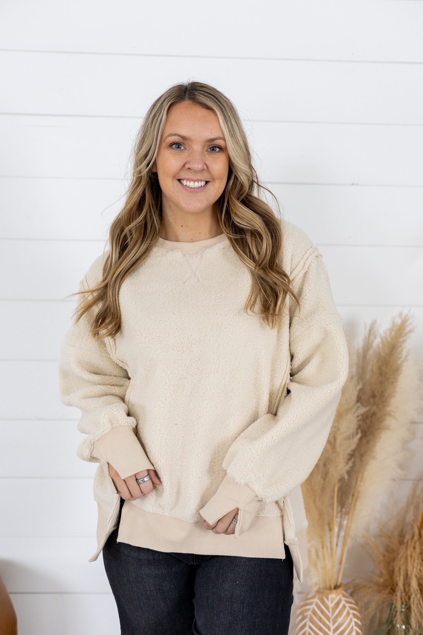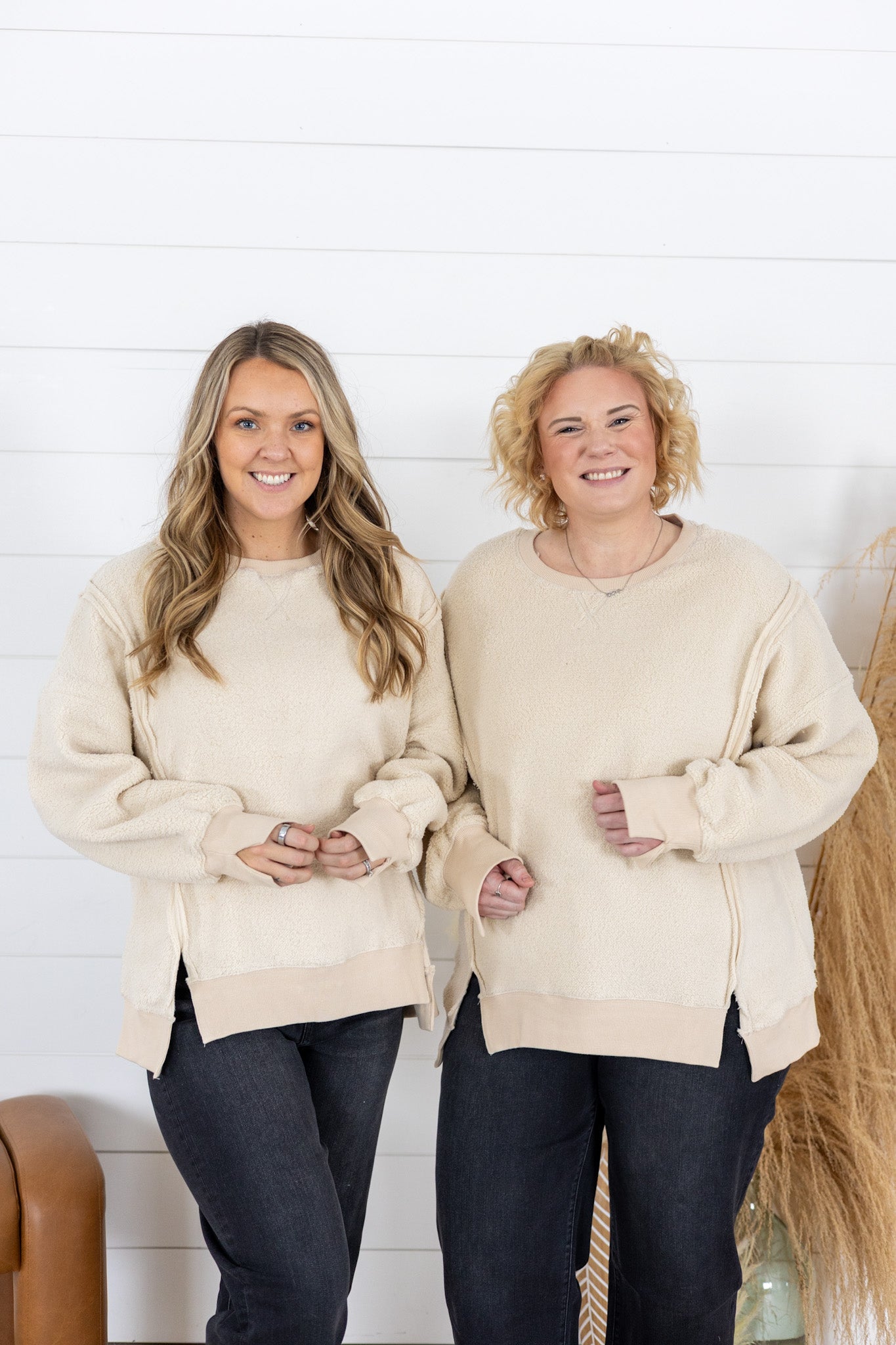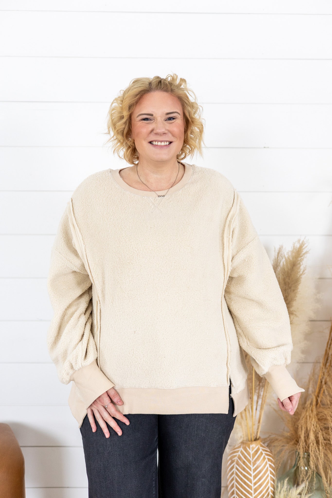 Wrap yourself in cozy comfort with the Light In The Season Top—an oversized fleece essential that's anything but basic. Featuring a relaxed round neckline, effortless drop shoulders, and long sleeves, this piece practically begs to be your new go-to layer. The subtle front slit adds just enough edge to keep things interesting. Perfect for those days when you want to feel snug without sacrificing style, this solid fleece top is your casual wardrobe's best friend.