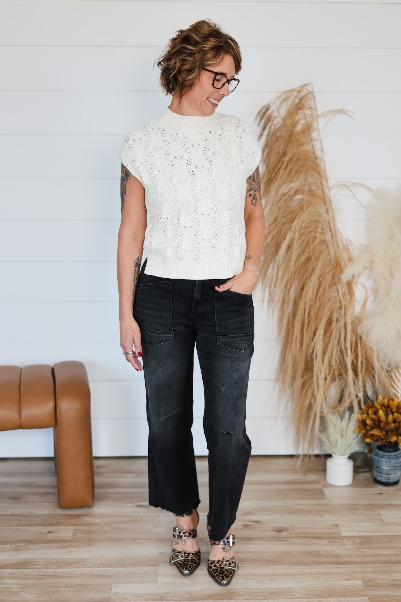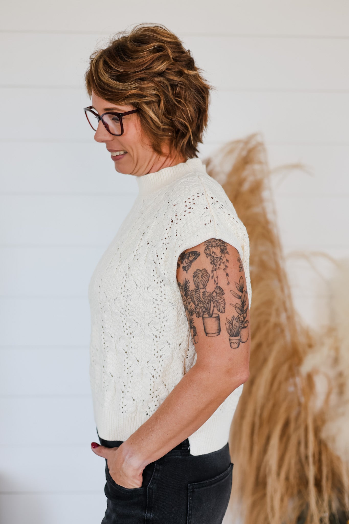 Get cozy and cute in the Love Finds You Top, a cable knit sweater with a charming mock neck. Its soft texture wraps you in warmth while the playful knit pattern adds a touch of whimsy to your look. Perfect for layering or wearing on its own, this sweater effortlessly combines comfort and style for those moments when you want to feel snug and stylish.