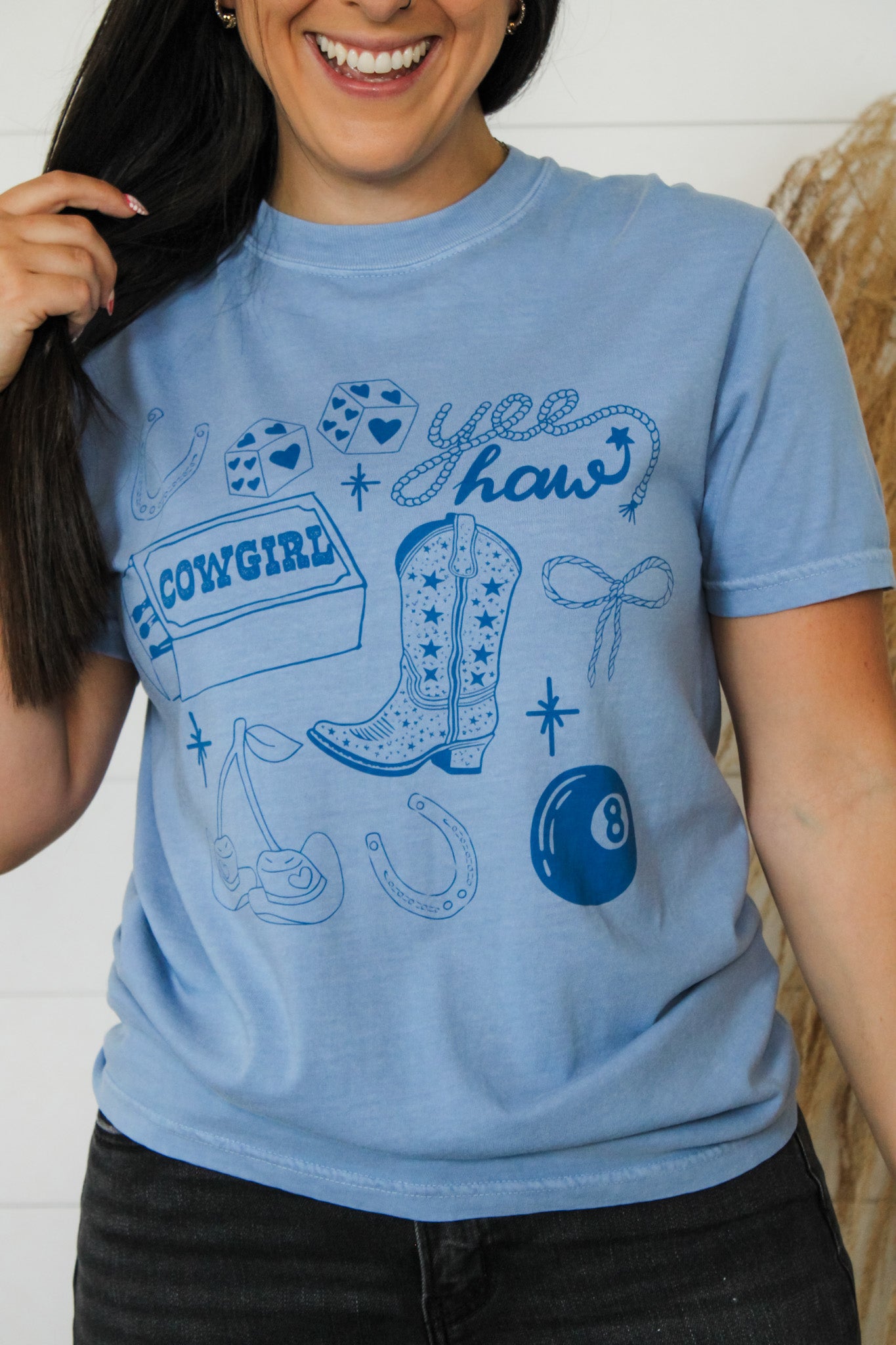 Spread good vibes with our Lucky Cowgirl Top! Made with Comfort Color cotton, this tshirt is not only easy to wear, but also provides all-day comfort. Perfect for any occasion, this top is the epitome of casual cool. So, go ahead and hang all day in this comfortable and stylish tee!