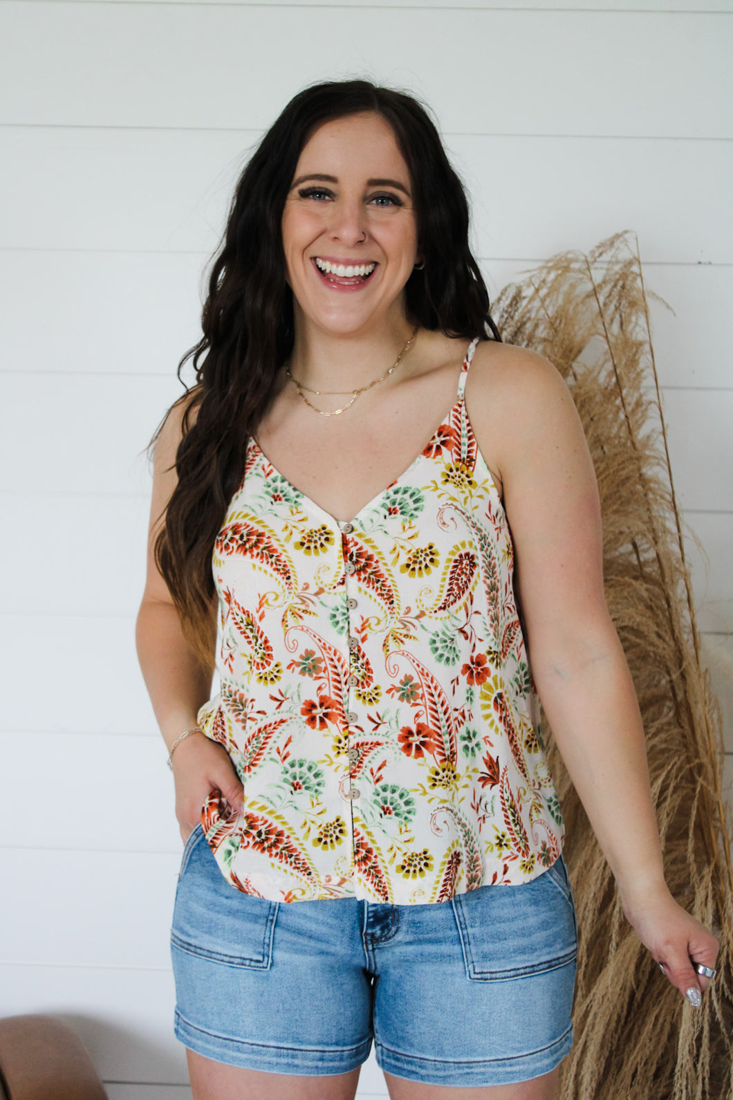 Elevate your casual wardrobe with our Lucky Streak Tank! This breezy button-up features a whimsical paisley print that adds a touch of bohemian charm to any outfit. The lightweight fabric keeps you cool while the playful pattern brings good vibes wherever you go. Perfect for layering or wearing solo on sunny days!