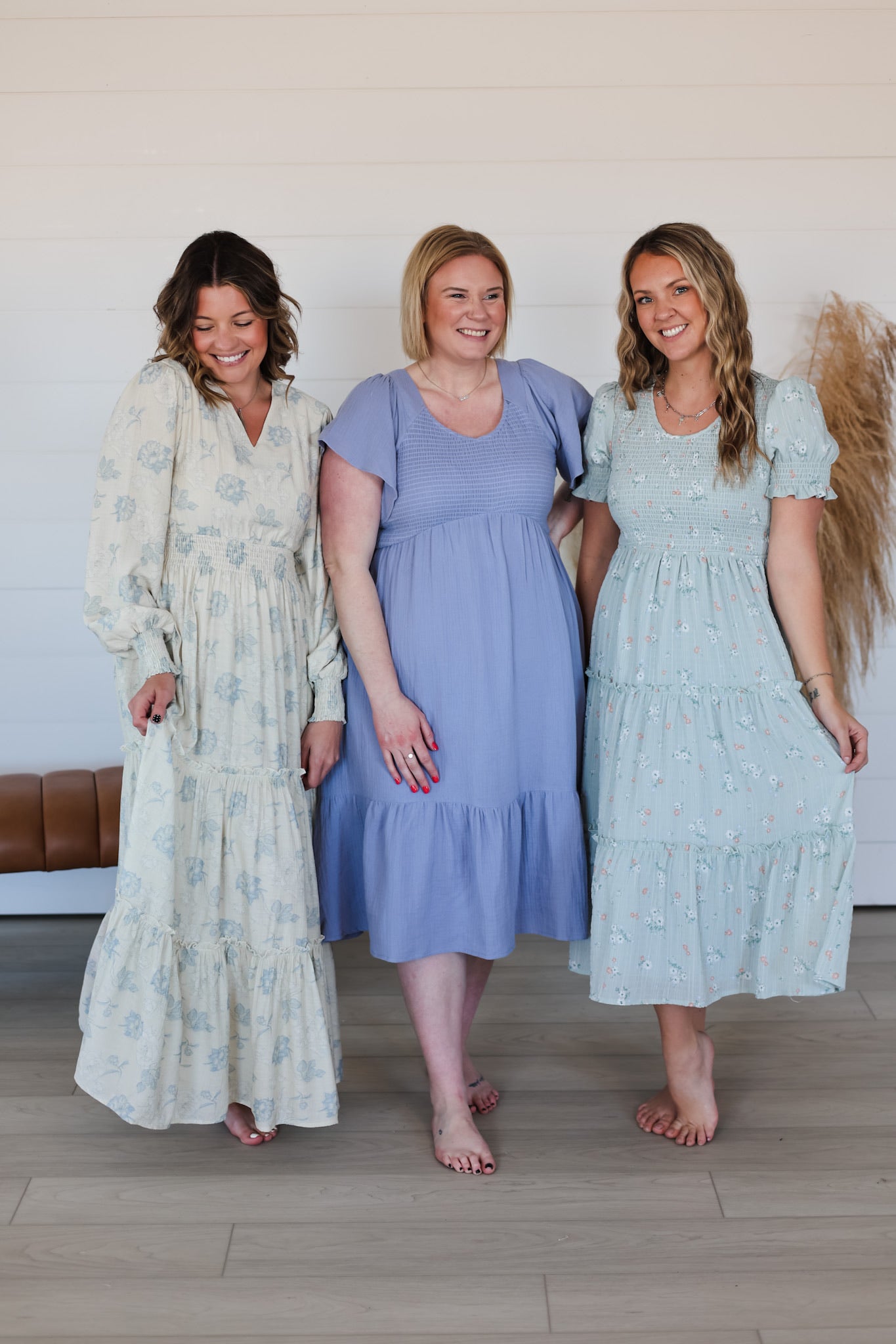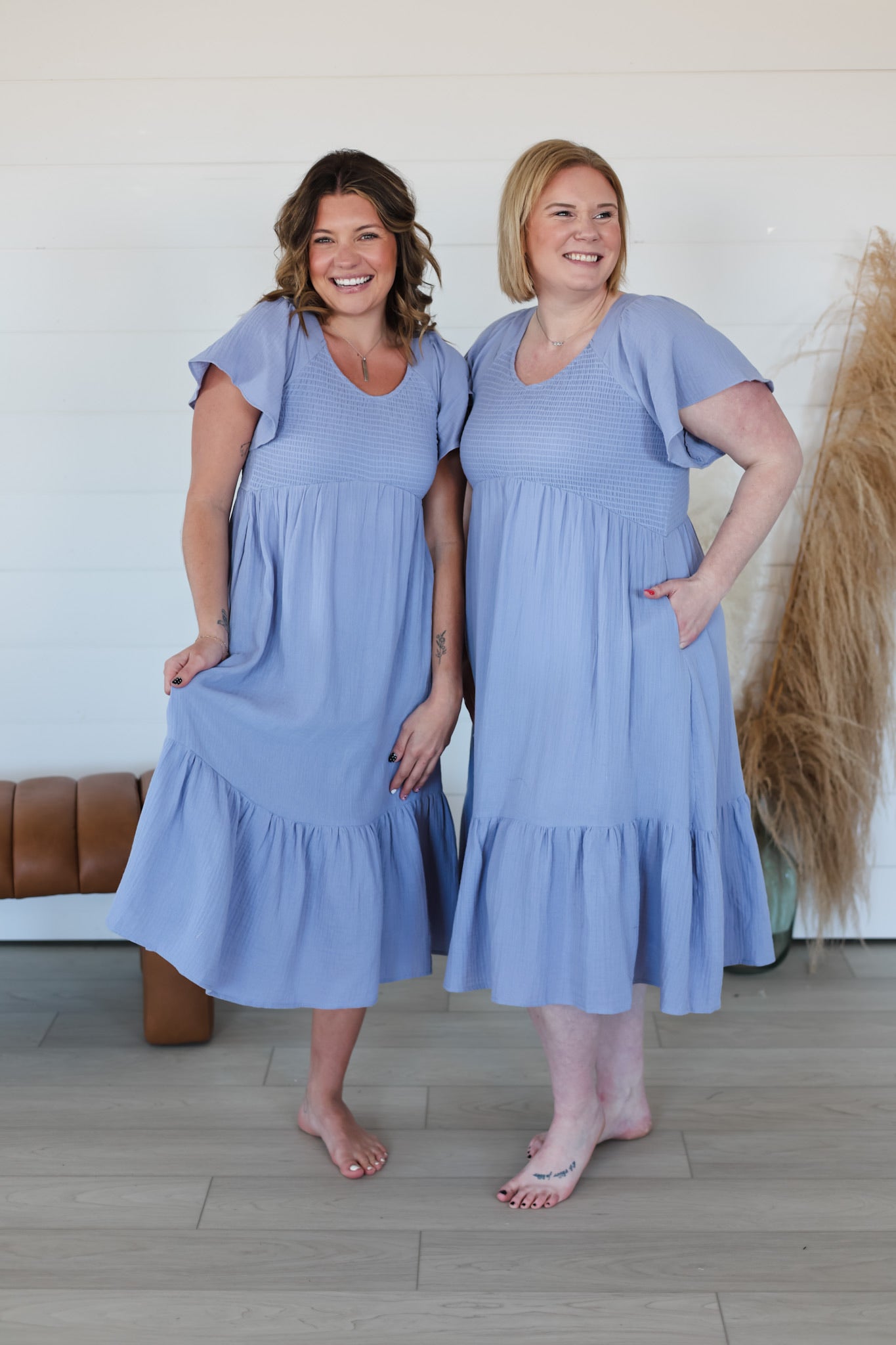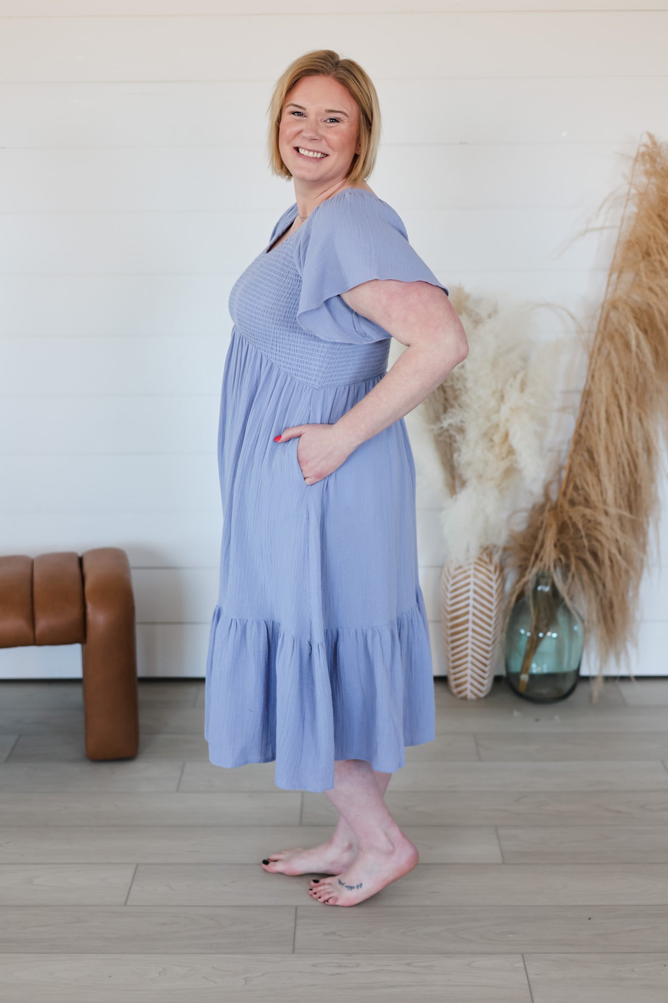 Twirl into romance with the Make You Mine Dress, a midi marvel that's equal parts sweet and sultry. The smocked bodice hugs you just right, while flutter sleeves add a touch of whimsy. A playful ruffle hem keeps things fun, and the flattering v-neckline draws all the right attention. Perfect for date night, garden parties, or whenever you want to feel effortlessly enchanting.