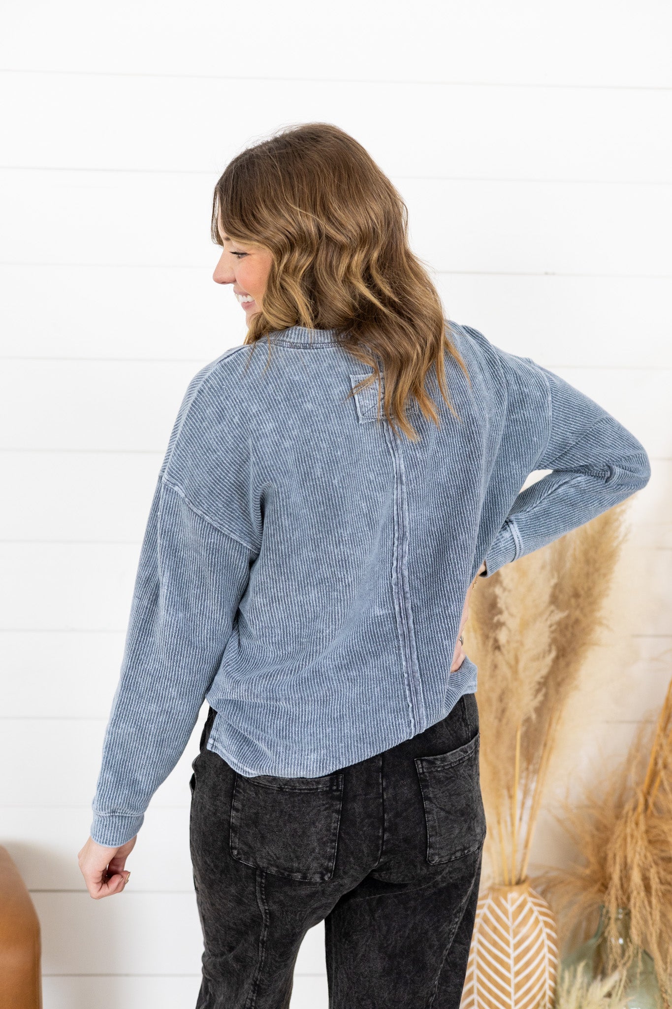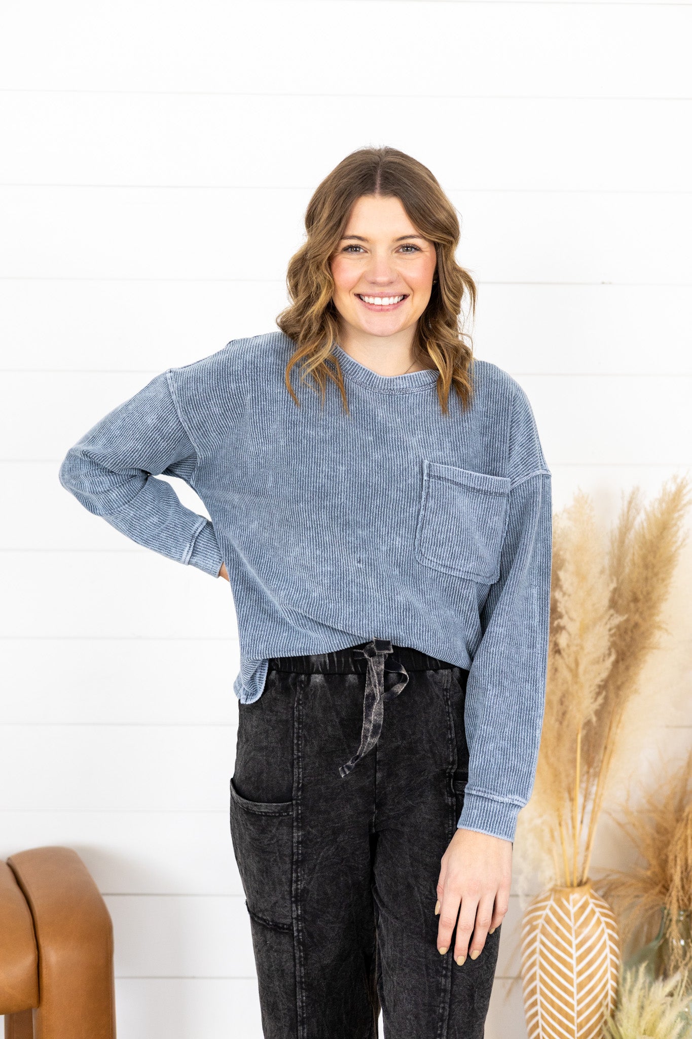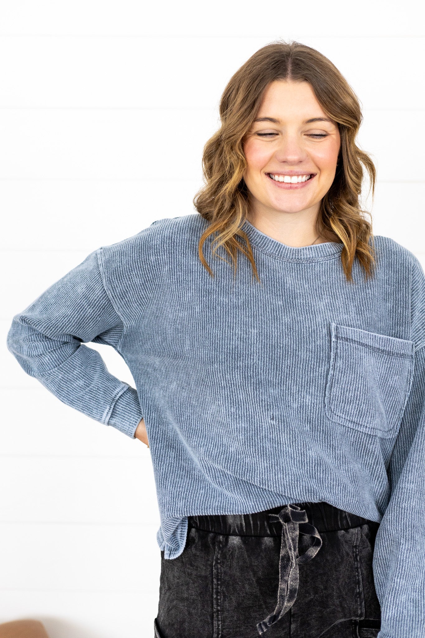 The Make You Miss Me Top is a long sleeve rib-knit cozy enough to keep you comfy while adding a flirty touch with its washed pocket detail. Its soft, textured fabric flatters your shape and brings casual charm to any outfit, perfect for days when you want to feel effortlessly cute with a hint of sass.