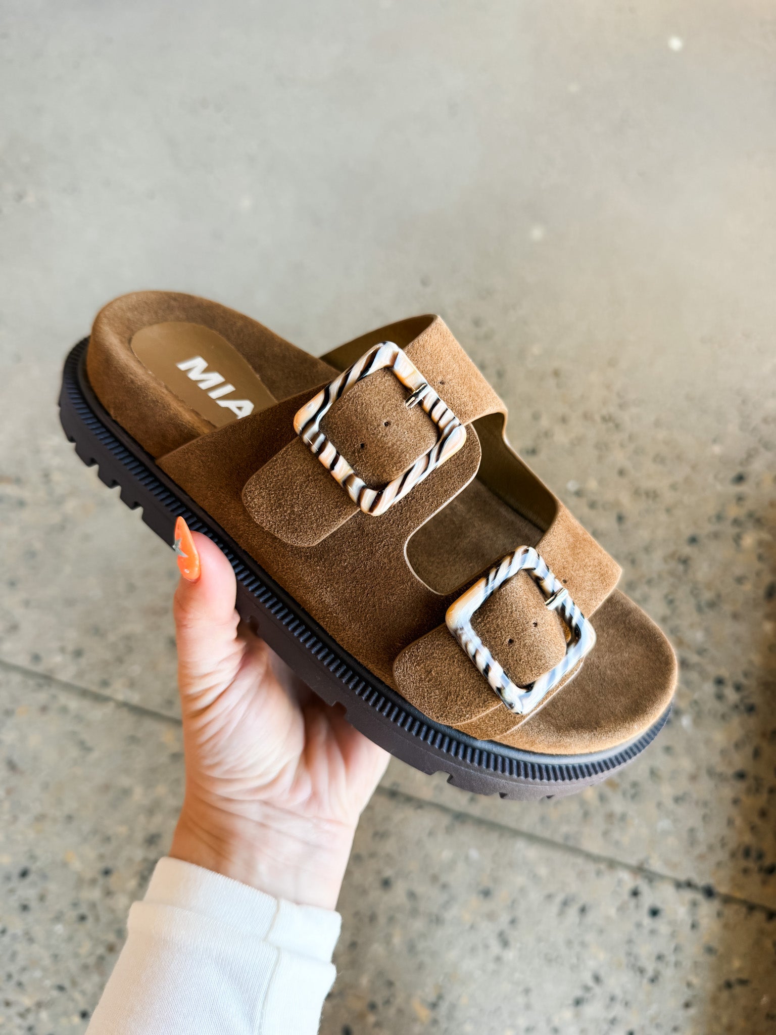 Step into cloud nine with the MIA Gen Suede Sandal. Wrapped in buttery suede that feels like a dream against your skin, this sandal pairs luxe comfort with effortless style. The cloud-soft footbed cradles every step, while tortoise adjustable buckles let you customize the perfect fit. Whether you're running errands or heading out for the day, this is the sandal that makes you feel like you're walking on air.