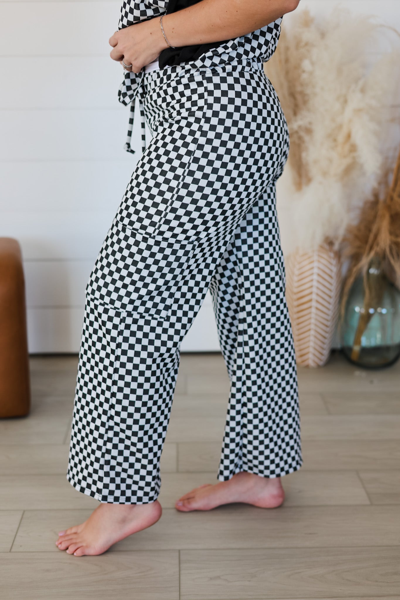 Escape the ordinary in these charming checkered pants that blend comfort with style. Featuring an elastic waistband paired with a functional drawstring, you'll enjoy a customizable fit that moves with you throughout the day. The cropped length hits just right for a modern, versatile look that pairs effortlessly with sneakers or sandals. Perfect for weekend adventures or casual everyday wear, these pants deliver the relaxed vibe you've been craving.