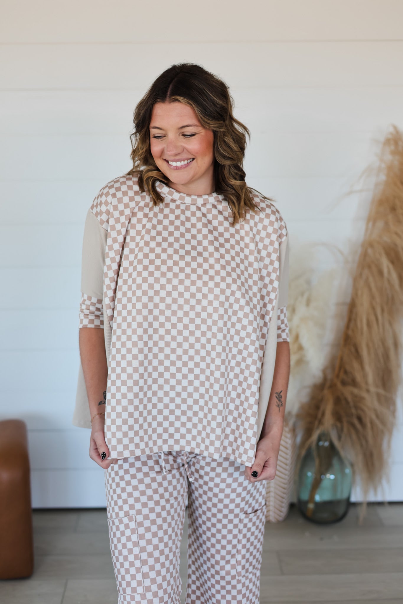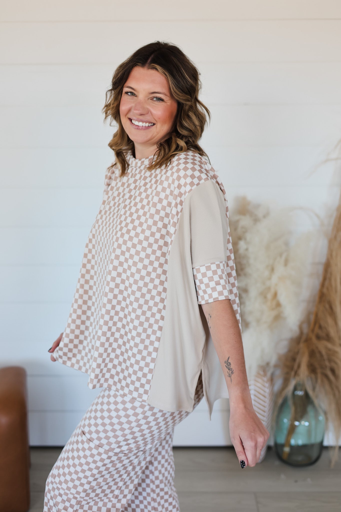 Ready for your next adventure? The Need To Getaway Top is your go-to piece for effortless style. This oversized beauty features a charming checkered pattern paired with ribbed detailing that keeps everything in place. The stretchy fabric moves with you, whether you're exploring new destinations or just dreaming about them. Layer it over basics or wear it solo—either way, you'll feel comfortable and put-together. Perfect for those days when wanderlust calls.
