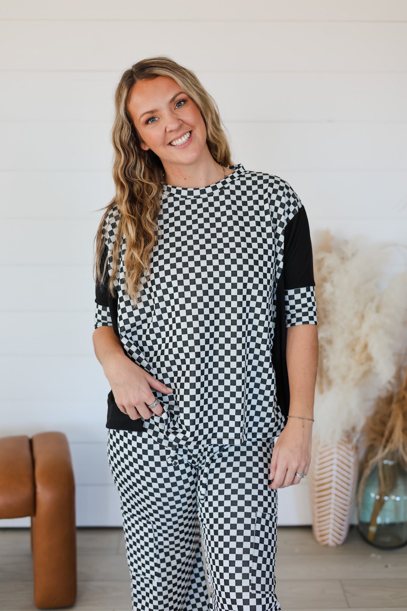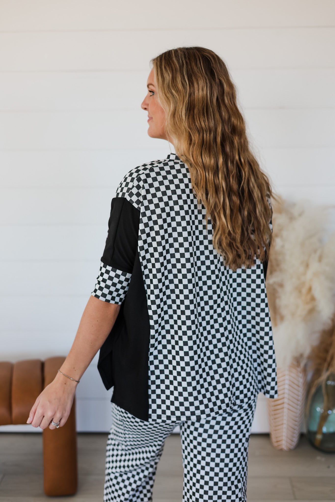 Ready for your next adventure? The Need To Getaway Top is your go-to piece for effortless style. This oversized beauty features a charming checkered pattern paired with ribbed detailing that keeps everything in place. The stretchy fabric moves with you, whether you're exploring new destinations or just dreaming about them. Layer it over basics or wear it solo—either way, you'll feel comfortable and put-together. Perfect for those days when wanderlust calls.