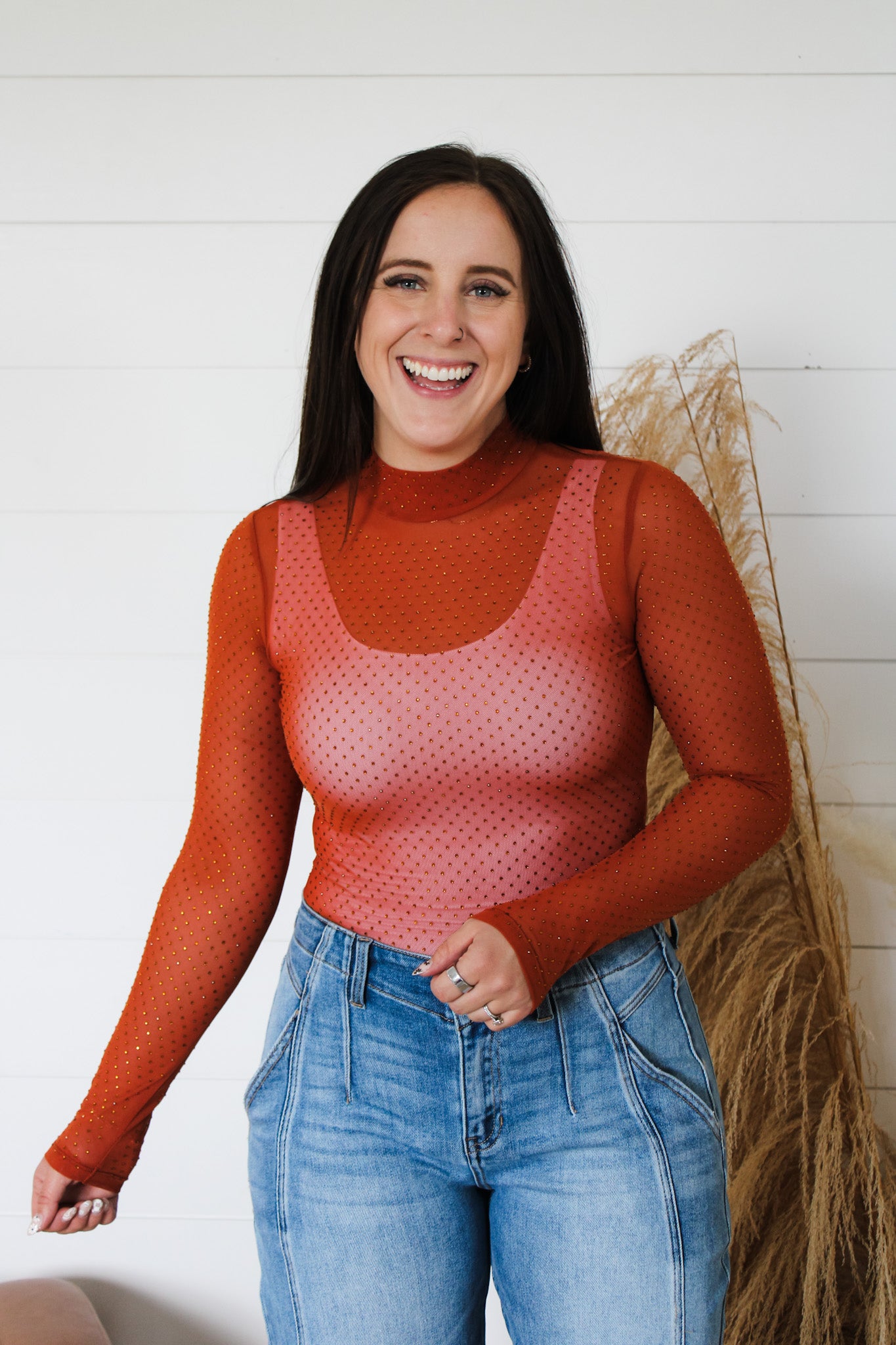 Be ready for your closeup! Get your glam on in our No Escape Bodysuit. Rocking sparkling rhinestones and a turtleneck style, you'll be the star of the show. Plus, no need to worry about wardrobe malfunctions, with the button snap closure on the bottom you'll be concert-ready in no time!