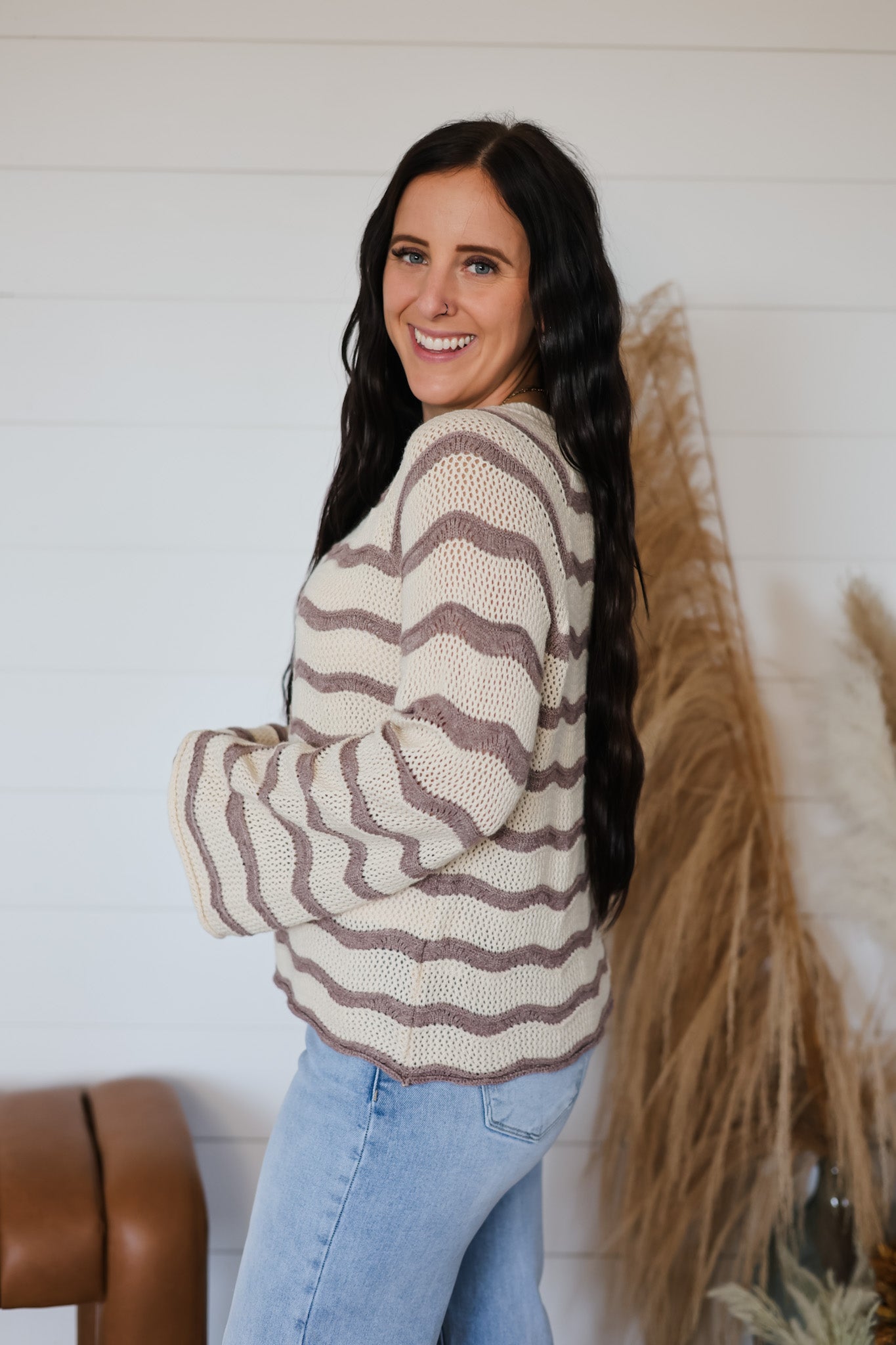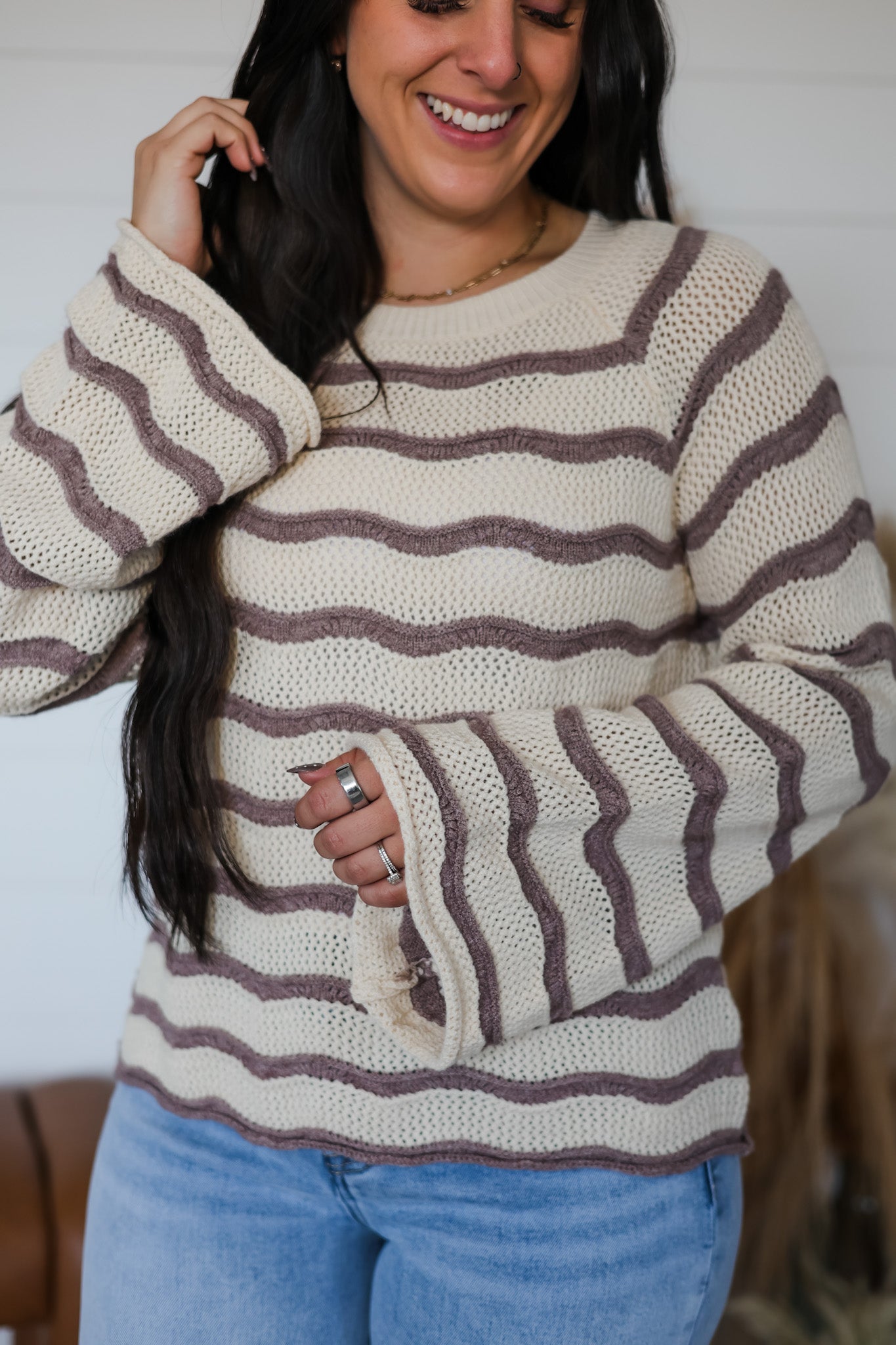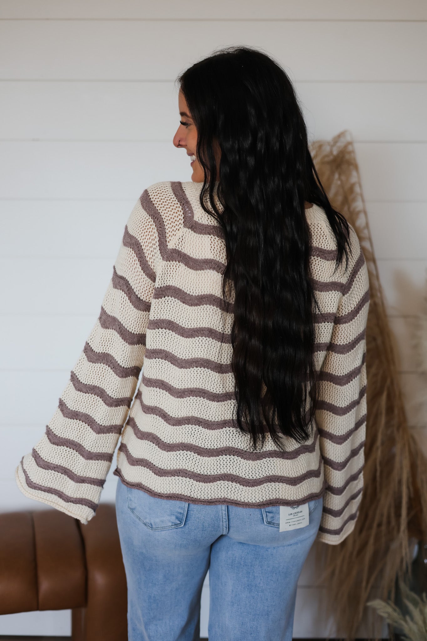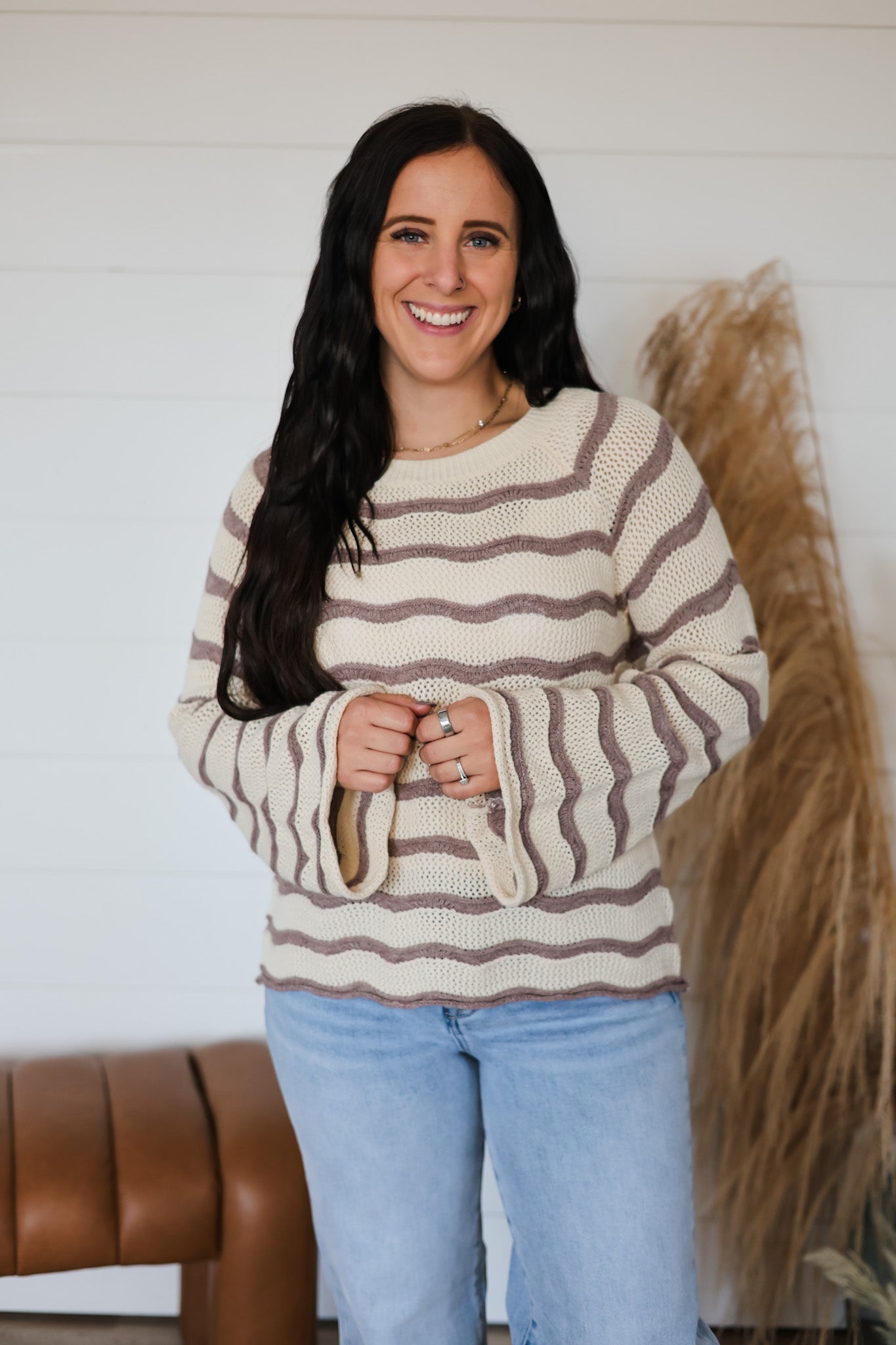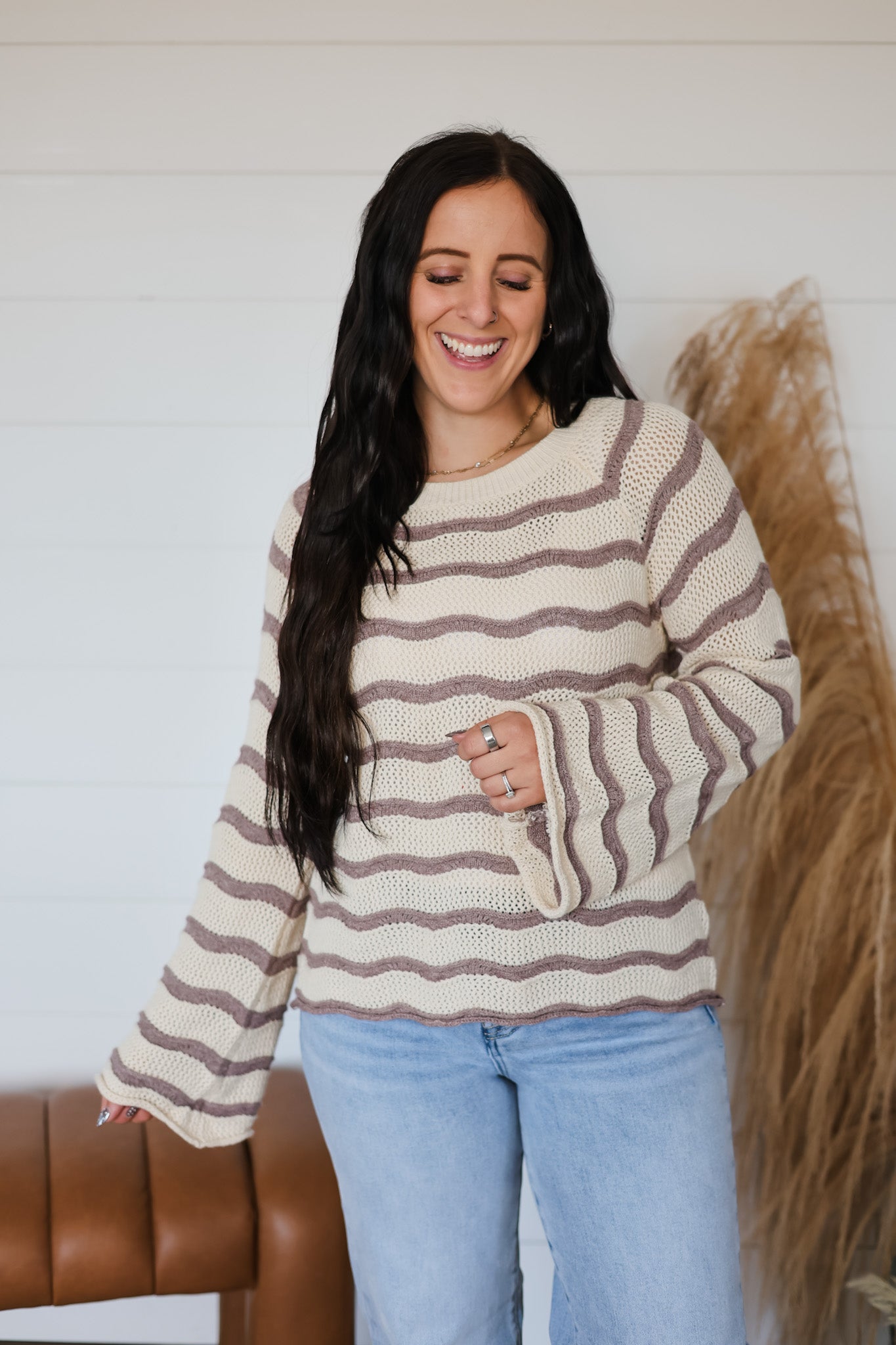 Elevate your casual style with the On My Team Top, featuring playful striped pointelle detailing and flirty bell sleeves. This lightweight sweater adds a fun textured twist to your look while keeping you comfortably stylish all day long. Perfect for layering or wearing on its own when you want to show off your spirited side!