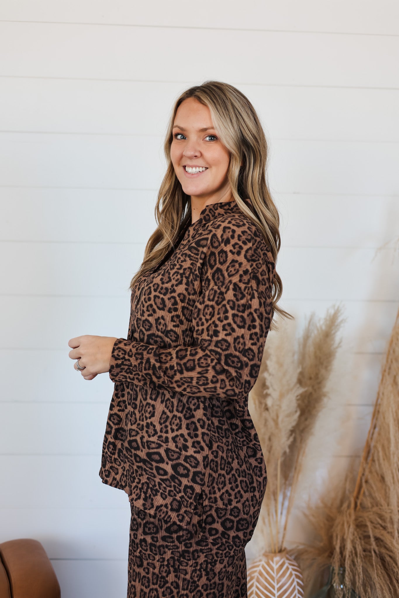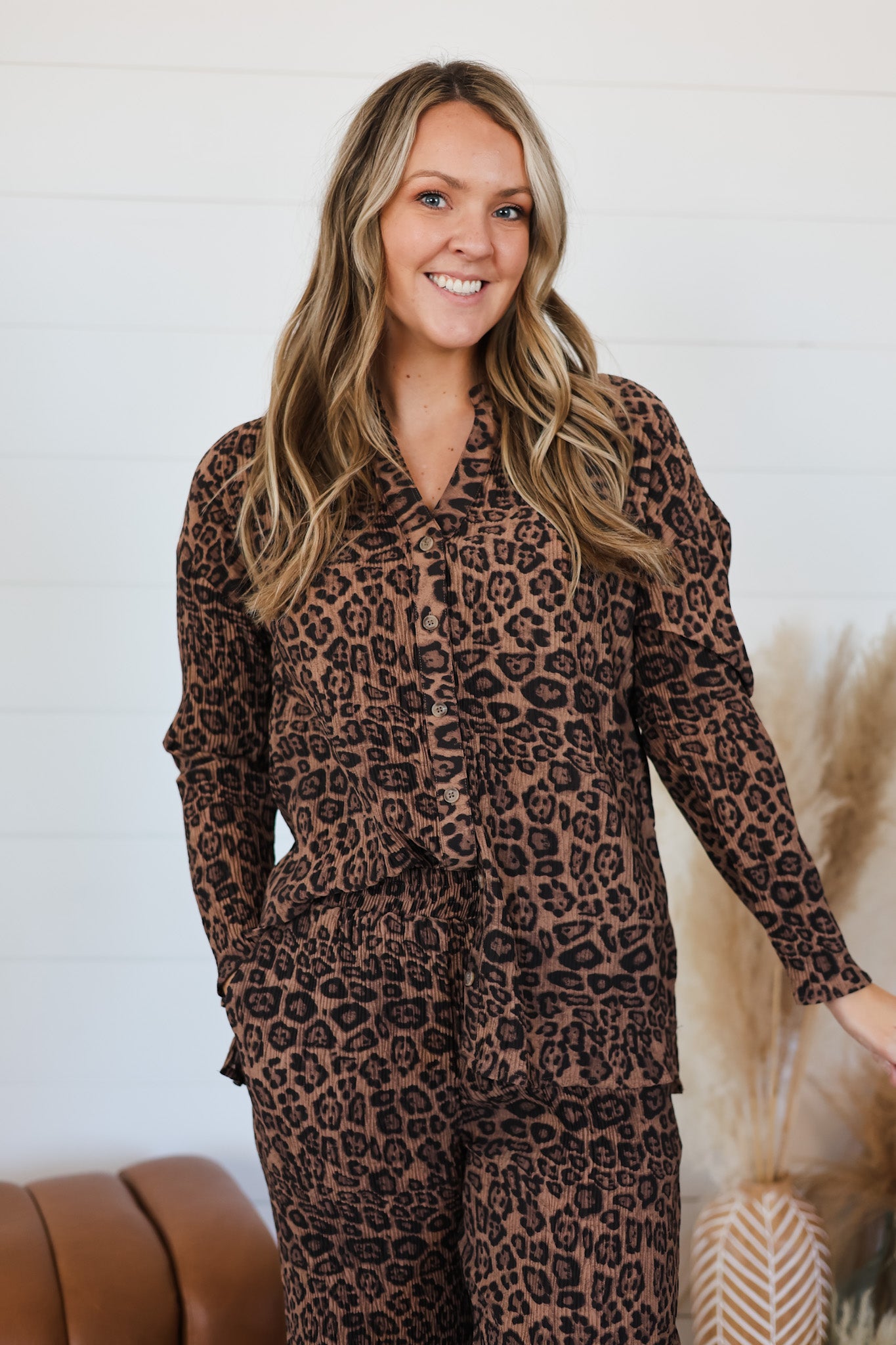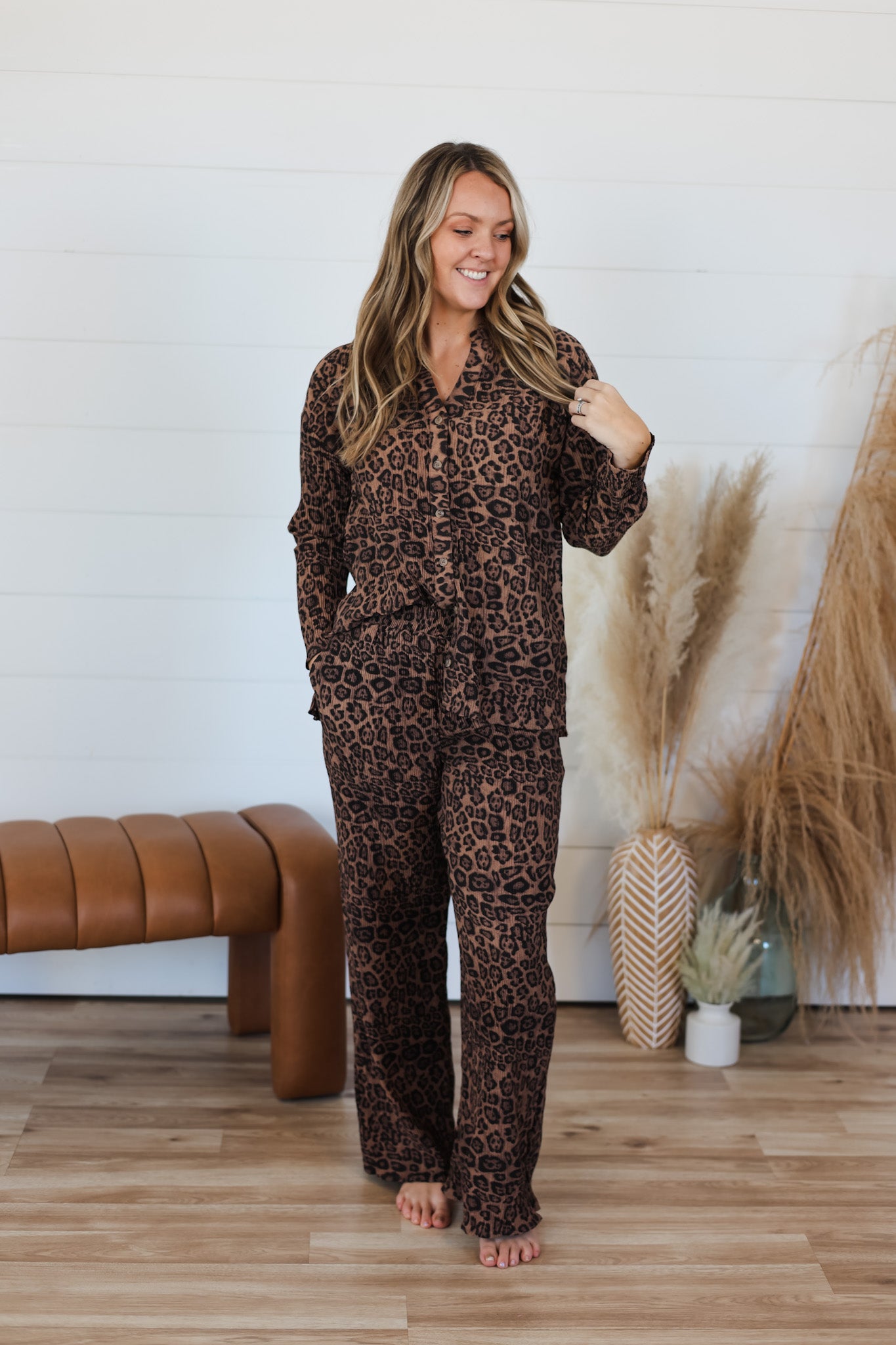 **On The Wild Side Set** Mix and match your way to endless outfit possibilities with this playful ribbed stretch set. The button-up top pairs perfectly with the pull-on elastic band pants for a coordinated look, or wear each piece solo for maximum versatility. Crafted from stretchy ribbed fabric that moves with you, this set delivers comfort without compromising on style. Whether you're dressing up or keeping it casual, you've got the freedom to express yourself.
