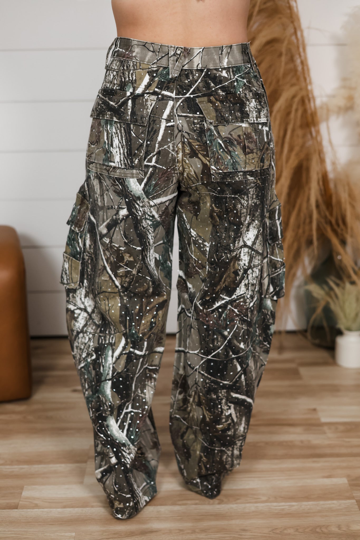 Make a bold statement in these Open The Gate Pants—oversized camo barrel legs with eye-catching rhinestone detailing that demands attention. Crafted from stretchy denim, they move with you while delivering that coveted relaxed silhouette. Perfect for turning heads whether you're hitting the streets or making an entrance. Comfort meets edge in this must-have piece.