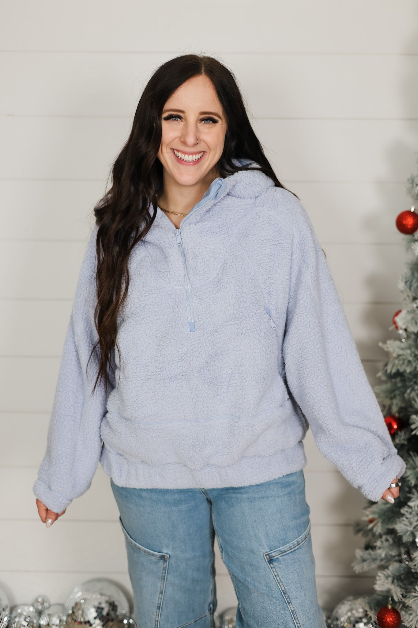 Wrap yourself in cozy comfort with the Picture Perfect Jacket—your new favorite layer for chilly days. This charming quarter-zip features a soft sherpa lining that feels like a warm hug, while the hood adds extra coverage when you need it. The soothing lavender hue brings a touch of calm to your wardrobe. Perfect for lounging, running errands, or those moments when you want to feel snug without sacrificing style. Effortlessly versatile and undeniably soft, this jacket is ready for whatever your day brings.
