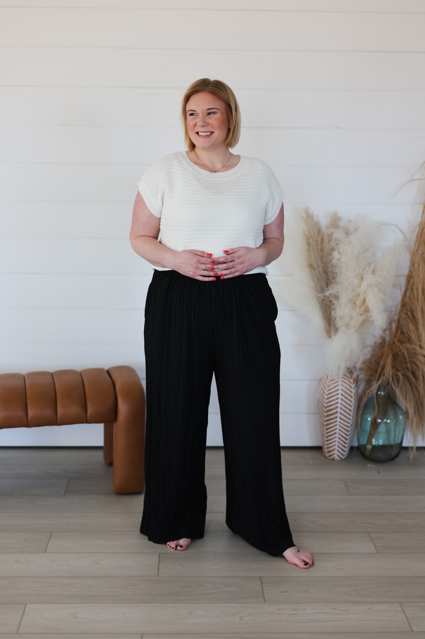 Step out with fun and flair in the Heart Out There Pant. These high-waisted, wide-leg pants feature an elastic ruffled waist for a comfy, flirty fit. With handy side pockets and a trendy raw edge cut, they’re perfect for playful days and casual adventures alike.