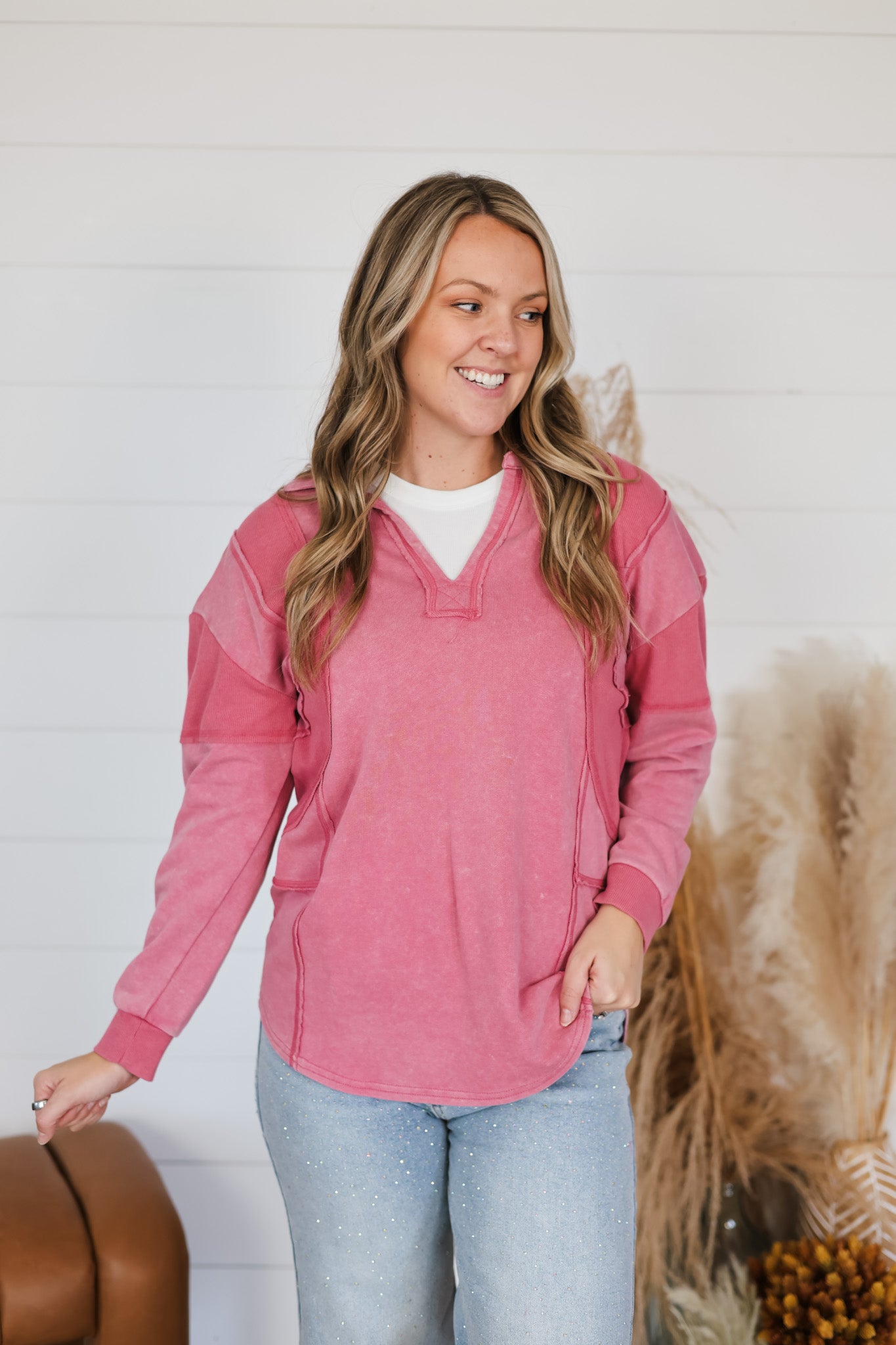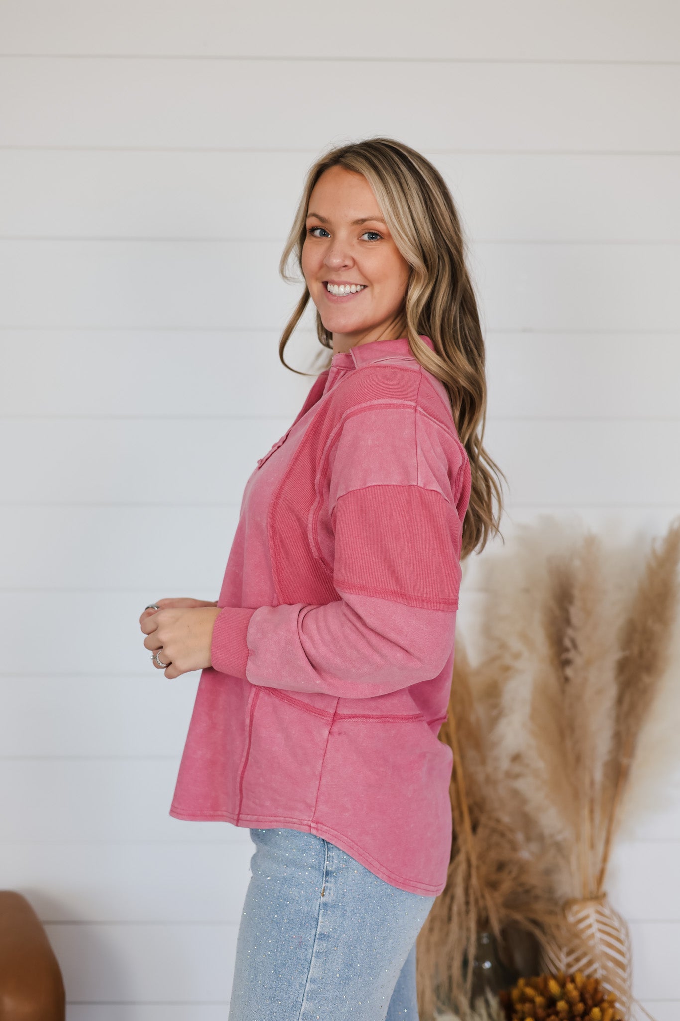 Effortlessly cool and undeniably comfy, the Heart To Break Top is your new go-to piece. This mineral-washed French terry knit features a relaxed drop shoulder silhouette that screams laid-back vibes, paired with a crisp collar for just enough polish. Long sleeves and a rounded hem complete the look—perfect for layering or wearing solo. Throw it on with your favorite jeans and watch heads turn.