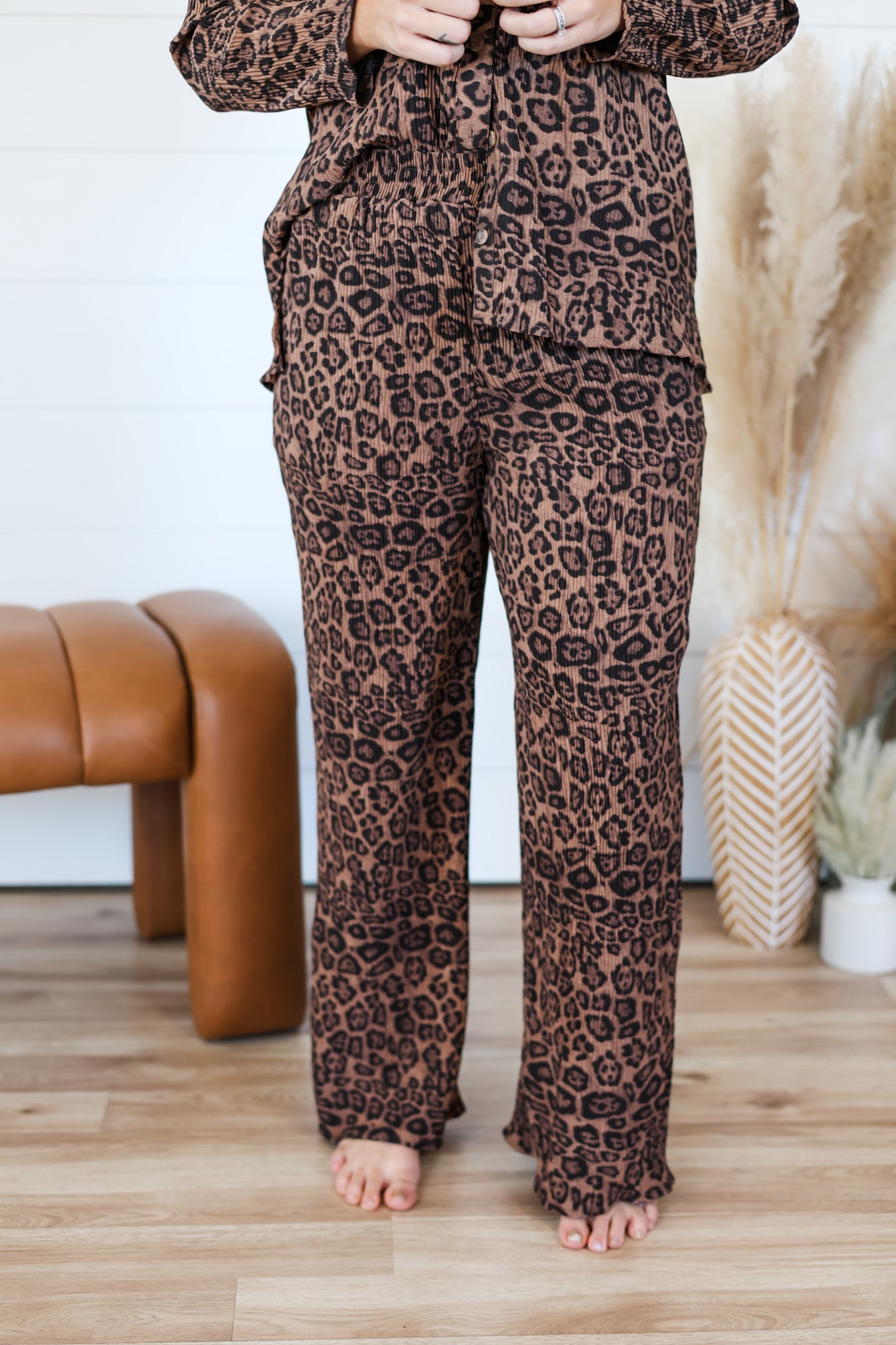 **On The Wild Side Set** Mix and match your way to endless outfit possibilities with this playful ribbed stretch set. The button-up top pairs perfectly with the pull-on elastic band pants for a coordinated look, or wear each piece solo for maximum versatility. Crafted from stretchy ribbed fabric that moves with you, this set delivers comfort without compromising on style. Whether you're dressing up or keeping it casual, you've got the freedom to express yourself.