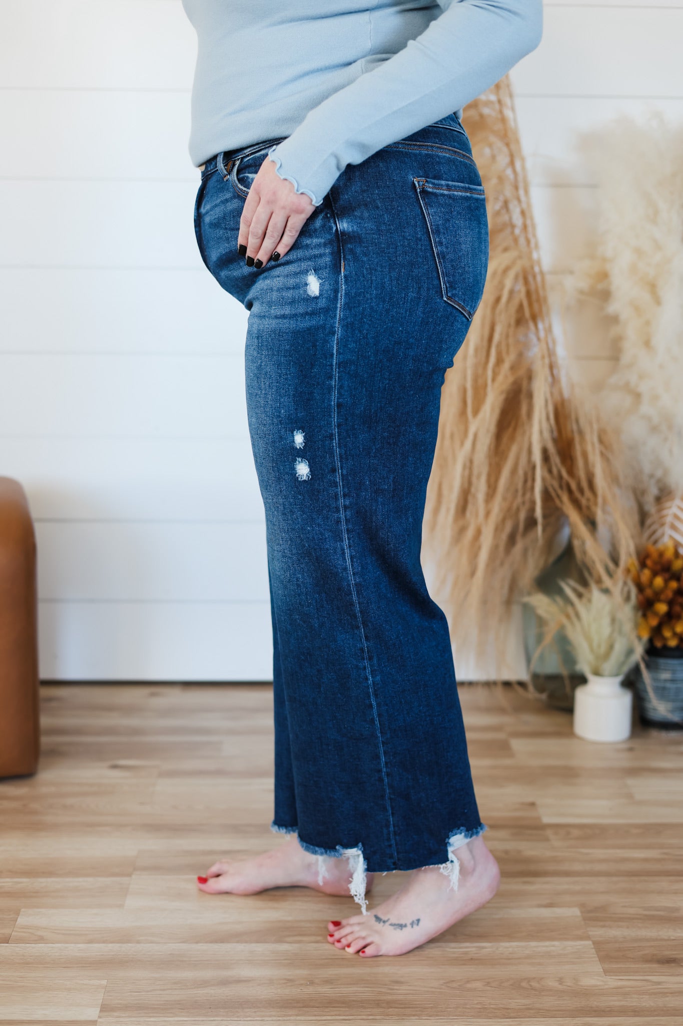 Step into the spotlight with the Risen: Progressing Forward Denim—your new go-to for effortless cool. These high-rise crop jeans flaunt a wide-leg cut and playful raw hem that let you show off your style with every step. Crafted from stretchy denim, they move with you, ensuring comfort meets confidence all day long. Perfect for mixing, matching, and making every outfit pop!