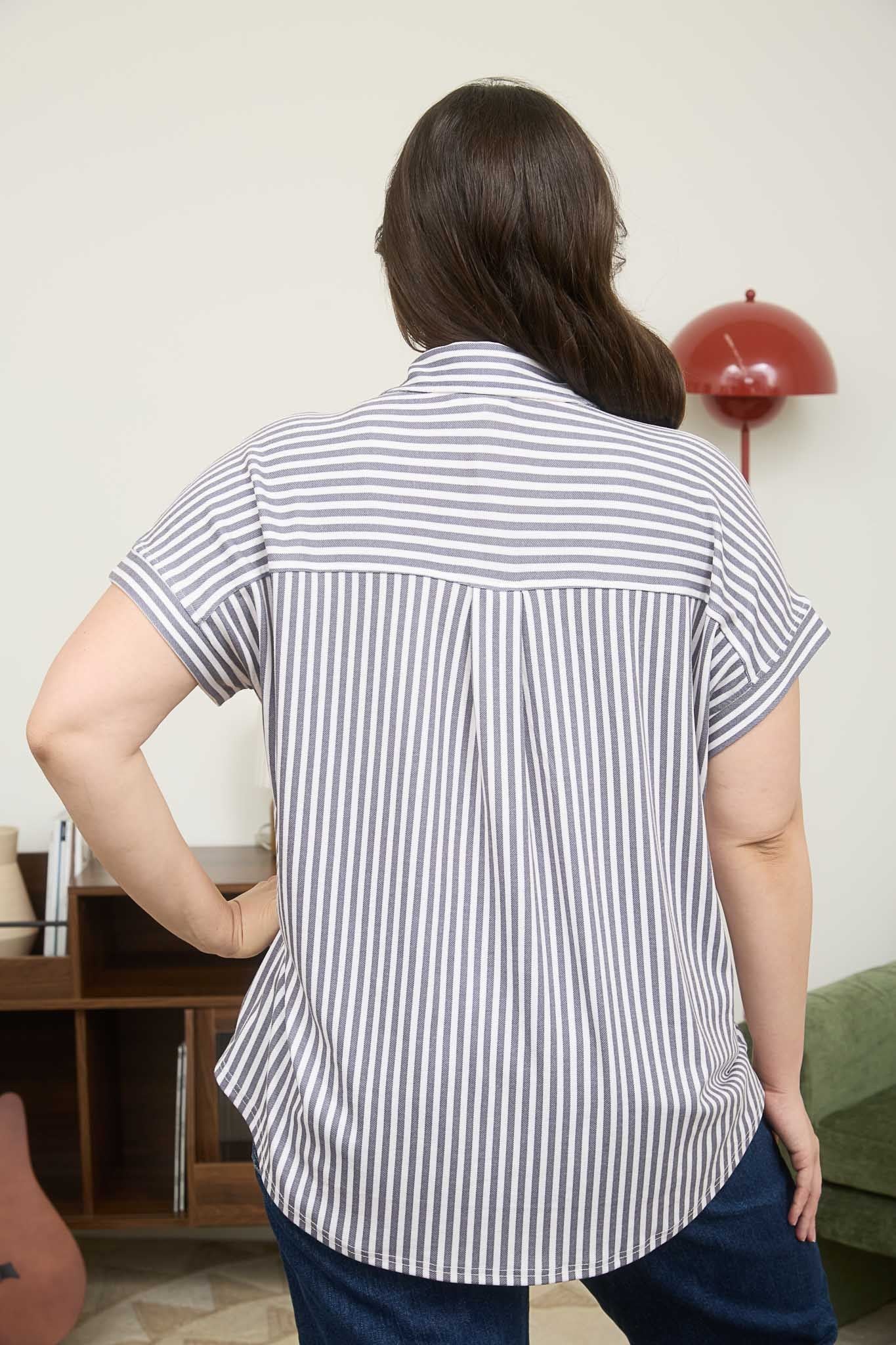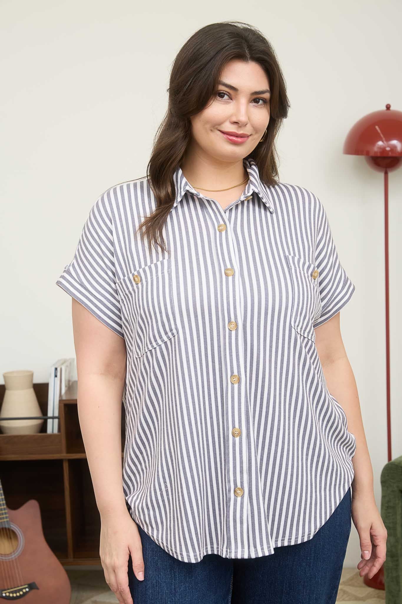 Stay cool and confident in the PLUS: Up To You Top, a playful stripe collared short sleeve button-down that moves with you thanks to its comfy stretch fabric. Perfect for layering or wearing solo, it adds a fun twist to your everyday style with crisp lines and a flattering fit.