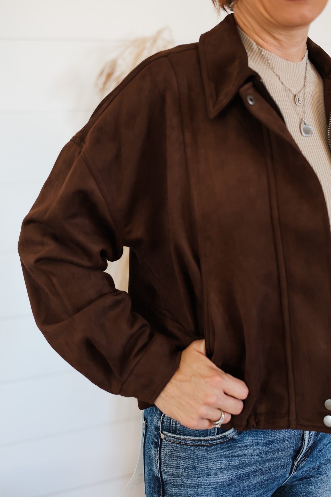 The Popular Vote Jacket is your new go-to layer for effortless style. Crafted from buttery-soft suede with a stretchy blend, this collared zip-up moves with you all day long. The elastic hem keeps everything in place, while functional pockets add practical flair. Whether you're heading out for casual adventures or just vibing at home, this jacket delivers comfort without compromising on looks. It's the kind of piece that makes getting dressed actually fun.