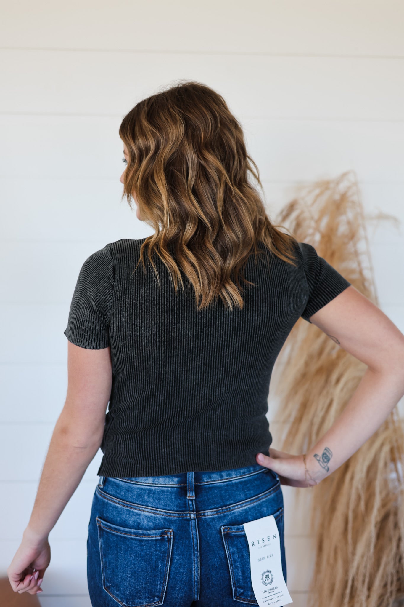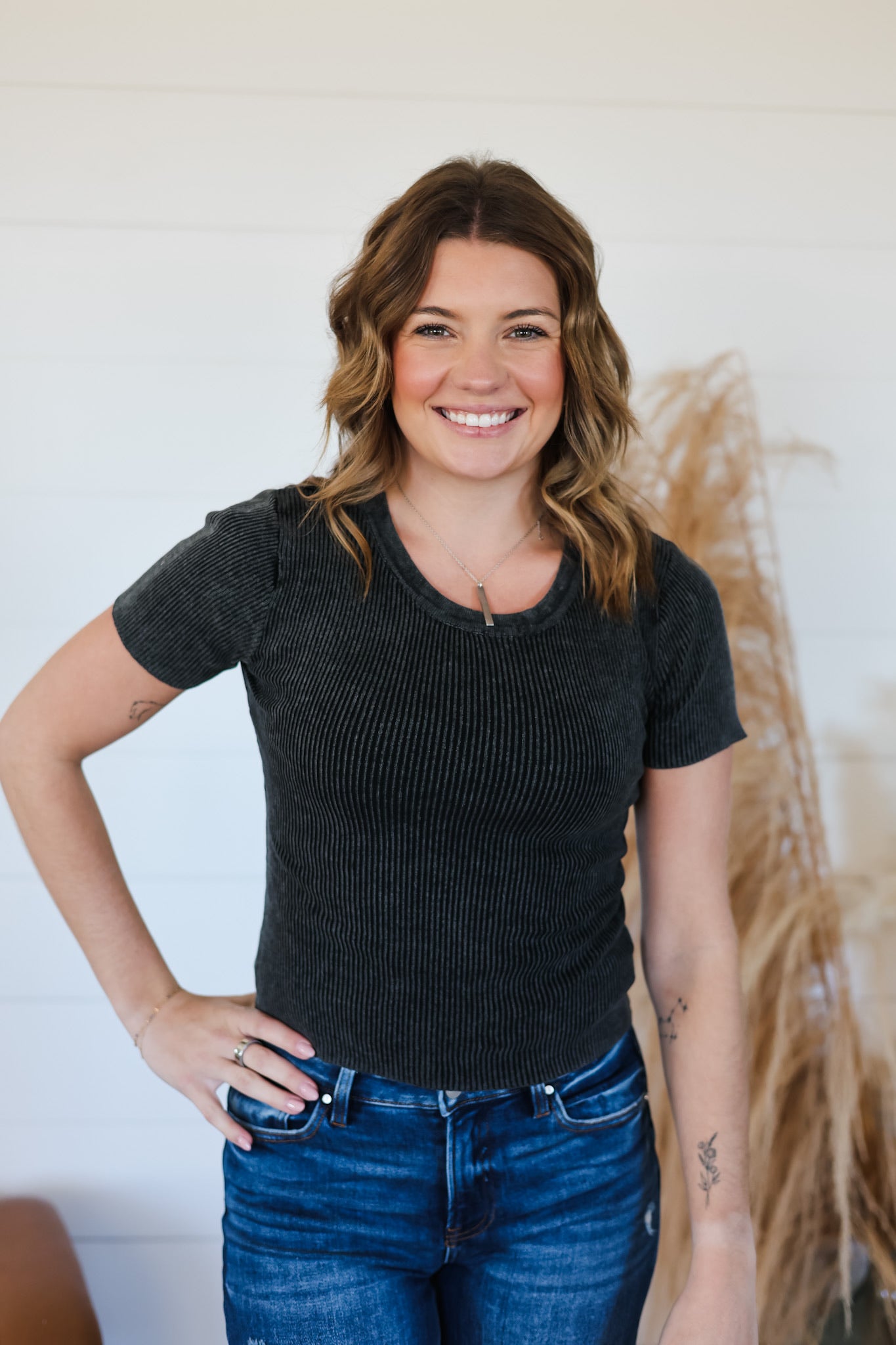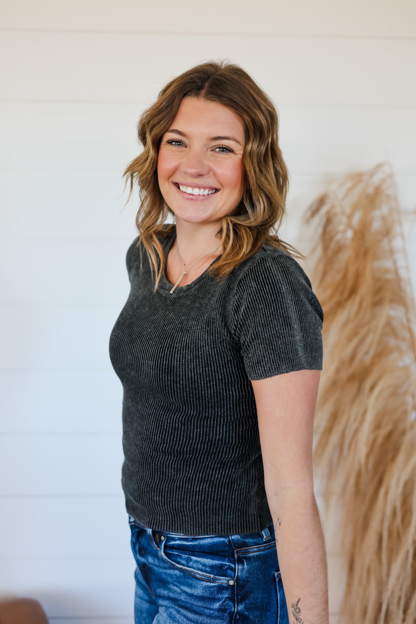 Slip into effortless style with this washed ribbed cropped tee that's as fun as it is flattering. The stretchy knit fabric moves with you, offering comfort that doesn't compromise on attitude. Perfect for layering or wearing solo, this short-sleeve essential brings a relaxed, modern vibe to any outfit. Promise yourself you'll reach for it again and again.
