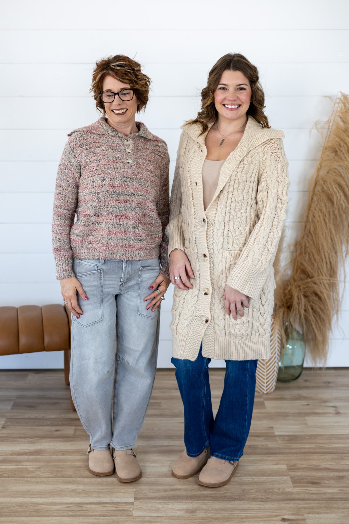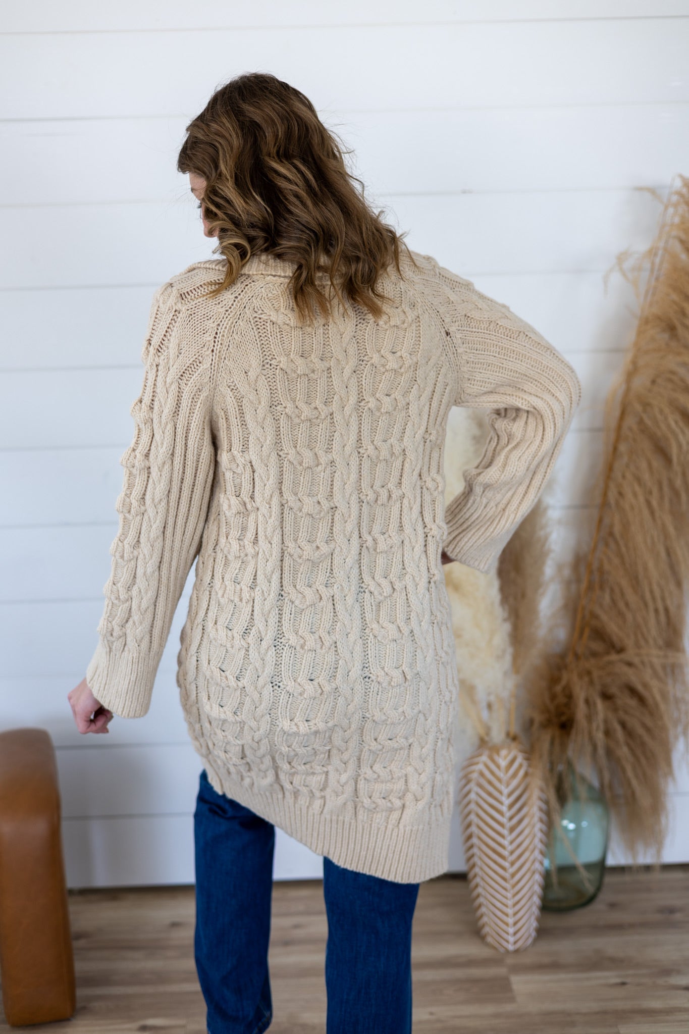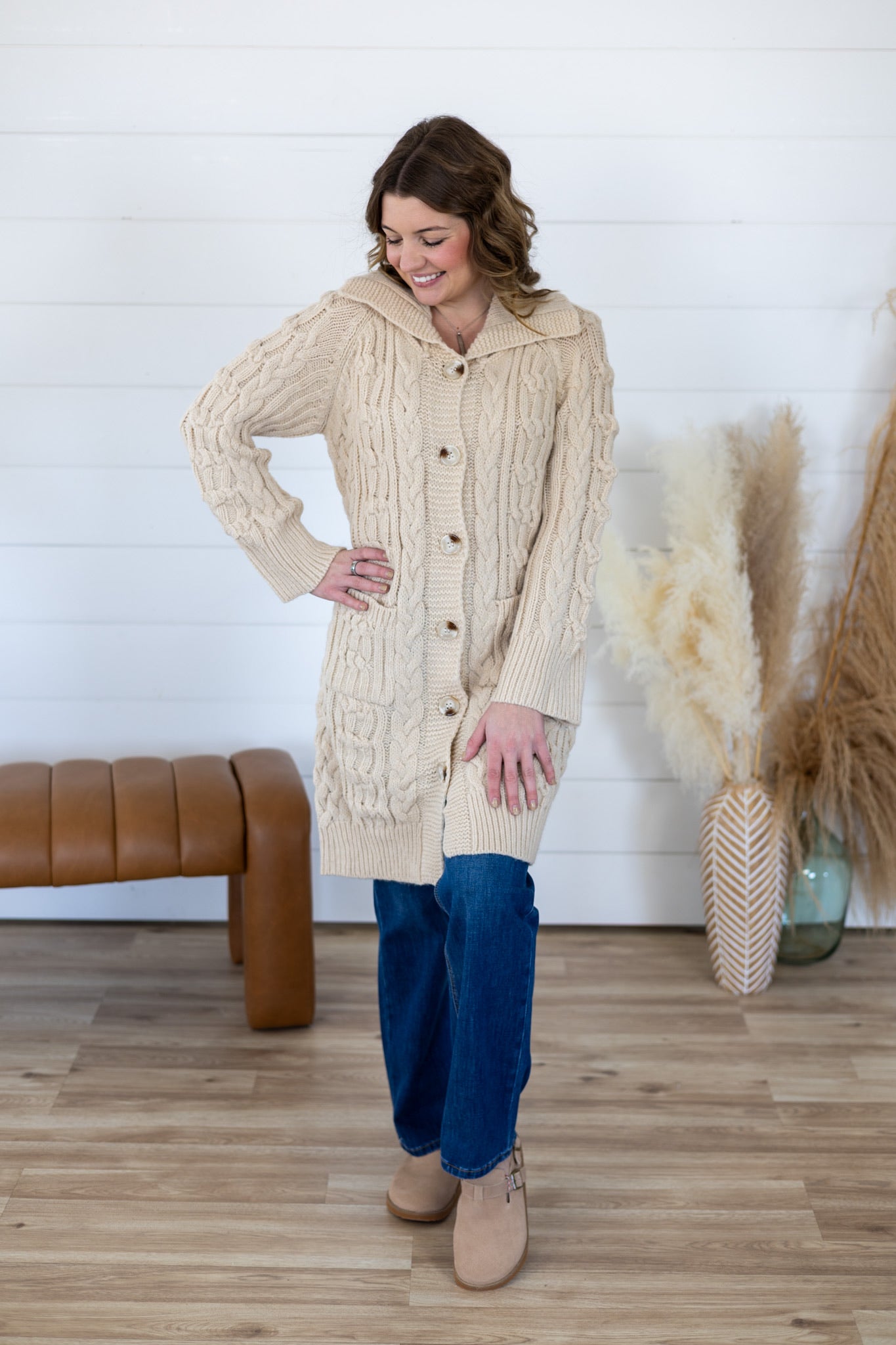 Layer up with our Quit Playing Games Cardigan—a cozy cable knit sweater that means business in the best way possible. Featuring classic button-down styling and textured knit details, this versatile piece transitions seamlessly from casual weekends to polished office vibes. Perfect for throwing over your favorite tee or dress, it's the wardrobe essential that works as hard as you do. Soft, structured, and undeniably chic.