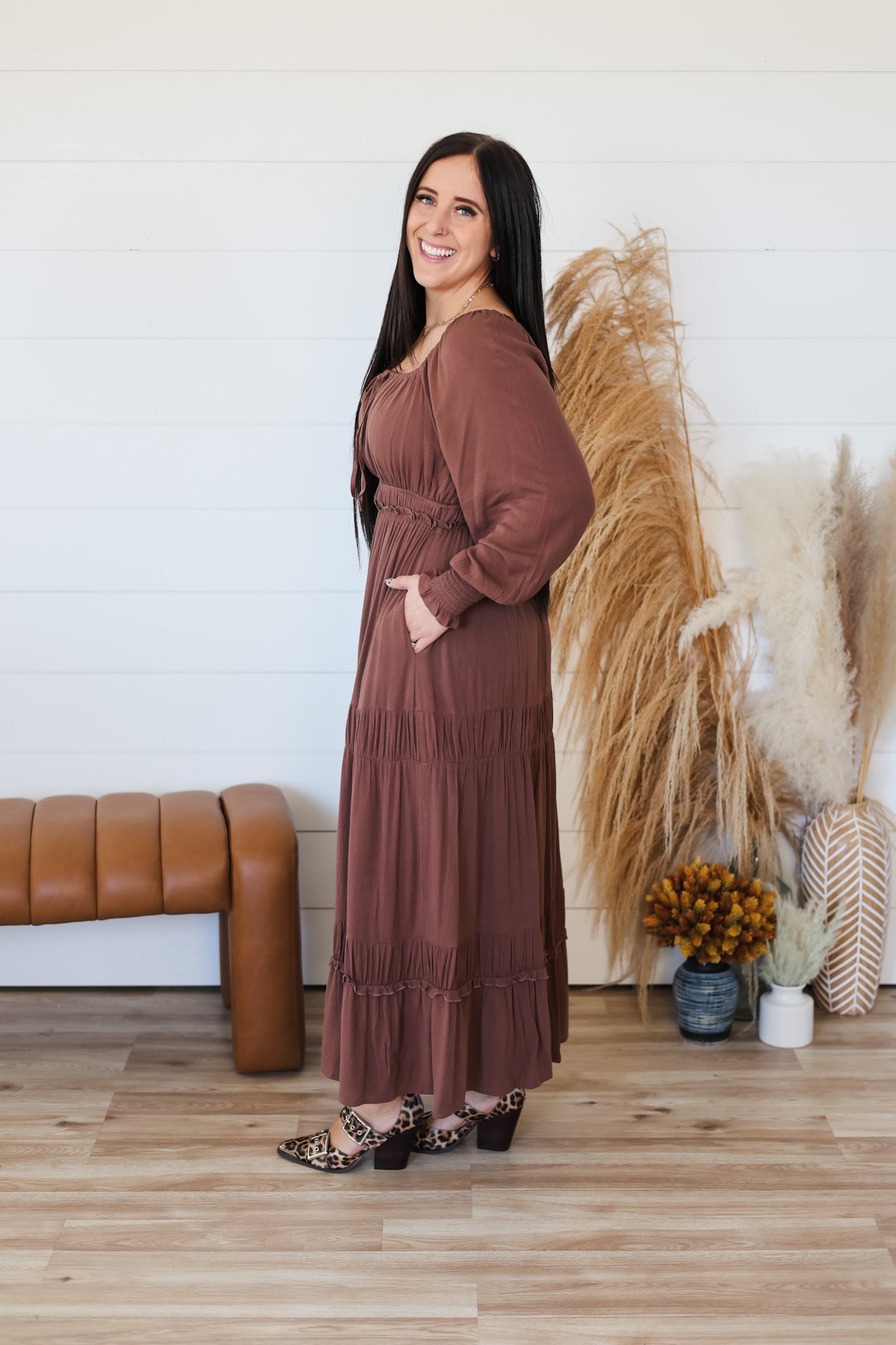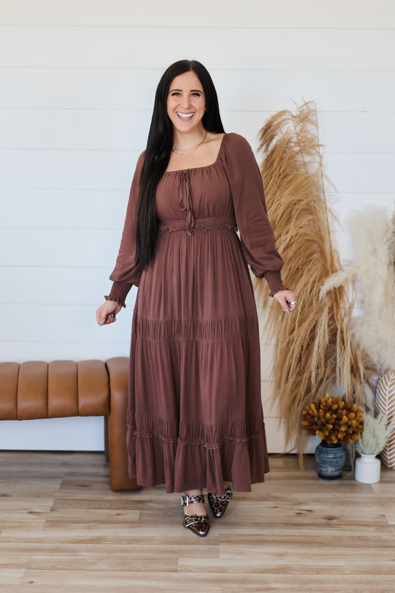 Step into sunshine with the Ready To Start Dress, a playful smocked tiered maxi that moves with you. Its gathered bodice offers stretch and comfort, while the flowing tiers create a whimsical silhouette perfect for twirling through your day. Light and breezy, this dress brings effortless charm to any occasion—whether you're brunching with friends or chasing the breeze on a weekend getaway.