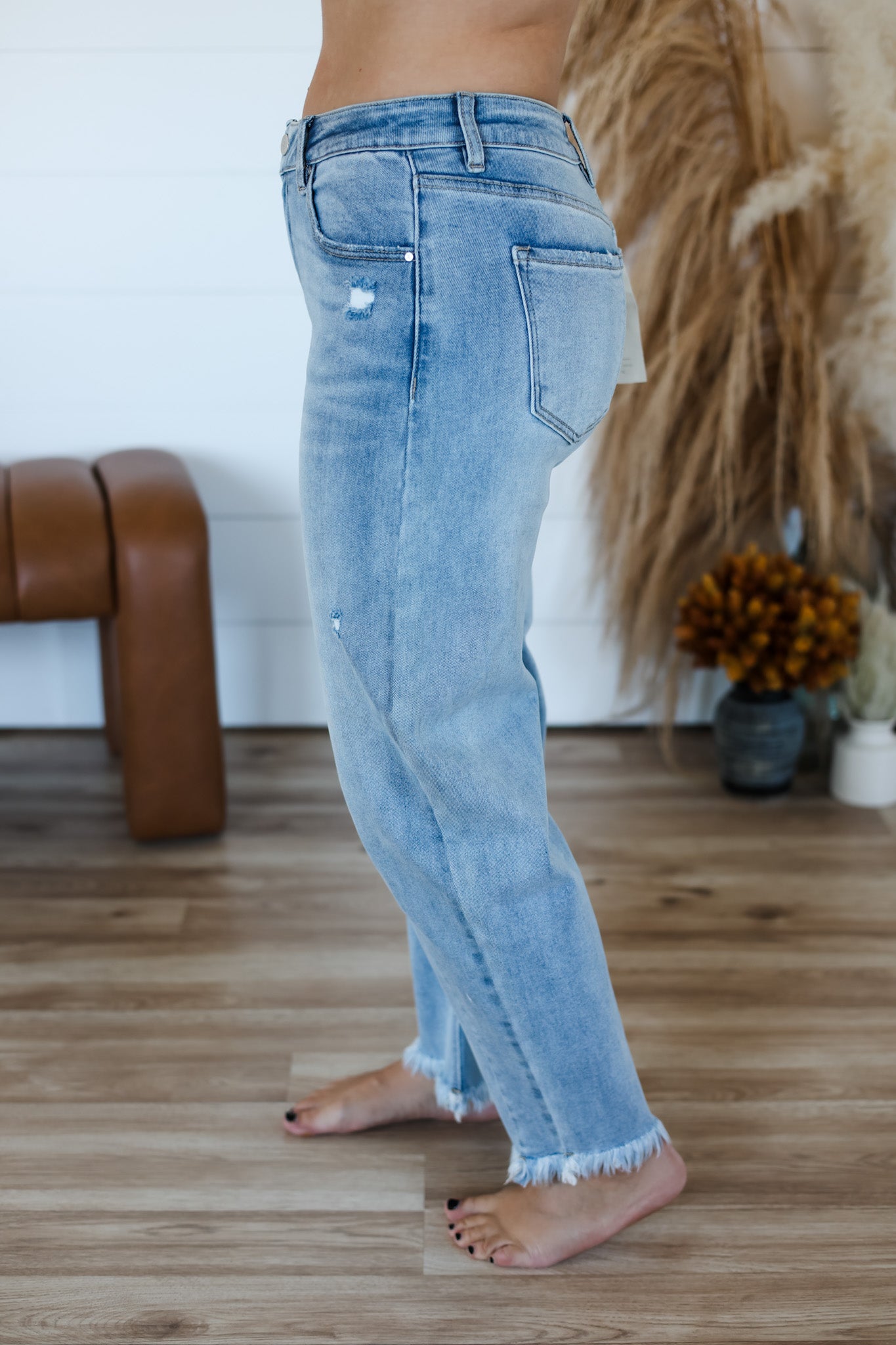 Step into comfort and style with the Risen: Get It Done Denim. These mid-rise cropped barrel jeans boast super stretchy fabric that moves with you all day long. Eye-catching fun seam details add a unique twist, while the raw hem finishes off the look with a relaxed, cool vibe. Perfect for those who want comfort without sacrificing style!