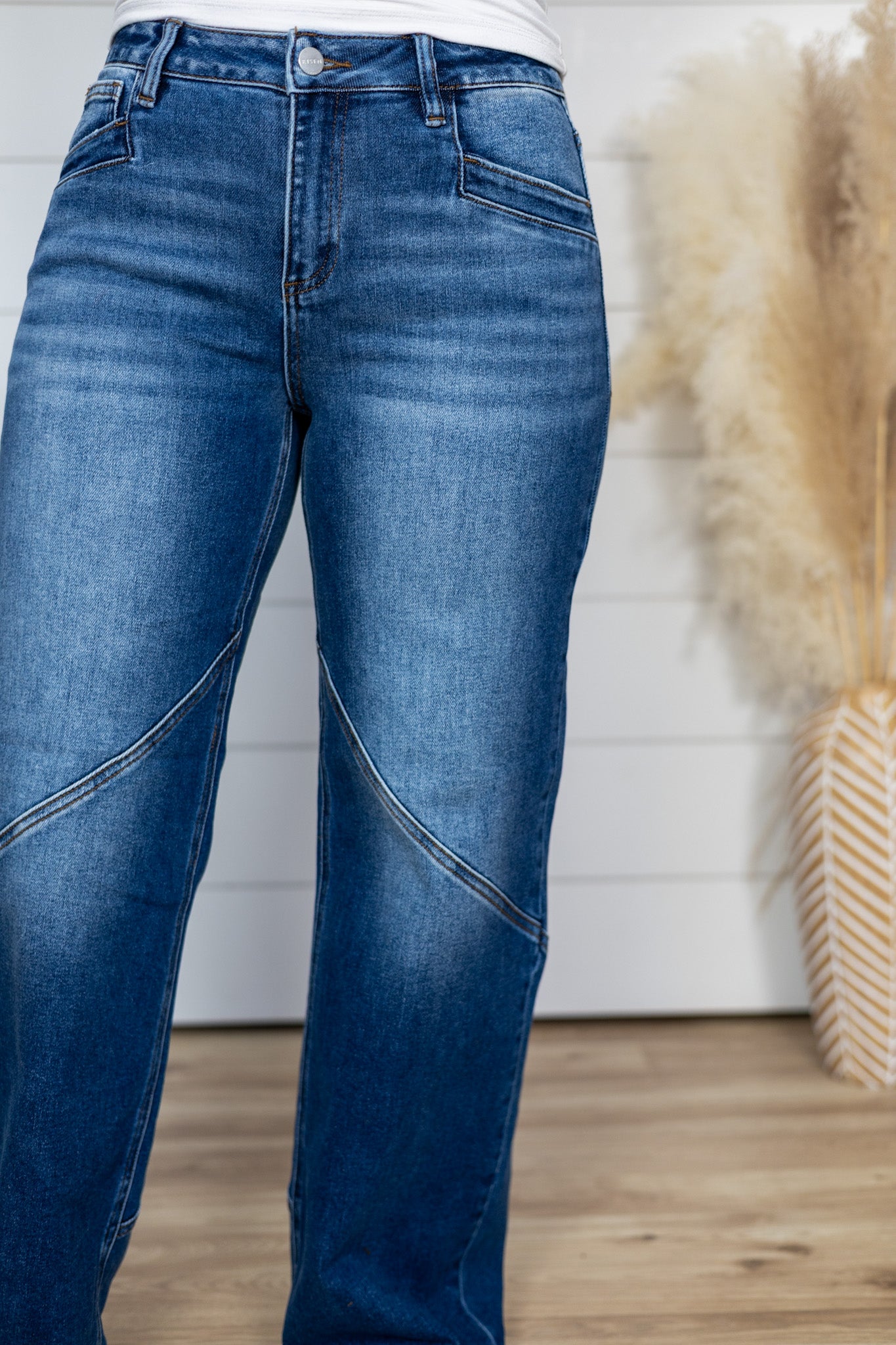 Embrace that effortless vibe with these slouchy wide-leg jeans that let you move freely without sacrificing style. The dark wash keeps things cool and versatile, while distinctive front and back seam details add visual interest and a modern edge. Designed for all-day comfort, these jeans are your new go-to for looking put-together while feeling completely relaxed. Perfect for pairing with everything from oversized tees to fitted tops—because sometimes the best outfit is one that feels as good as it looks.