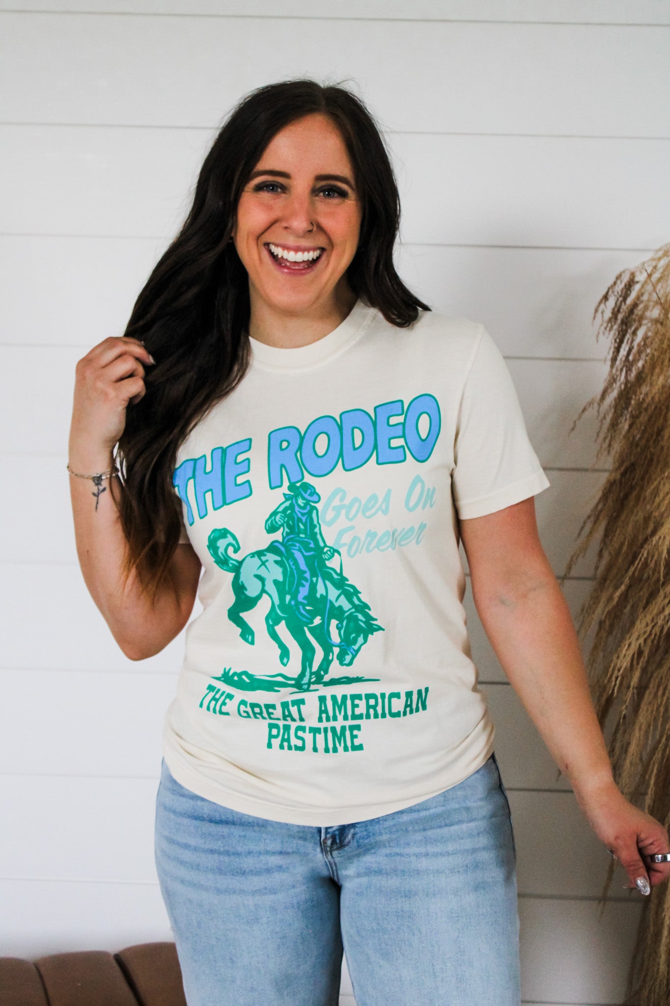 This top is giving vintage Garth Brooks! this western royal blue t-shirt is the American pastime you need! style this for a summer concert and don't forget the Stetson!