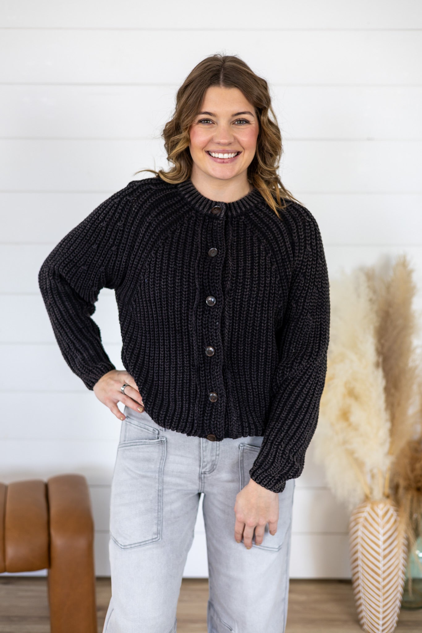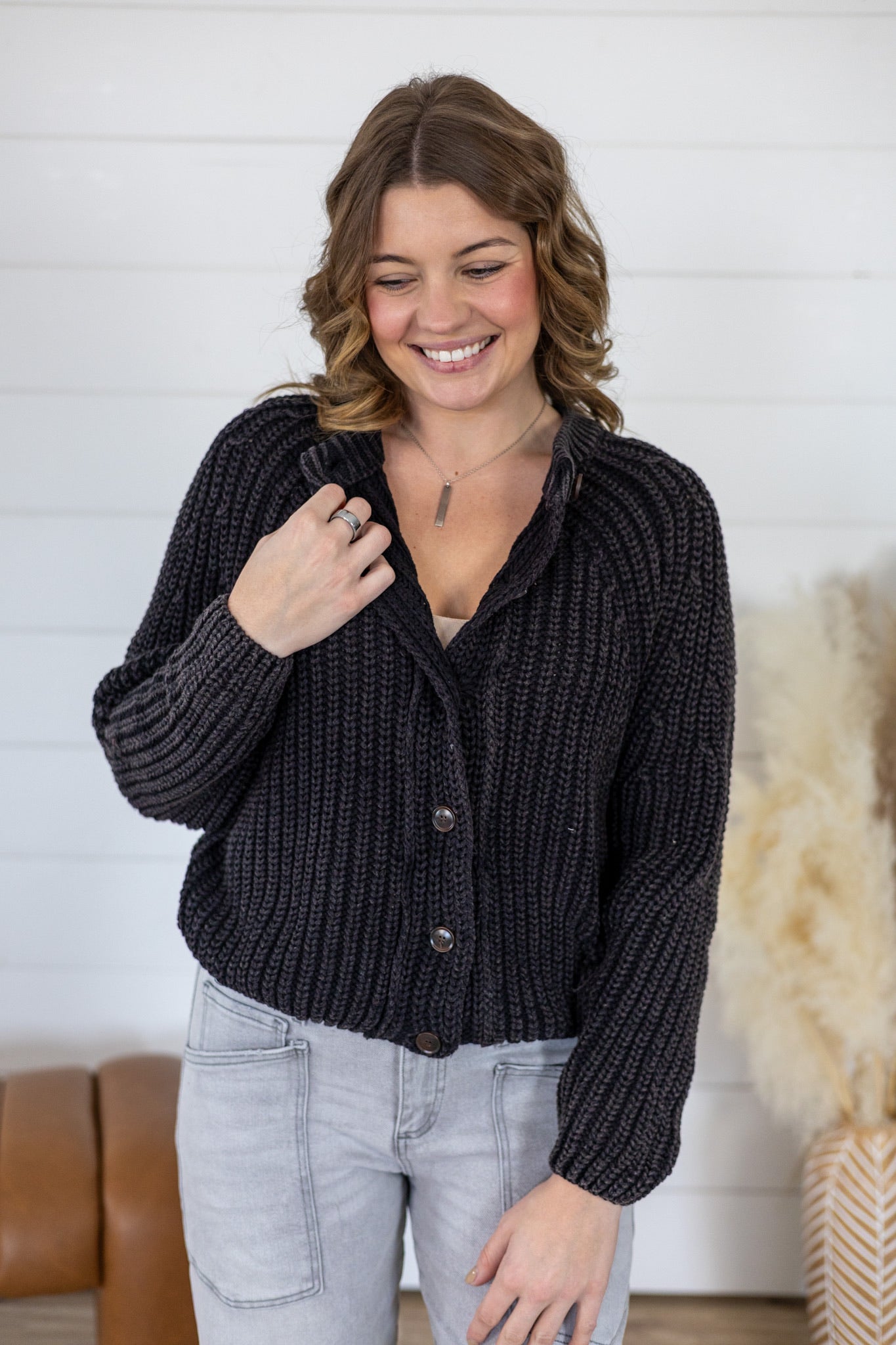 Throw on this oversized cardigan and let your vibe do the talking. Crafted from chunky, washed knit fabric, it's got that effortlessly cool slouchy fit that works whether you're layering over a tee or wearing solo. Button-down front makes it easy to style—cinch it, leave it open, or wear it completely unbuttoned for maximum laid-back energy. Perfect for those days when comfort and style should never have to choose sides.