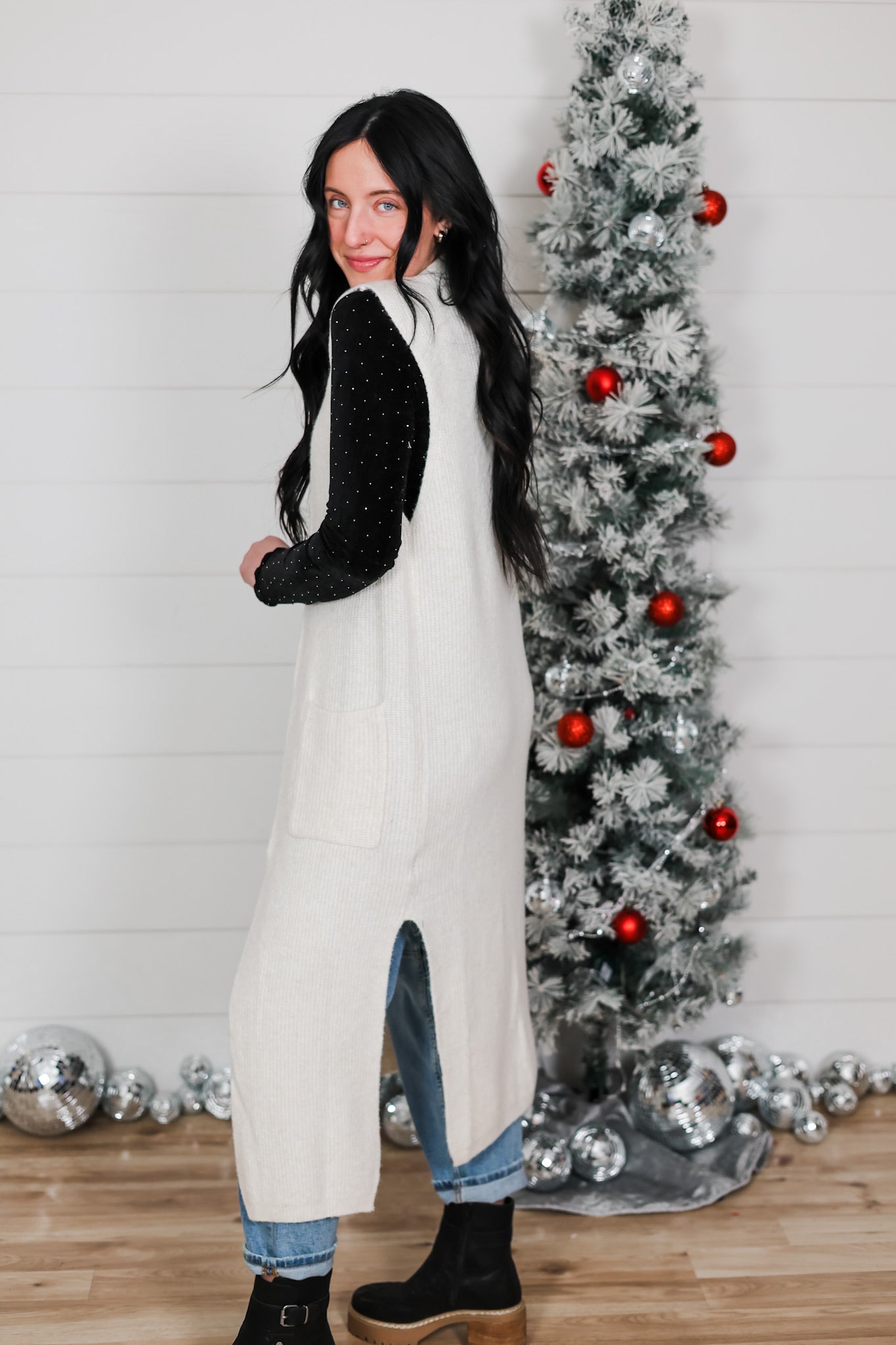 Wrap yourself in cozy charm with our Snowy Day Cardigan—the perfect layering piece for chilly seasons. This sweater vest features practical front pockets to keep your hands warm and stylish, plus flattering side slits that add movement and flair. Whether you're bundling up over a tee or layering under a jacket, this versatile vest brings effortless warmth and personality to any outfit. Your new go-to for those crisp, snowy days ahead!
