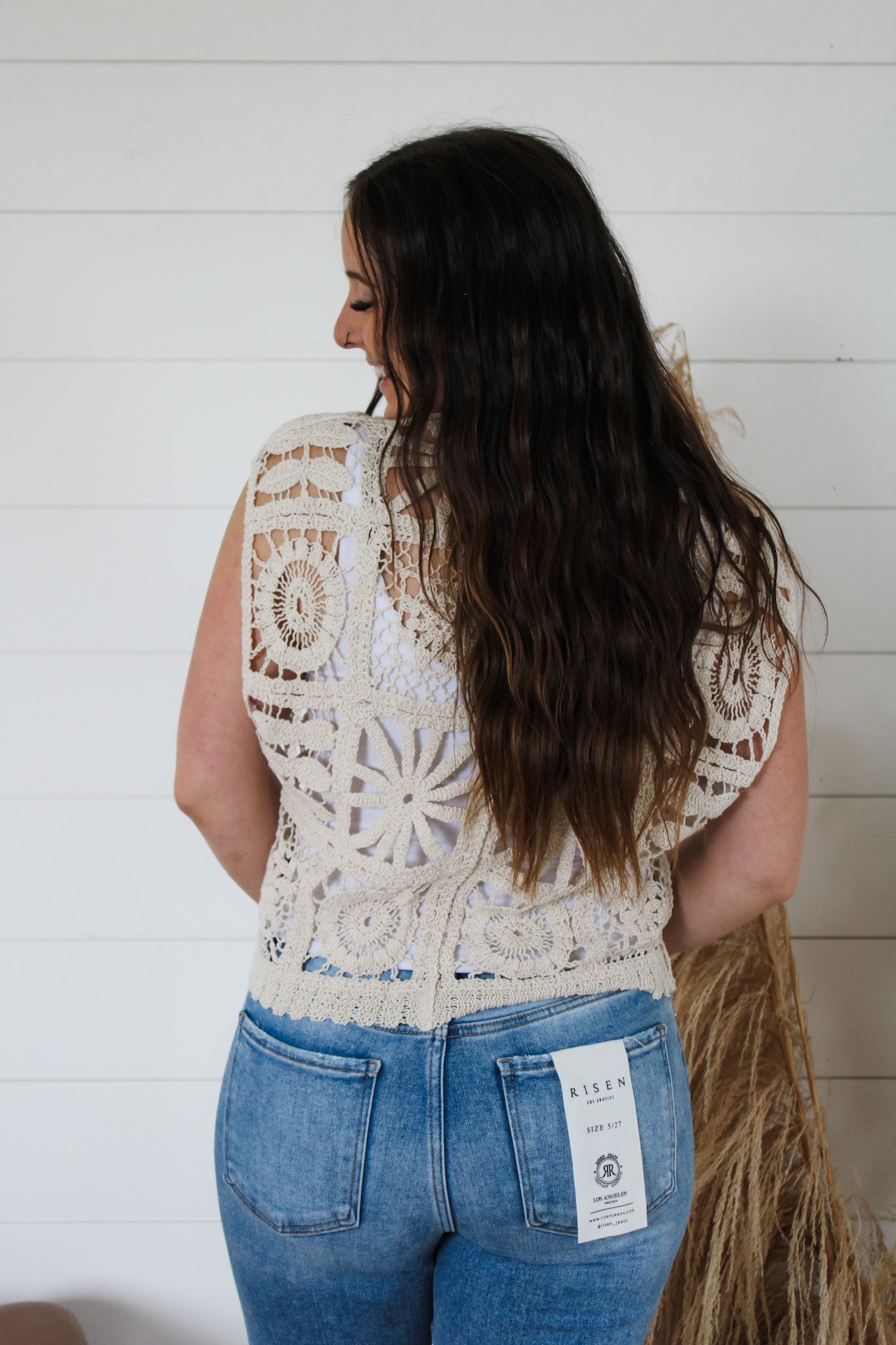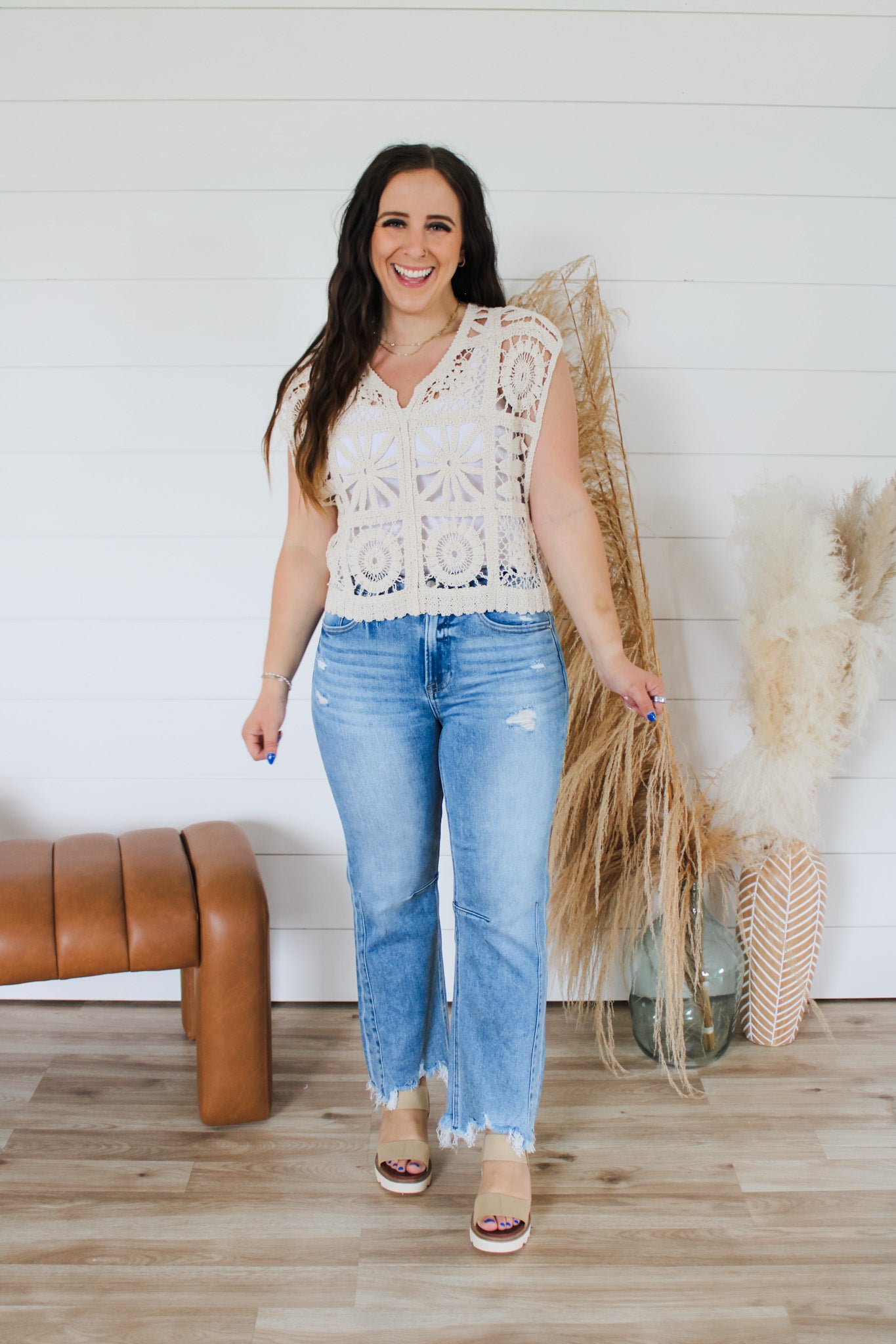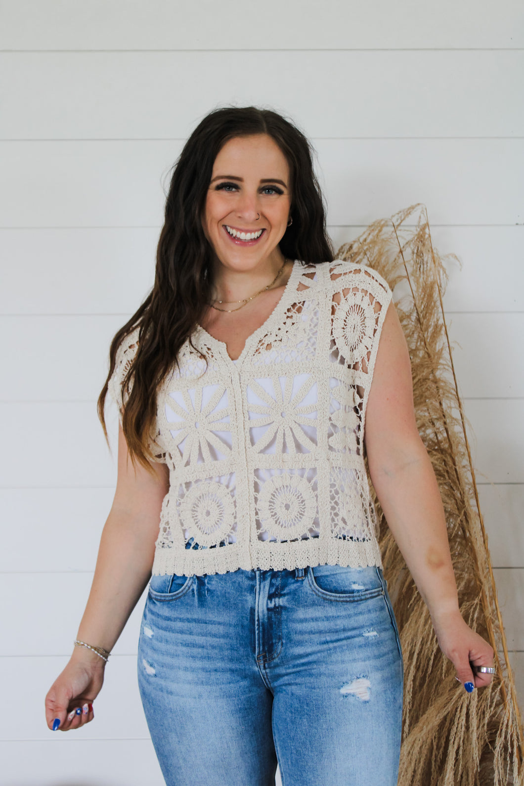Embrace breezy style with the Something New Top, a lightweight macrame vest featuring a flattering V-neck. Perfect for layering or wearing solo, this trendy piece adds a playful touch to any outfit while keeping you cool and comfortable all day long.