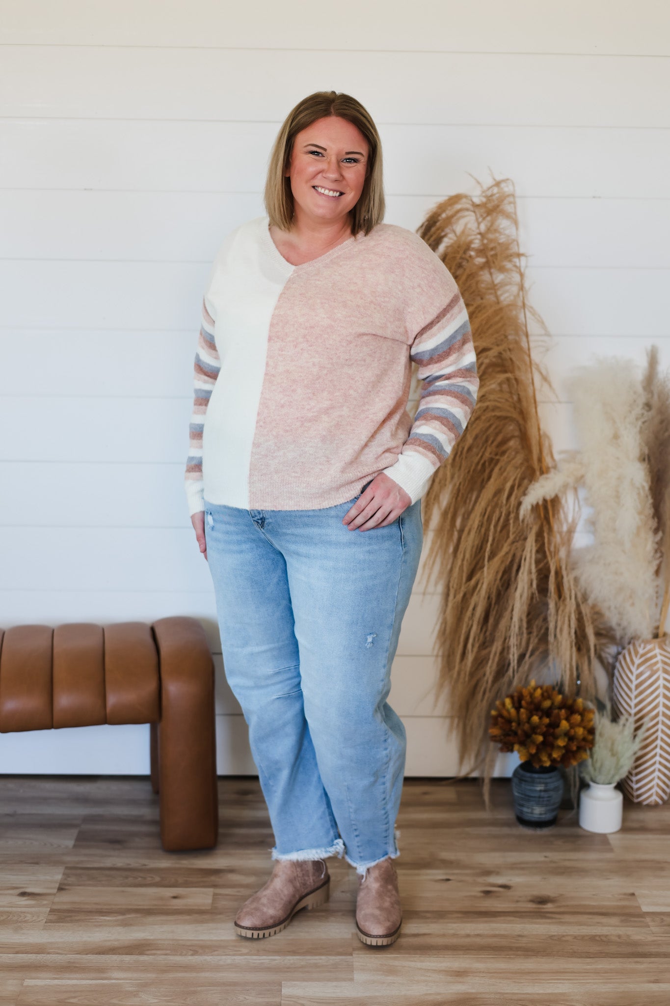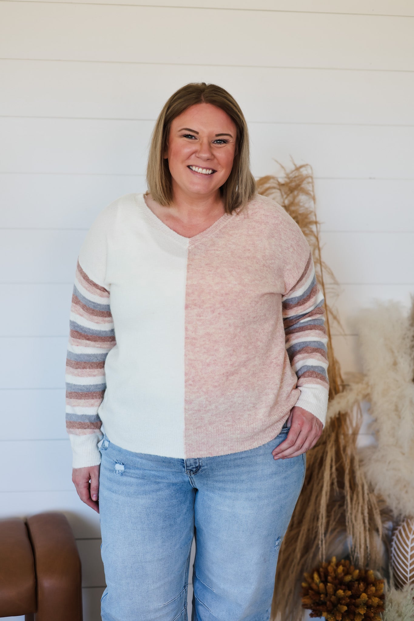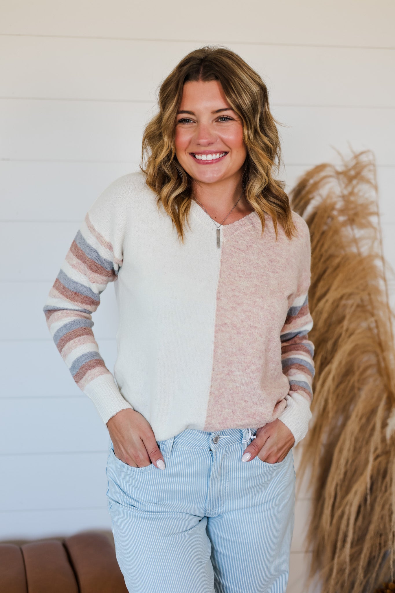 Brighten your wardrobe with the Speak Up Top, featuring playful multi-color stripes and bold color blocks. Its V-neck and long sleeves offer a cozy yet stylish fit, while the super soft fabric feels like a gentle hug all day long. Perfect for adding a splash of fun to any outfit!