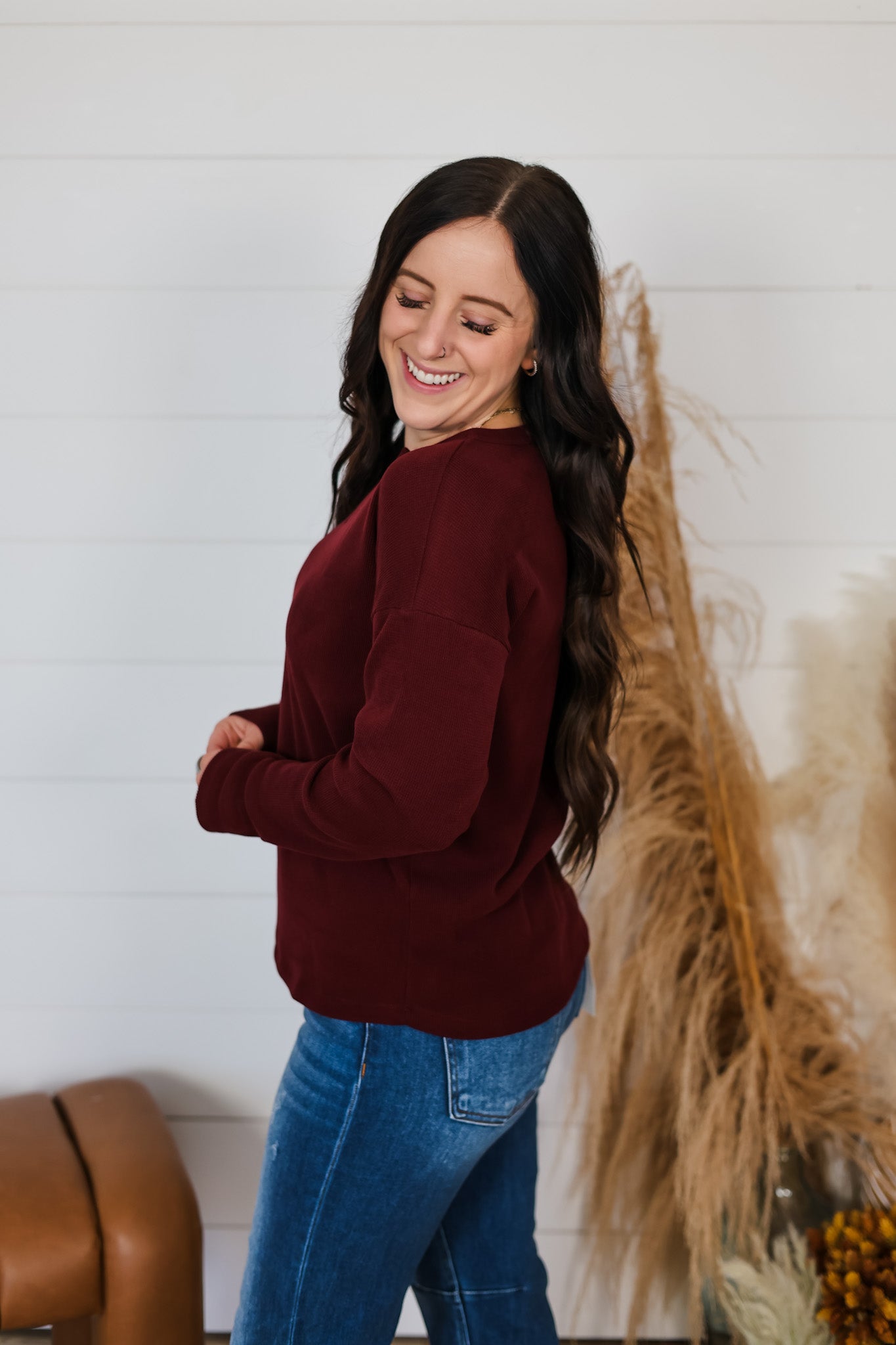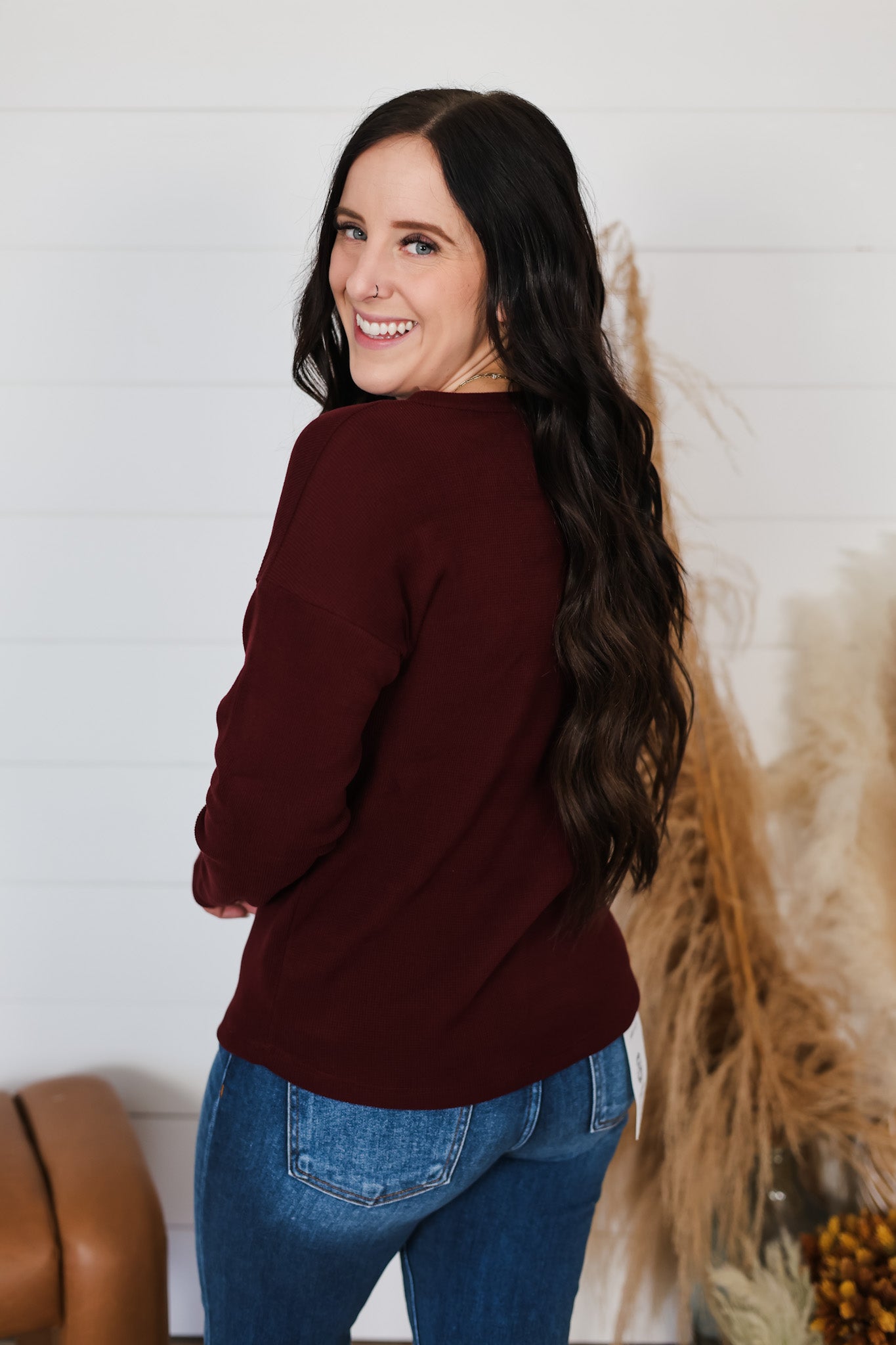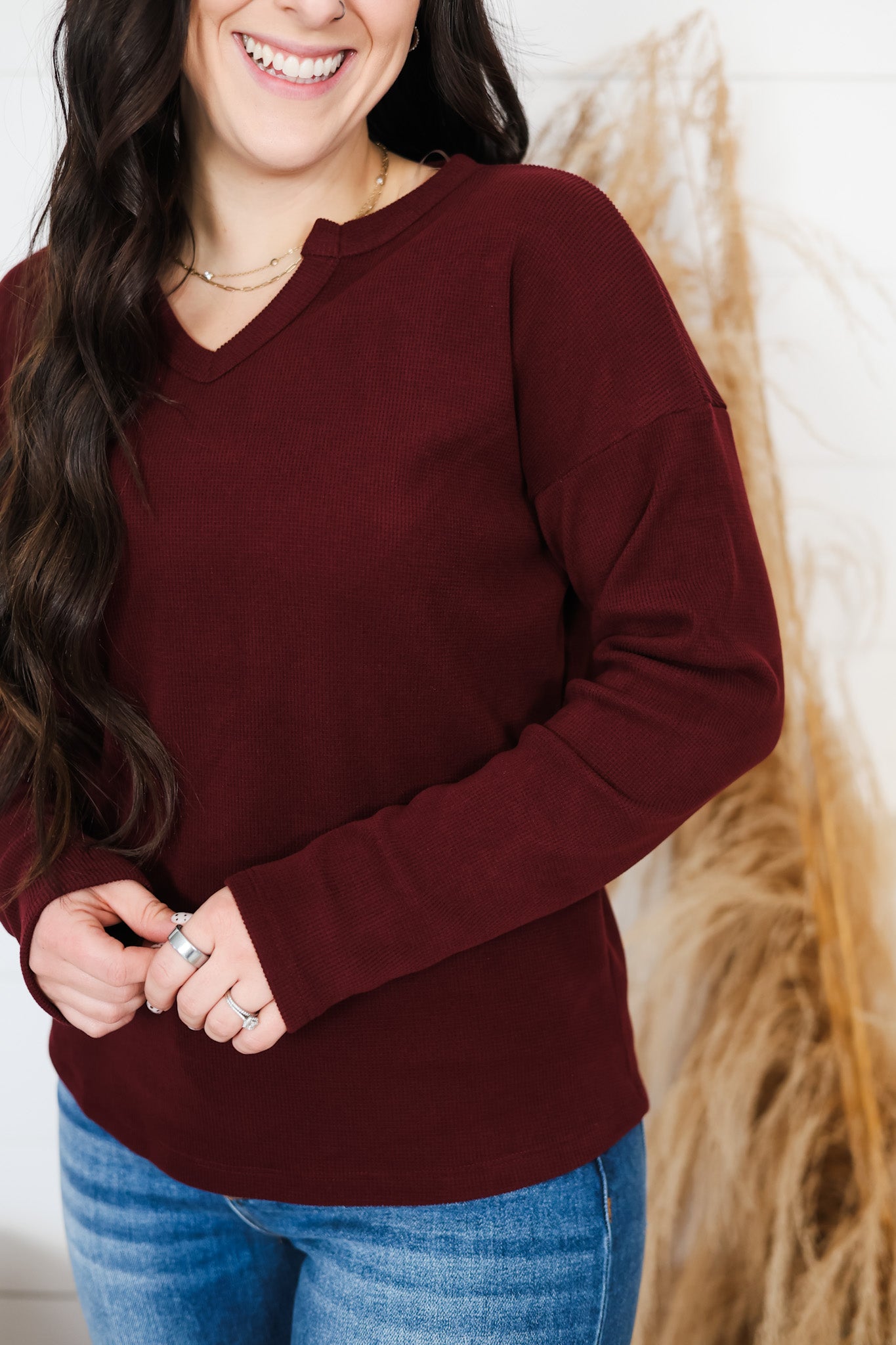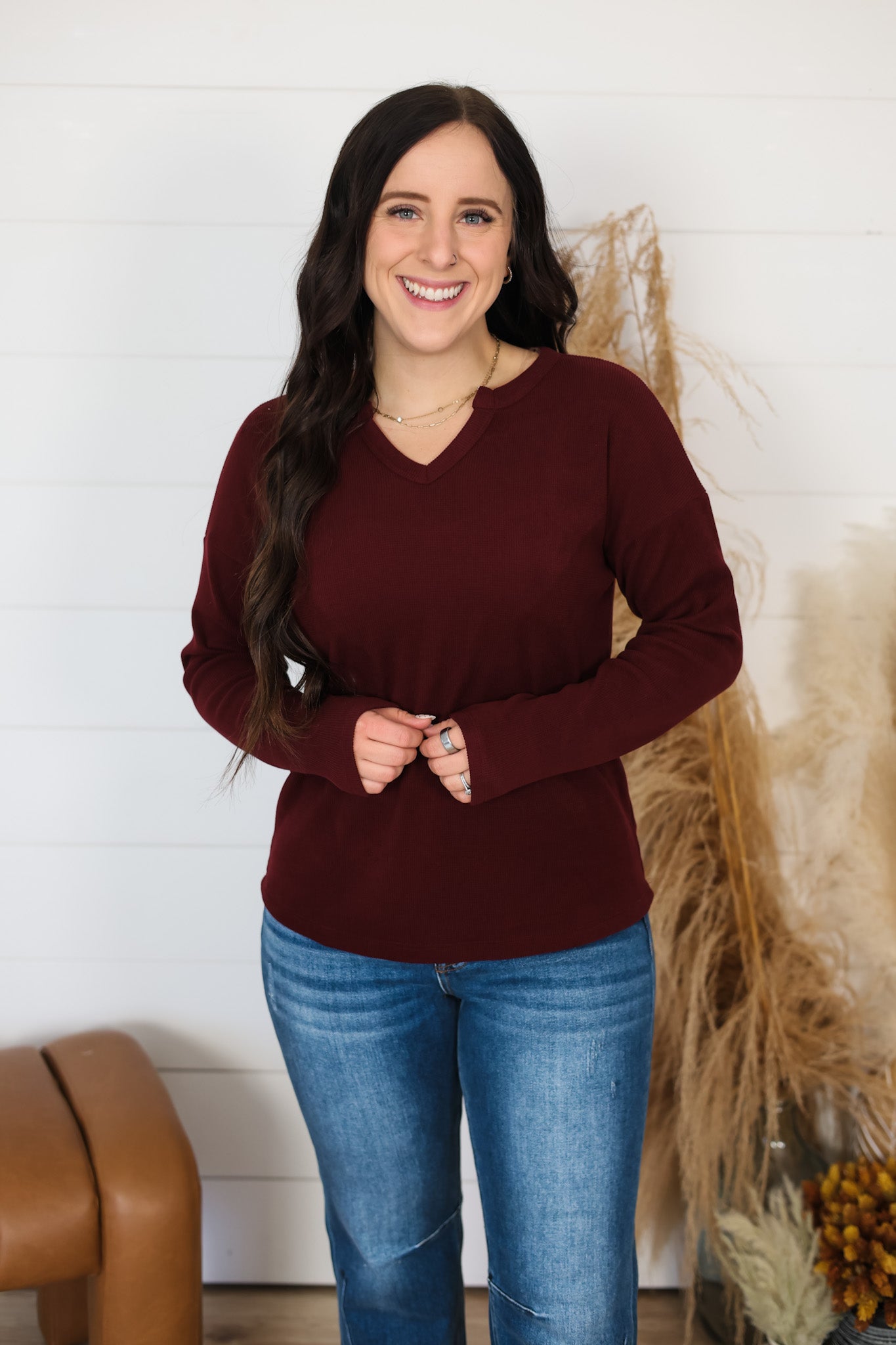 Slip into cozy comfort with the Stay Awhile Top, your new favorite layering piece. This brushed thermal features a flattering V-neckline and long sleeves perfect for chilly days, while built-in stretch keeps you moving freely. The soft, brushed fabric feels like a warm hug against your skin—ideal for lounging, running errands, or staying snug through the season. Simple, versatile, and oh-so-comfortable.