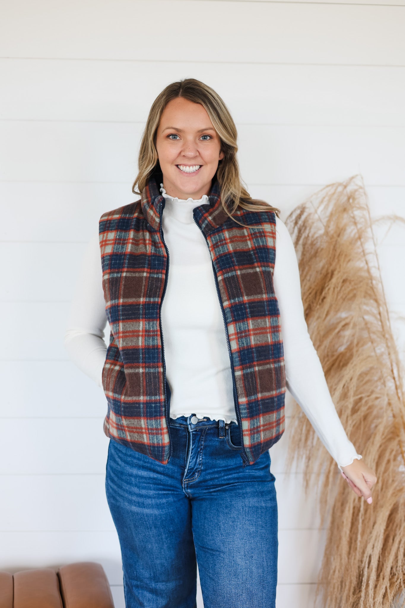 Stay cozy and stylish in the Take Your Turn Vest! This playful reversible vest features soft polar collar warmth, a zip-up front, and convenient side pockets. Flip between classic plaid and rich corduroy to match your mood or outfit effortlessly. Perfect for layering on crisp days, it’s your go-to for keeps-you-comfy, looks-good vibes wherever you roam.