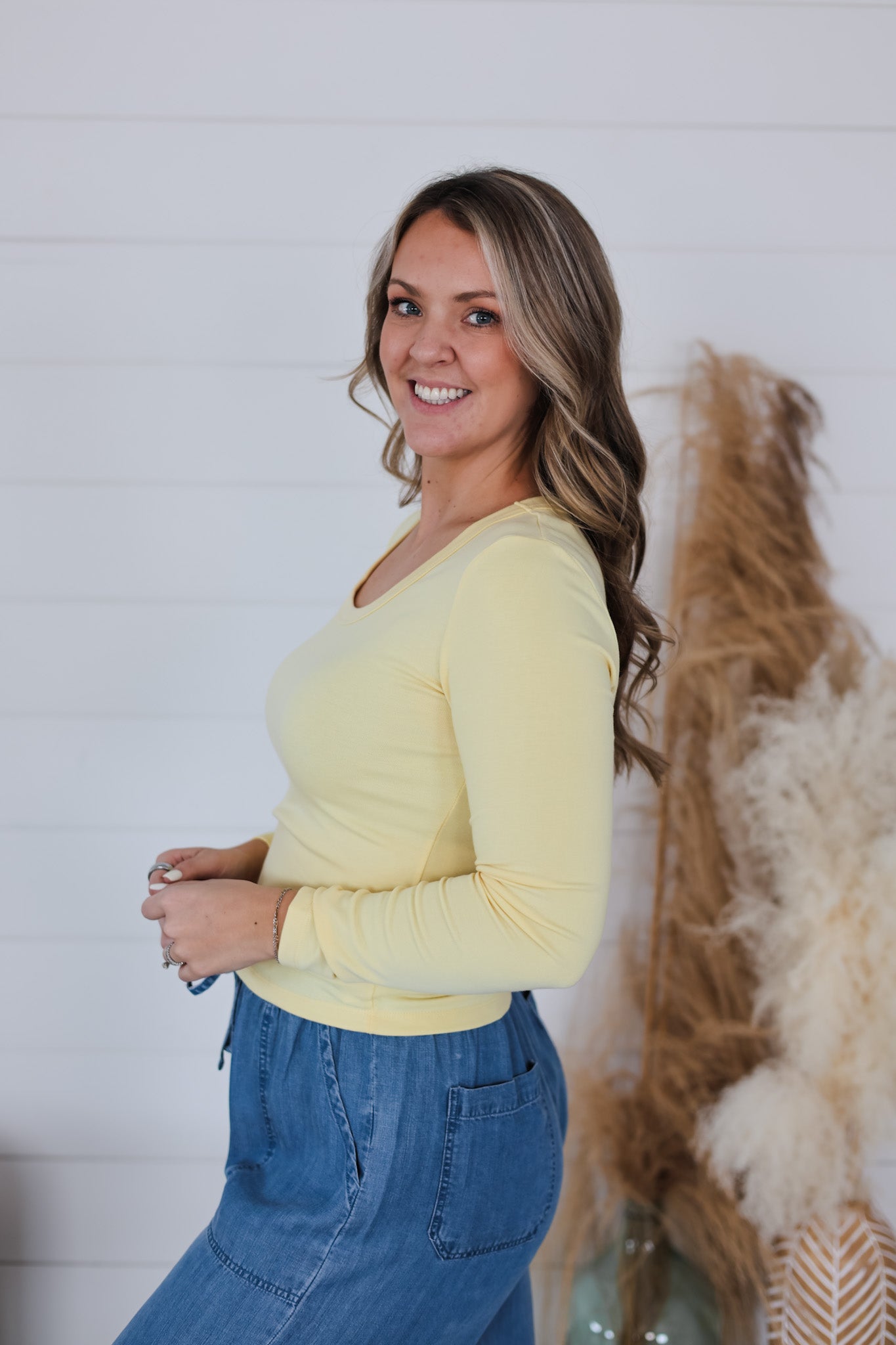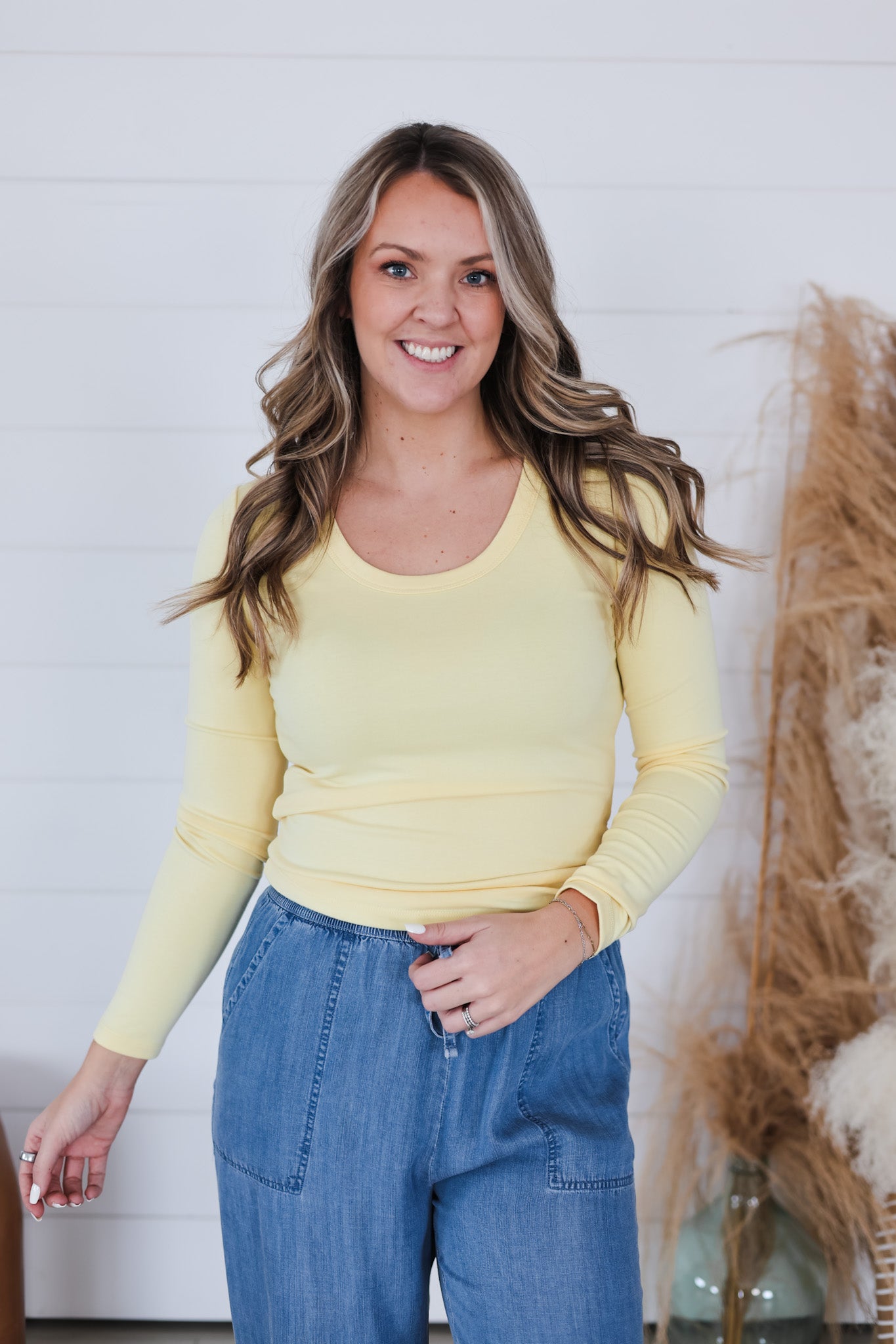 That's So You Top is your new go-to layering essential! This scoop neck long sleeve tee strikes the perfect balance between casual comfort and versatile style. Whether you're pairing it under slip dresses, oversized blazers, or wearing it solo, this basic top does the heavy lifting in your wardrobe. Soft, flattering, and endlessly mixable—it's the foundation piece every outfit needs.