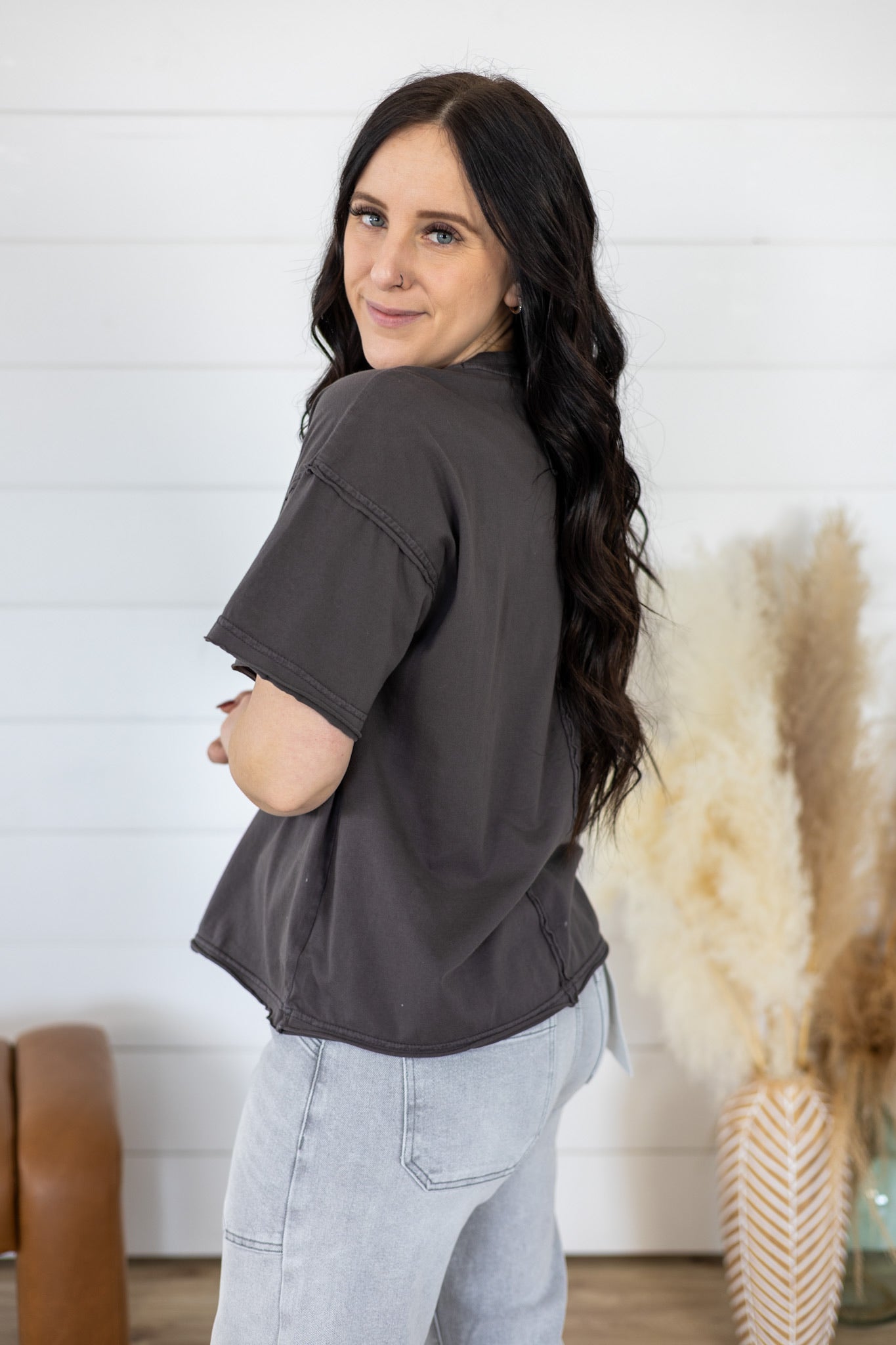 Turn heads with The Last One Top, made with pigment washed cotton for a unique look. Be the one to stand out in this quirky top, perfect for those who don't take themselves too seriously!