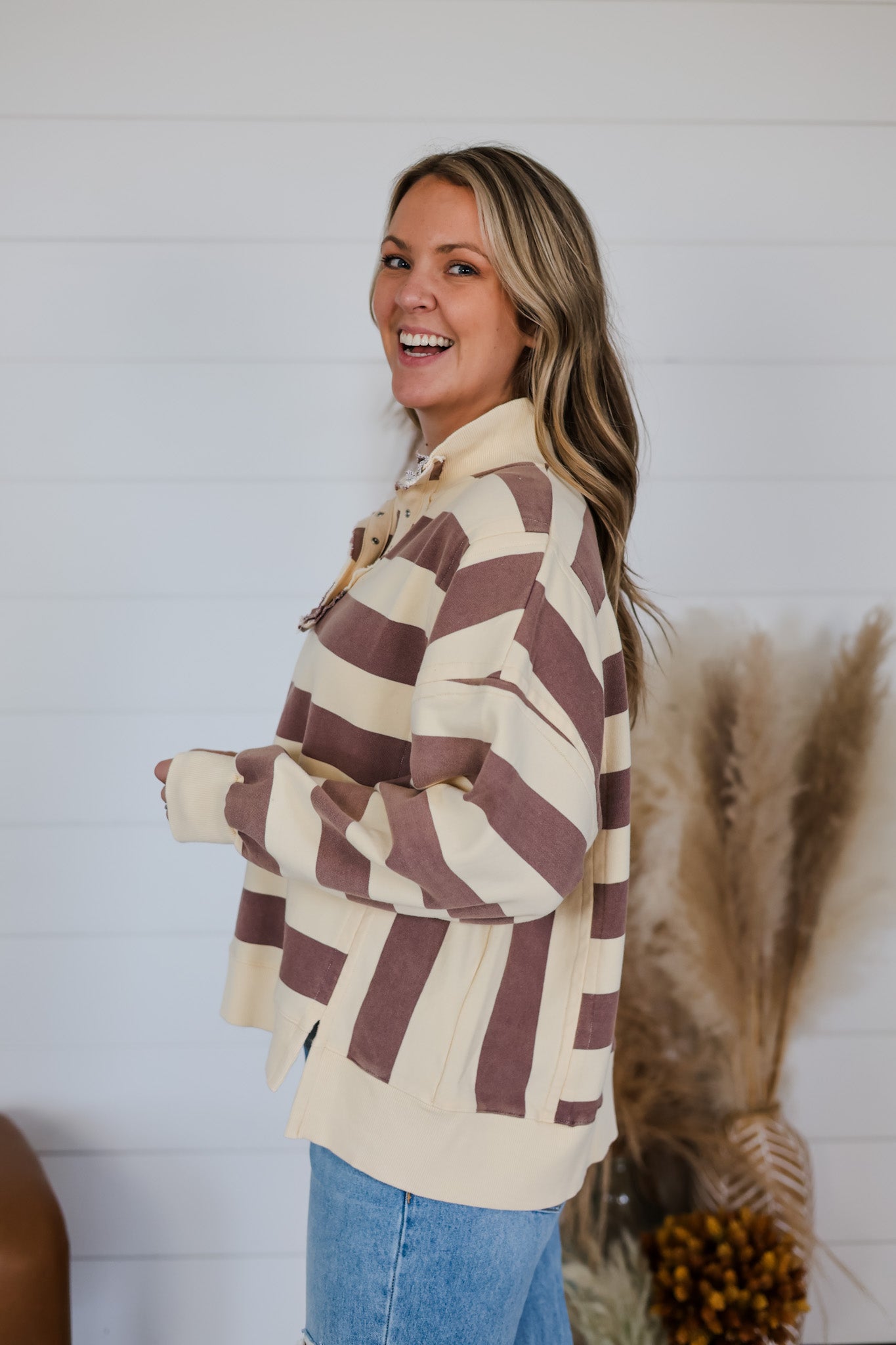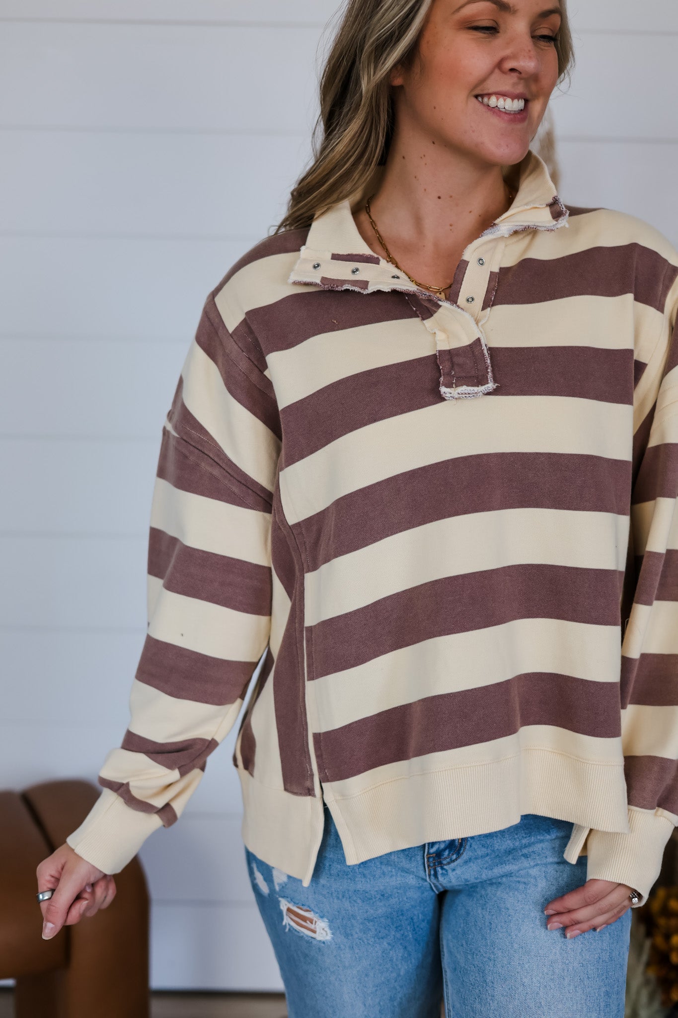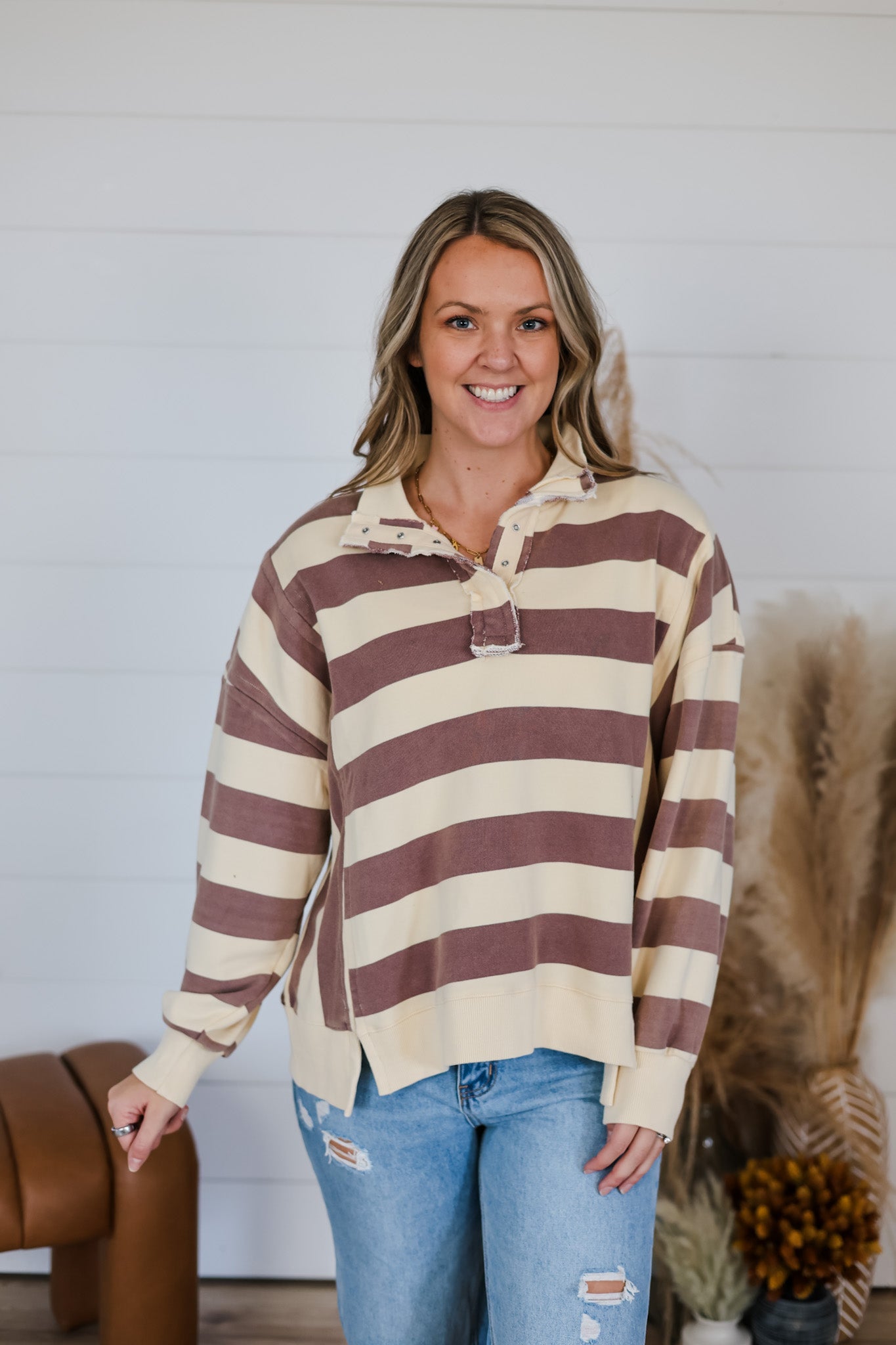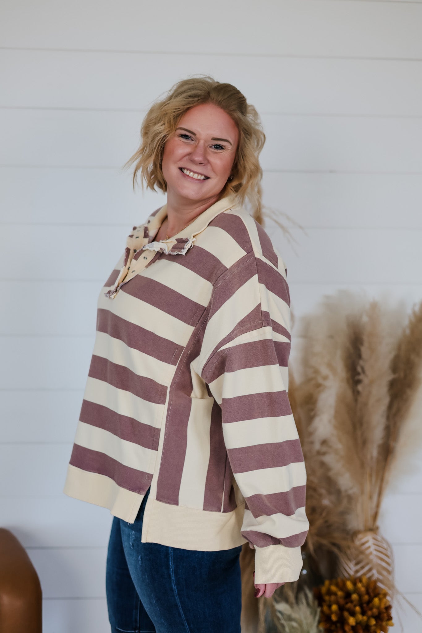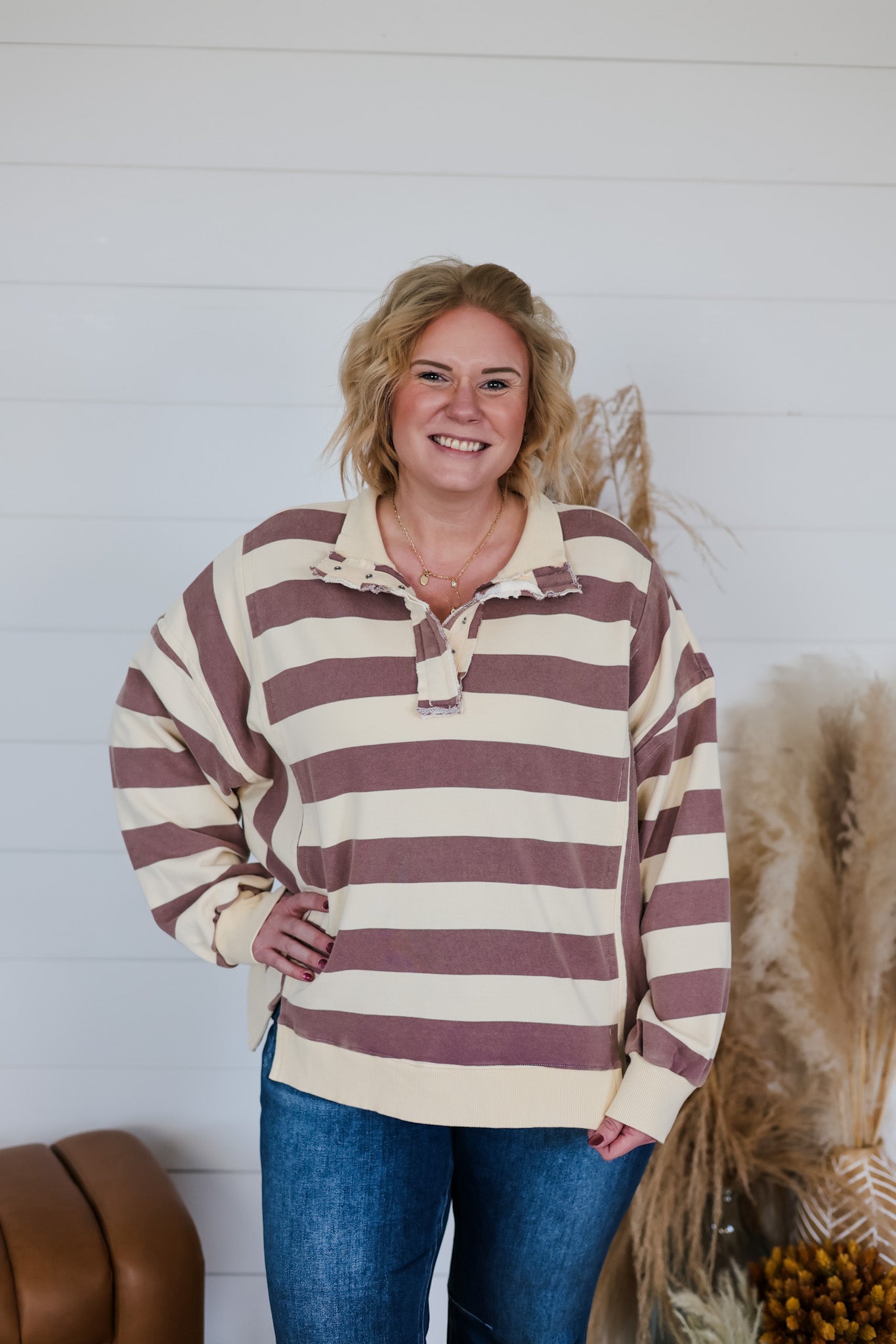 Get ready to cozy up in The Light In You Top, a playful twist on a classic rugby shirt. Featuring bold stripes and a mineral wash finish, this oversized long-sleeve top brings relaxed vibes and effortless style to your wardrobe. Perfect for layering or lounging, it’s designed to keep you comfy while adding a splash of fun to your everyday look.