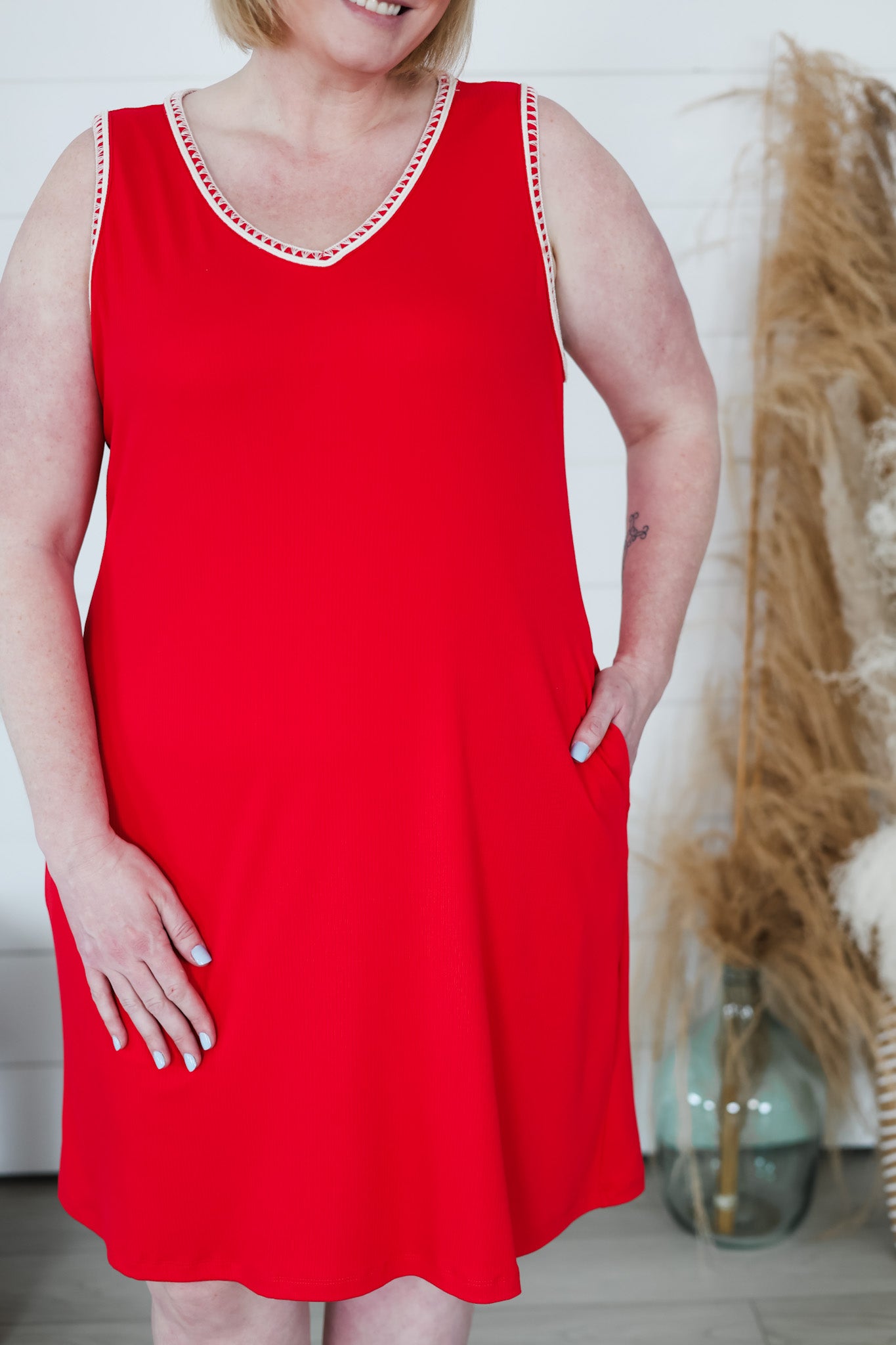 The Only One Dress is your new go-to for effortless style. This stretchy ribbed dress features a fun V-neck design that adds personality to any outfit, while hidden pockets keep your essentials close. With a generous cut that moves with you, it's perfect for everything from casual outings to relaxed weekends. Comfortable, practical, and undeniably chic—because you deserve a dress that does it all.