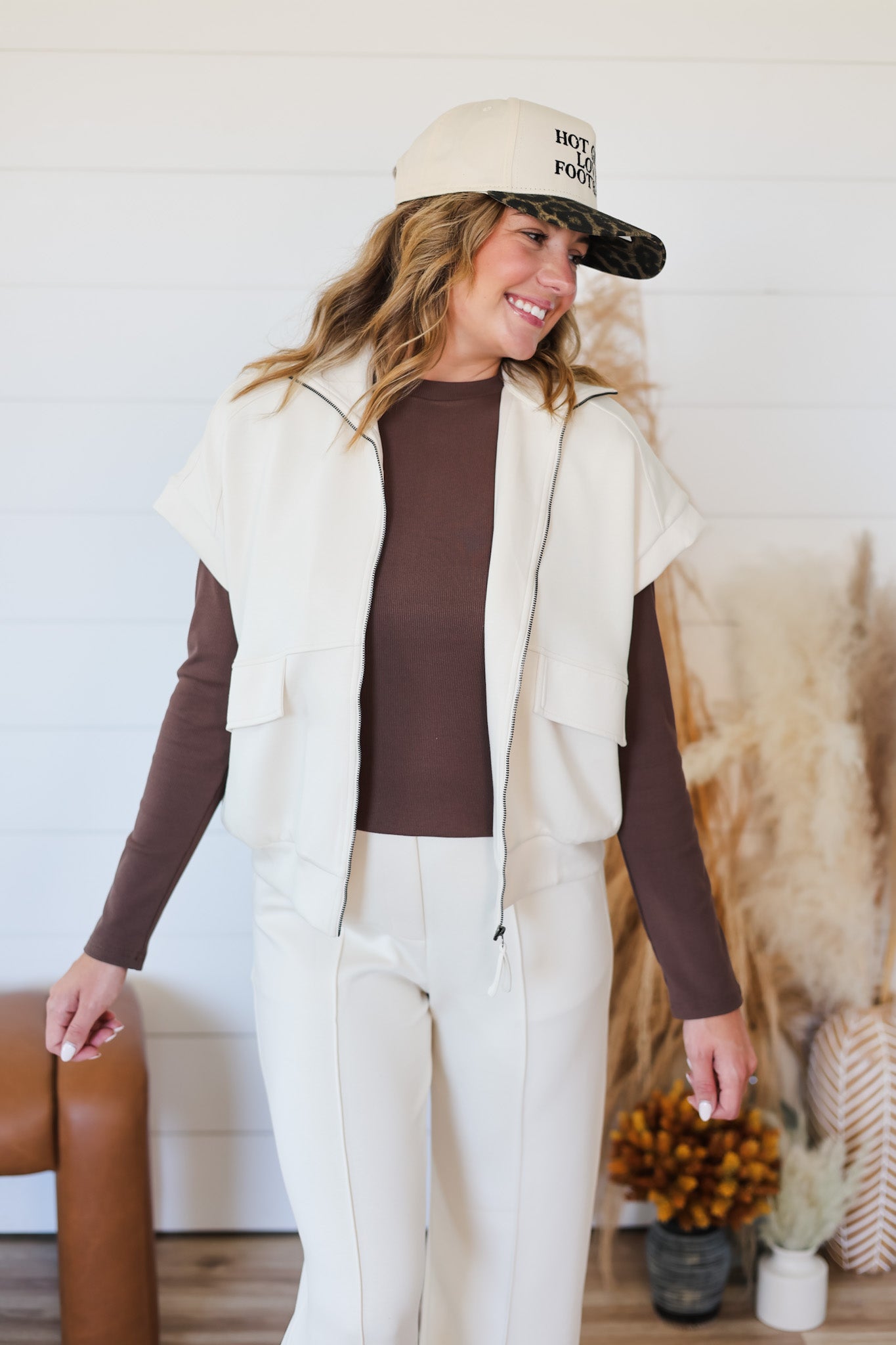 This cozy zip-up jacket wraps you in buttery soft brushed modal fabric, making comfort a stylish priority. The playful flap pocket and sleek pocket details add fun functionality to your look. With short sleeves perfect for layering, the Think It Through Top is ready to keep you comfy and cool all day long.