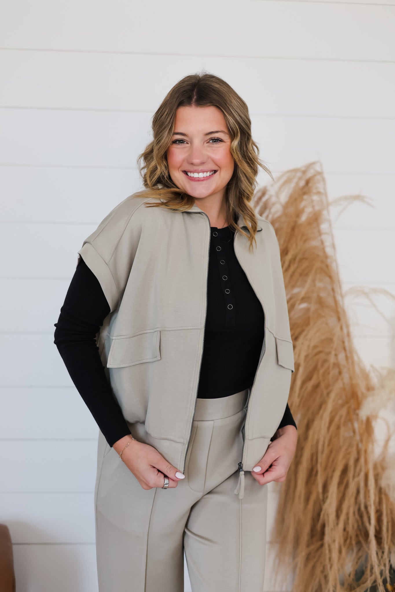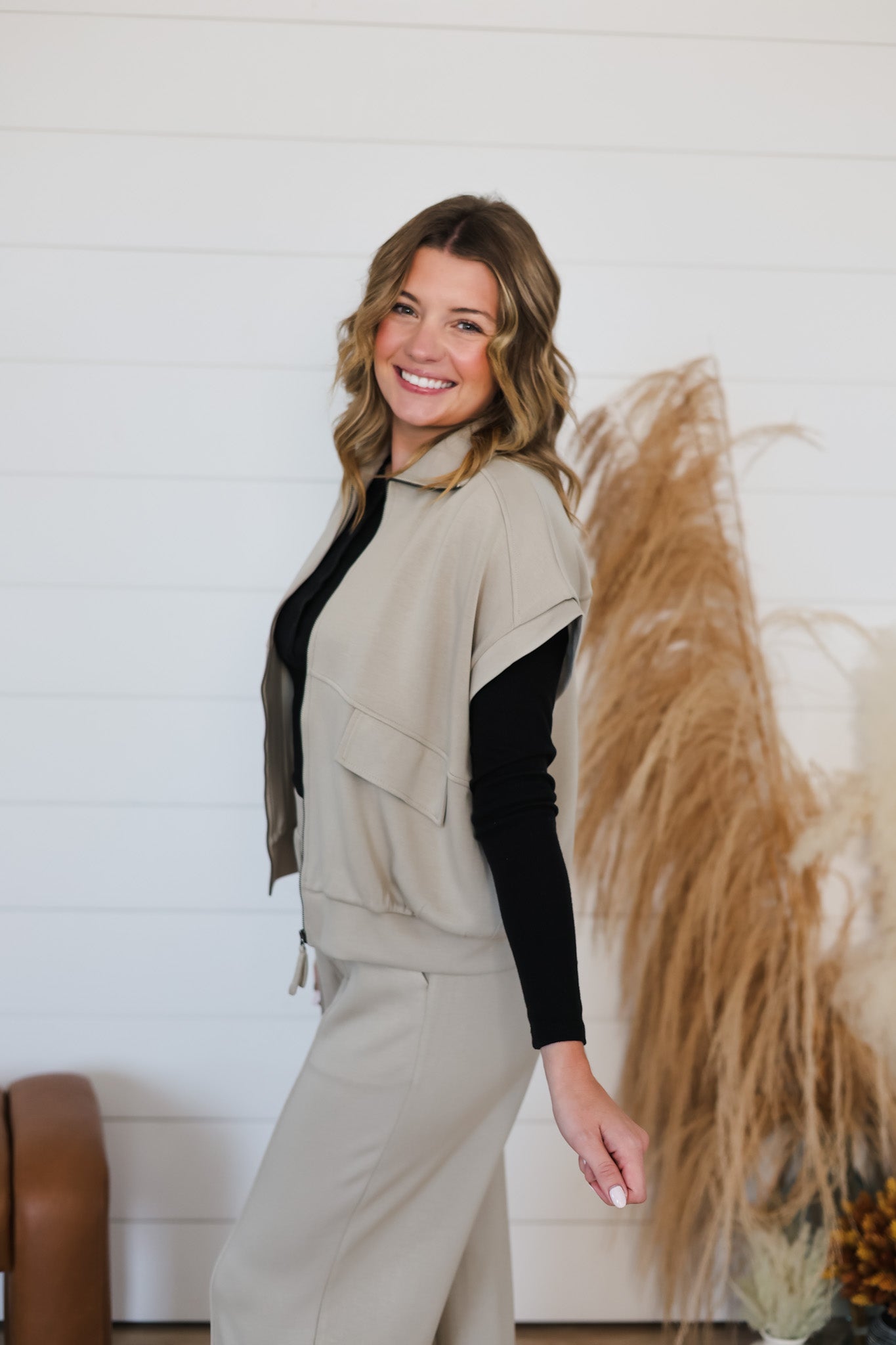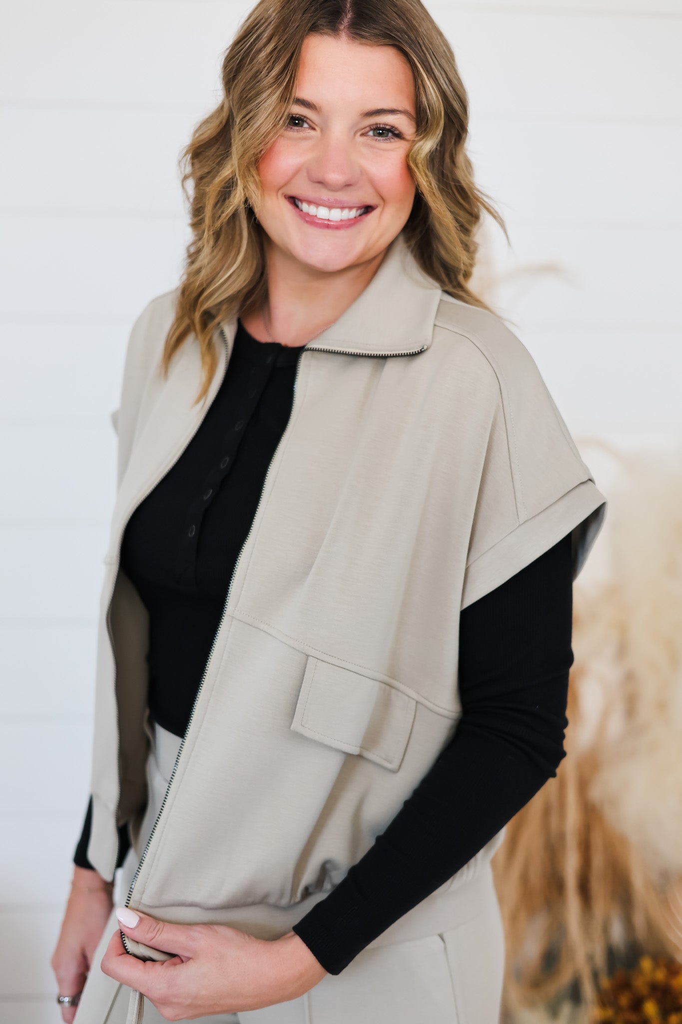 This cozy zip-up jacket wraps you in buttery soft brushed modal fabric, making comfort a stylish priority. The playful flap pocket and sleek pocket details add fun functionality to your look. With short sleeves perfect for layering, the Think It Through Top is ready to keep you comfy and cool all day long.