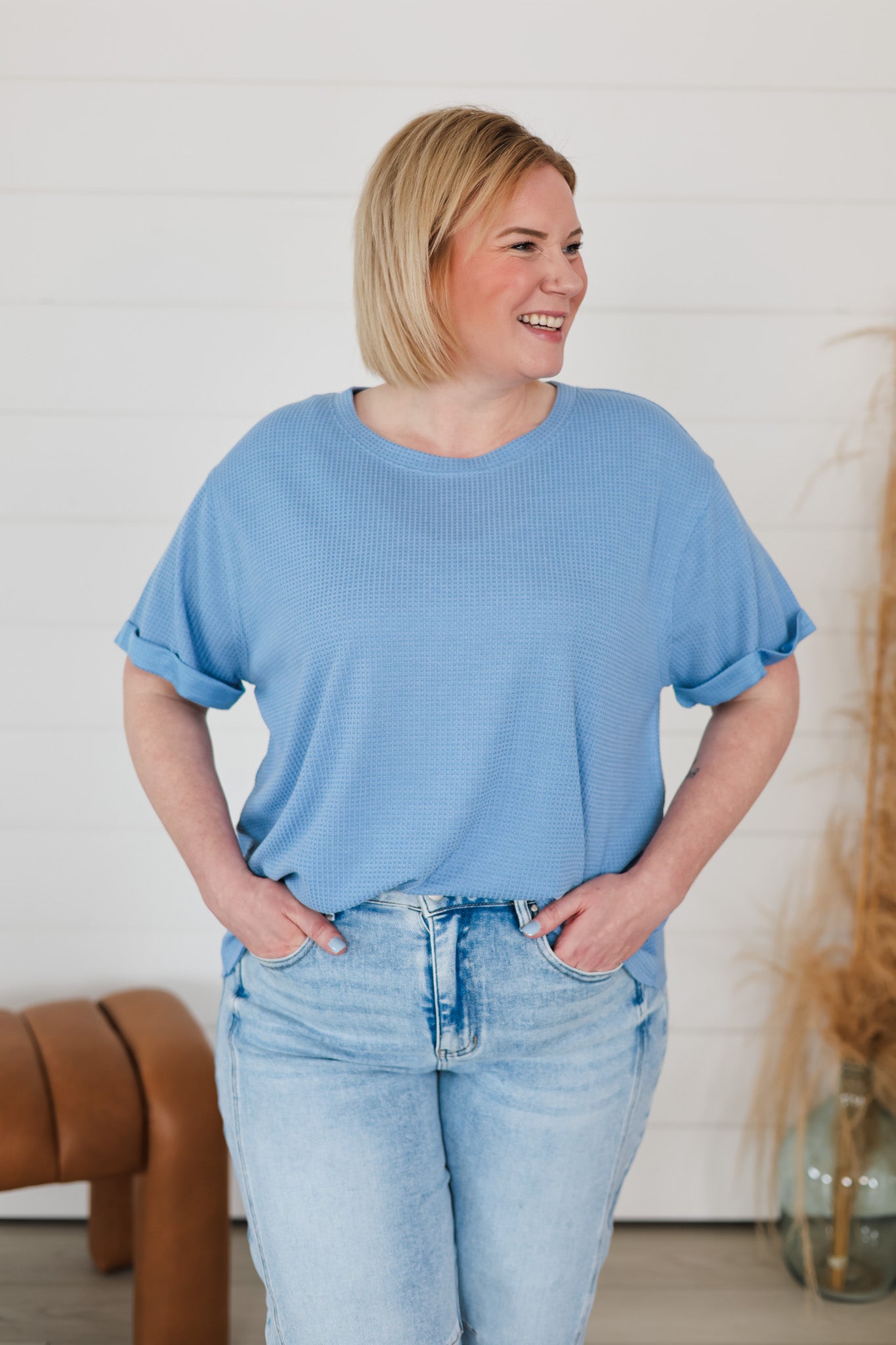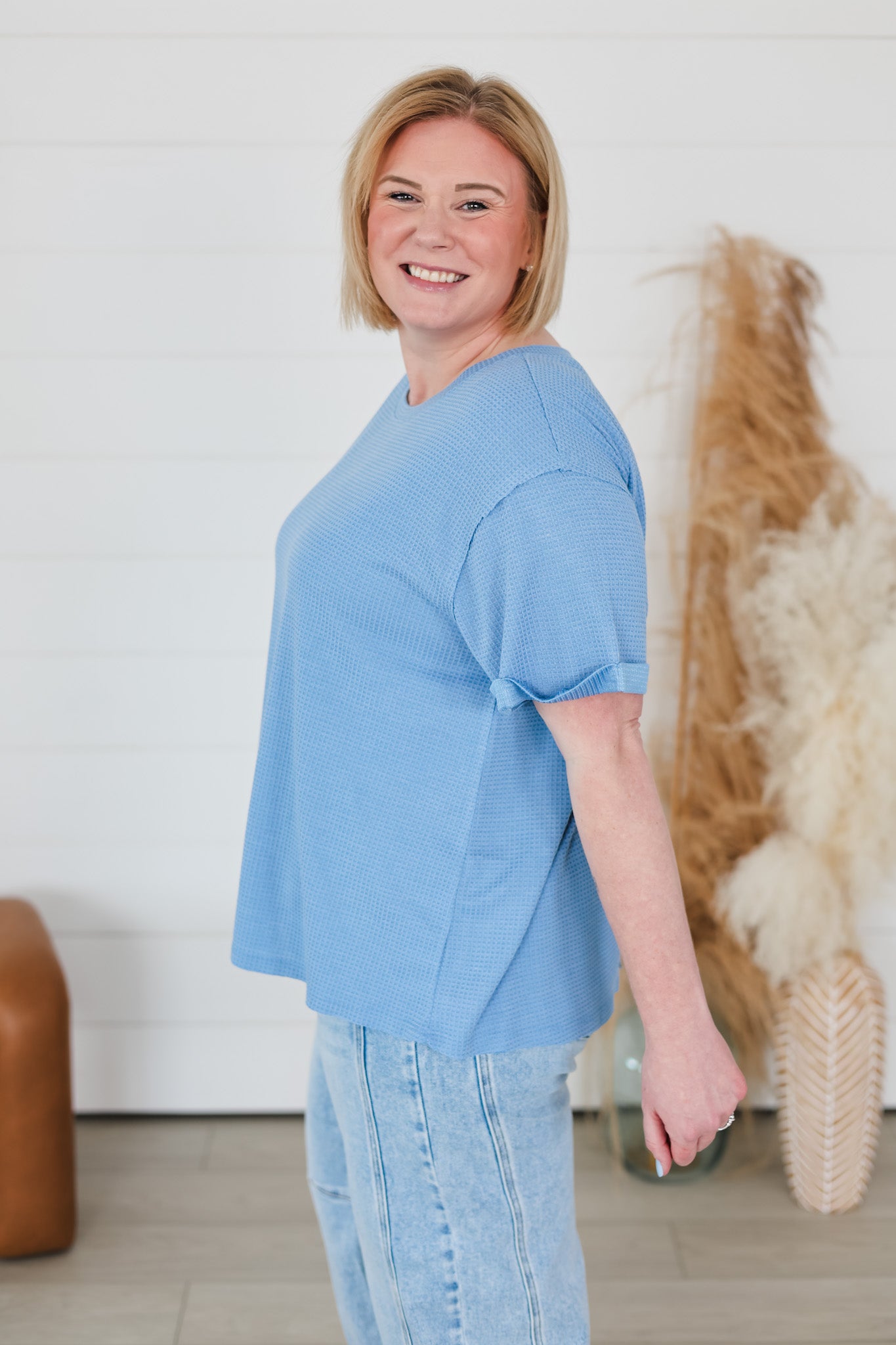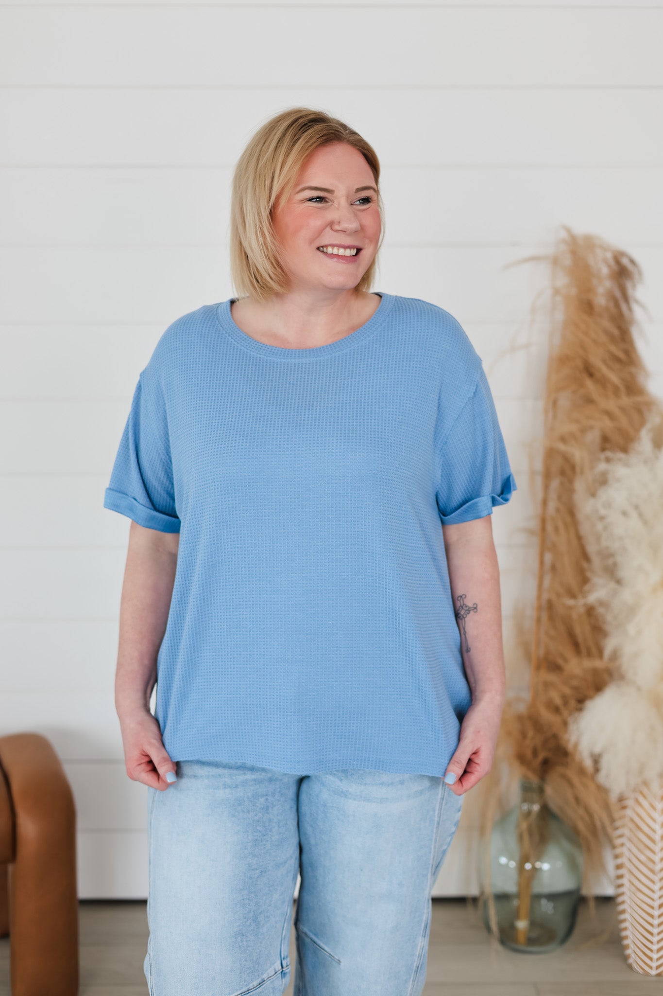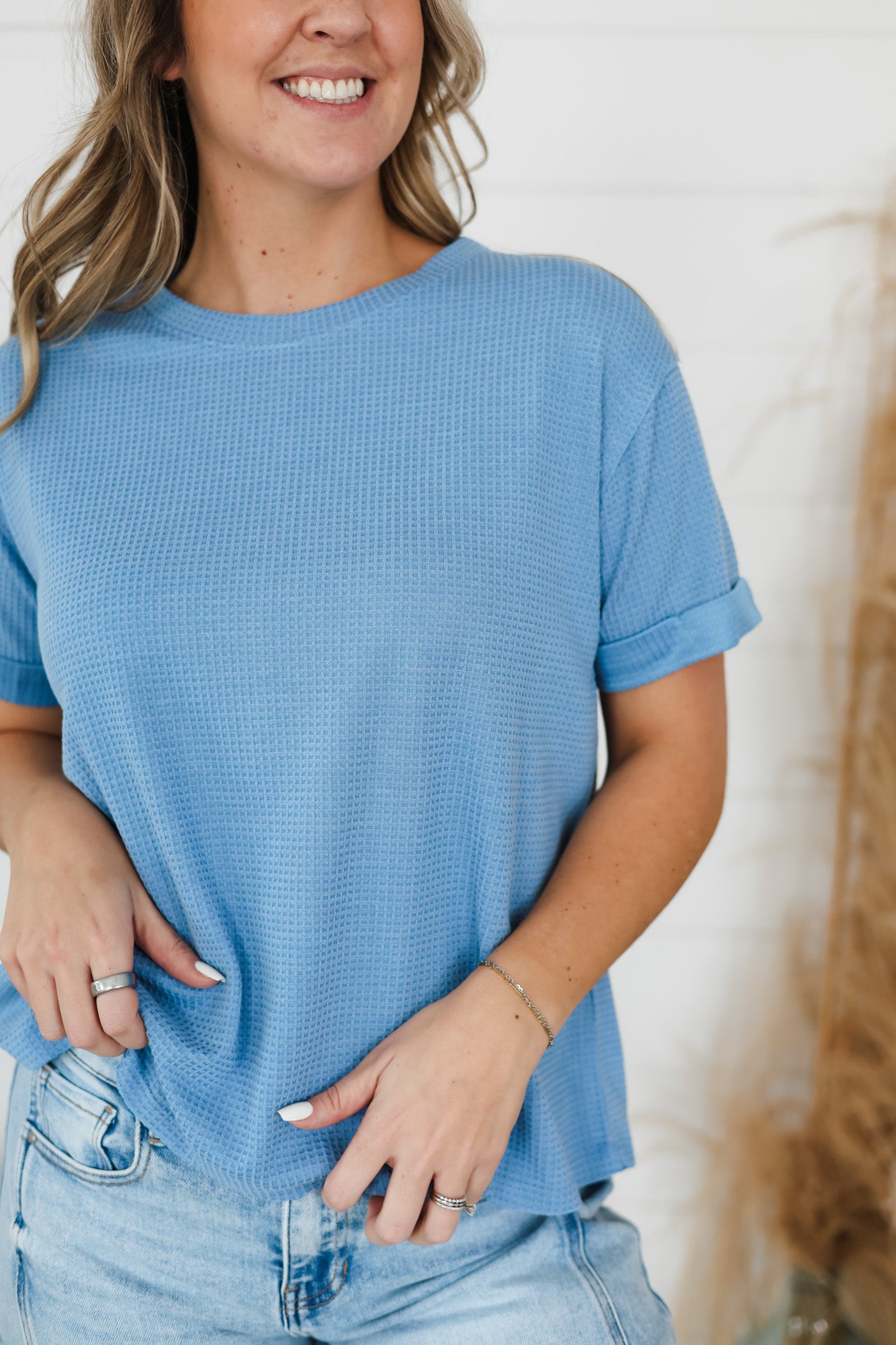 Effortlessly cool and undeniably comfy, the Turn It Into Top is your new go-to for laid-back style. This loose-fit waffle knit tee features a relaxed silhouette that works with everything in your closet—dress it up with tailored trousers or keep it casual with your favorite jeans. The textured waffle knit adds visual interest while the short sleeves make it perfect for layering or wearing solo. Whether you're running errands or grabbing coffee with friends, this top delivers that "I woke up like this" vibe without any effort required.