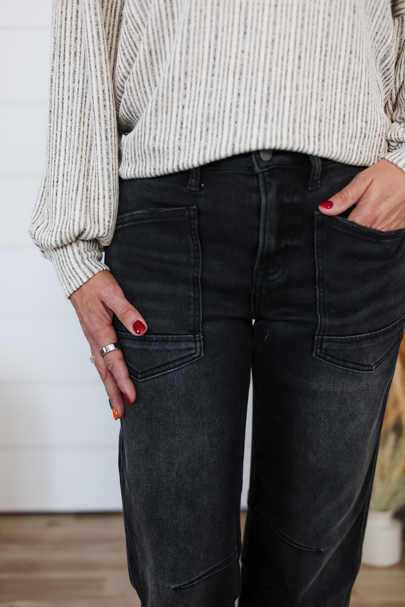 These super high-rise barrel jeans bring a playful twist with their fun pocket details and raw hem. Crafted from stretchy fabric, they offer comfort and a flattering fit that moves with you. Perfect for adding a bit of edge and personality to your everyday denim collection.